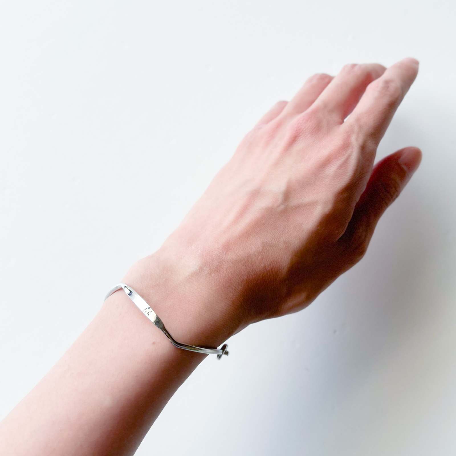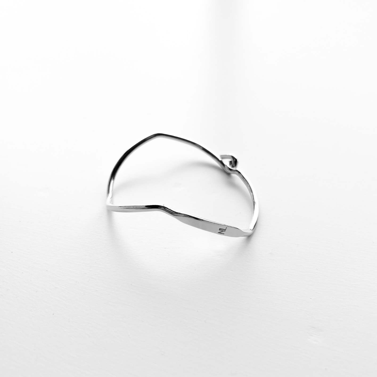 NL定番の”Huez”ブレスレット。角度によって見え方が変わる波打つ形状が特徴で、片手で簡単に着脱可能。NL刻印入り。 腕に馴染みやすい細身のデザインで、重ね付けも楽しめます。