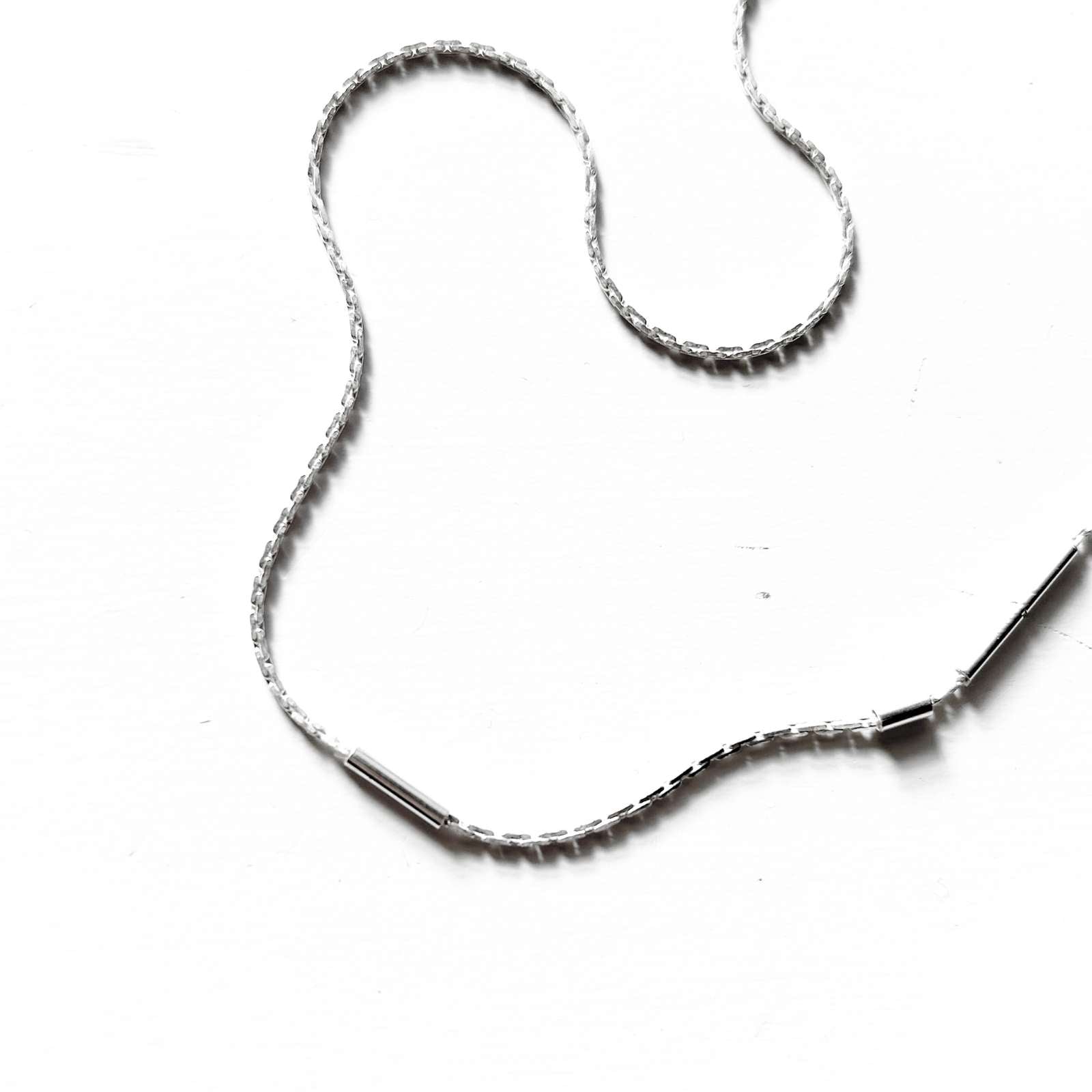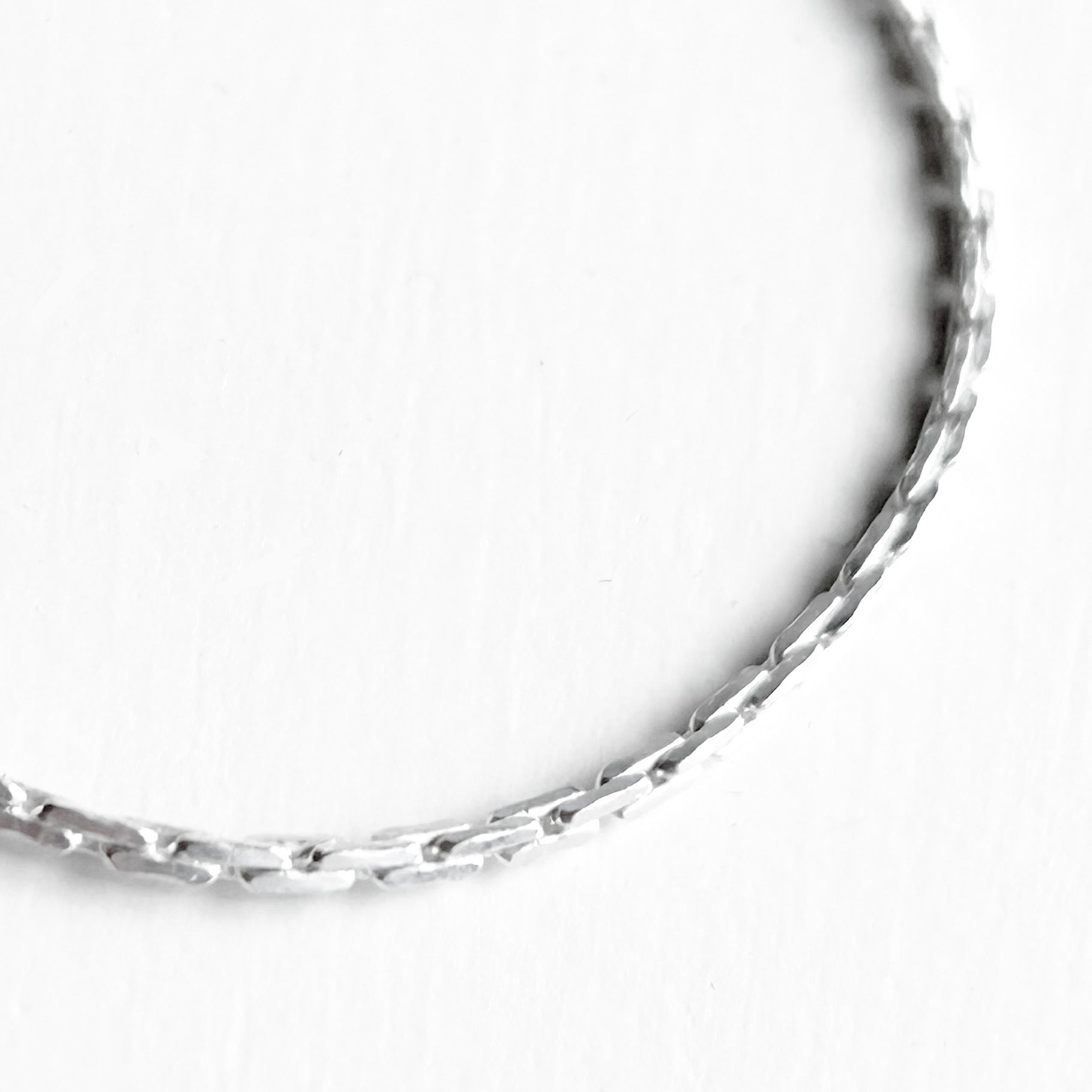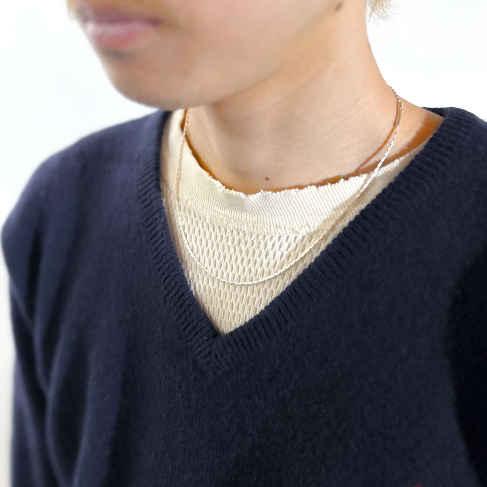 特徴的なチェーンを使用したネックレス。 取り外し部分のパーツは、軽く押して回すことで着脱が可能です。 ※無理に引っ張ると故障の原因となりますのでご注意ください。