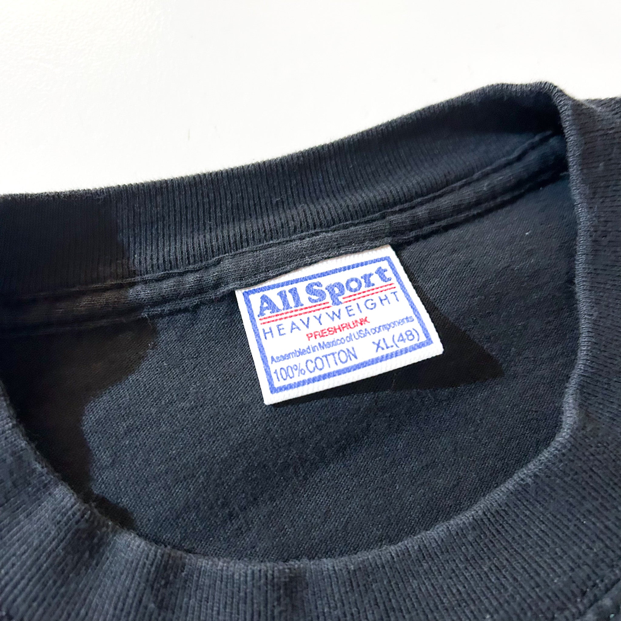 【Webスタッフ大鹿のおすすめ商品】ALLSPORT(オールスポーツ)の無地Tシャツ。 古着市場でもなかなか出てこない希少な一枚。というのも、ALLSPORTはかなり厳しく在庫管理しているのか、無地Tは市場流通が少ないのが現状です。(ライセンスを持ってるchangesやGiant、BROCKUMなら分かりますが、ALLSPORTはボディブランドなのに凄いです)だからこそ「無地でもこだわりたい」「他と被りたくない」方にぴったりのTシャツ。 一見するとシンプルな無地Tですが、タグを見るとちょっと嬉しくなる“自己満足”タイプのアイテム。でも、そういう小さな喜びがあるのも古着の面白さですよね。 サイズ表記はXL。ですが、着丈が長すぎず、でも身幅や肩幅にはしっかりとゆとりがあり、自然なドロップショルダー気味のラフなシルエット。 着丈が長すぎないからこそ、ルーズすぎず、だらしなく見えない。そんなバランス感が魅力の一枚です。