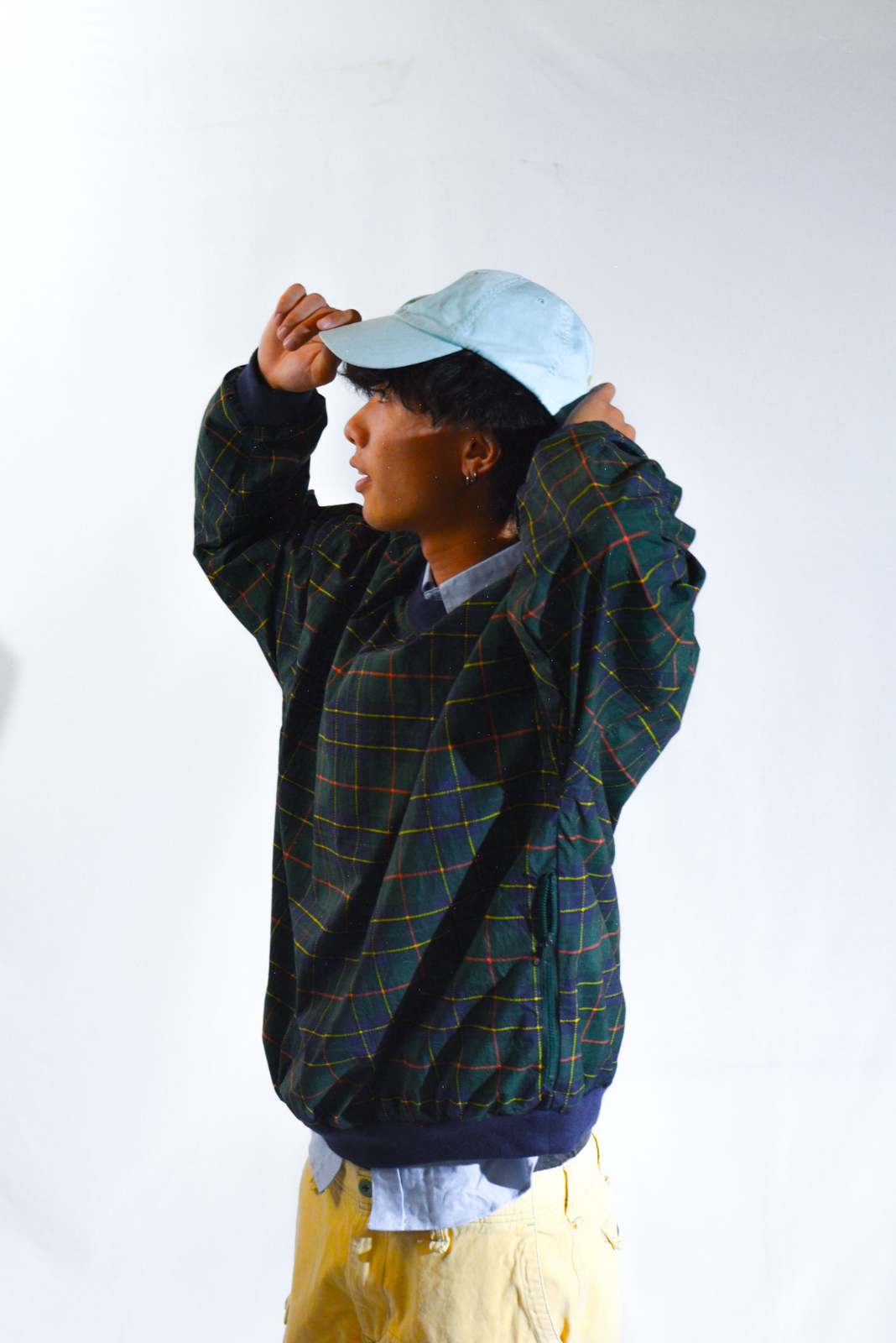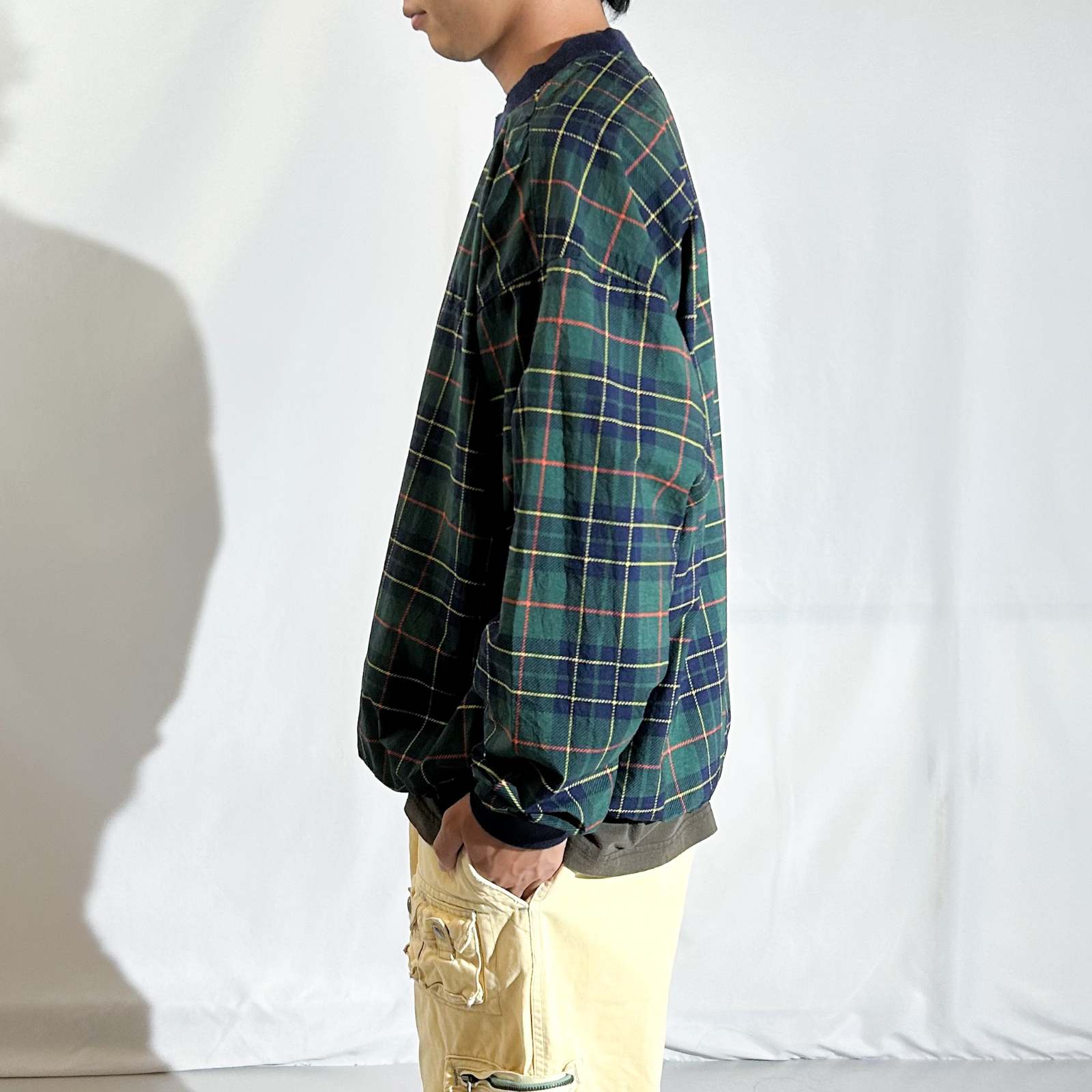 90's IZOD パッカブル チェック プルオーバー ナイロン ジャケット(グリーン)