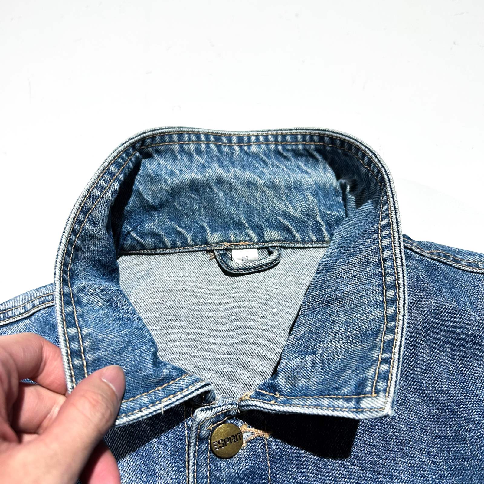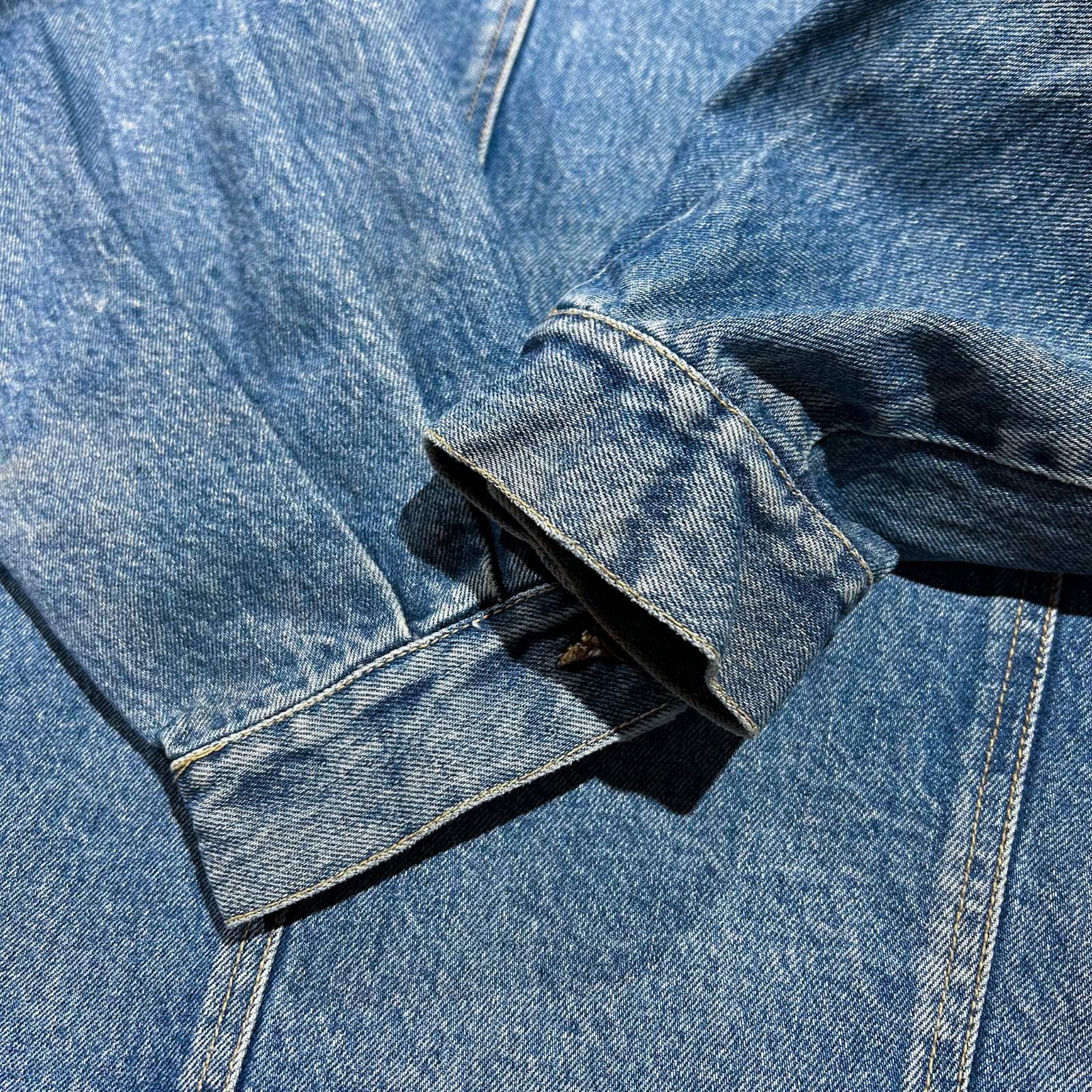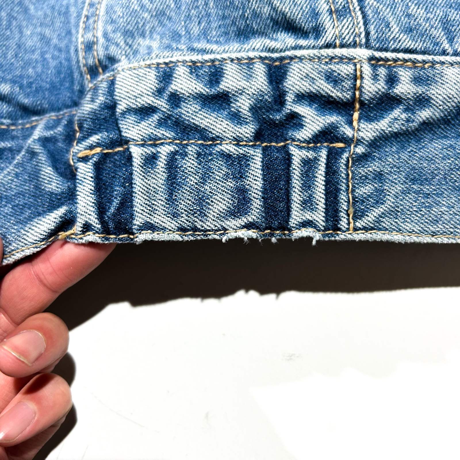 Bランク 一箇所フロントボタンリペア、両ひじに使用感、首元と袖口に汚れ、裾に小さなダメージが見られます