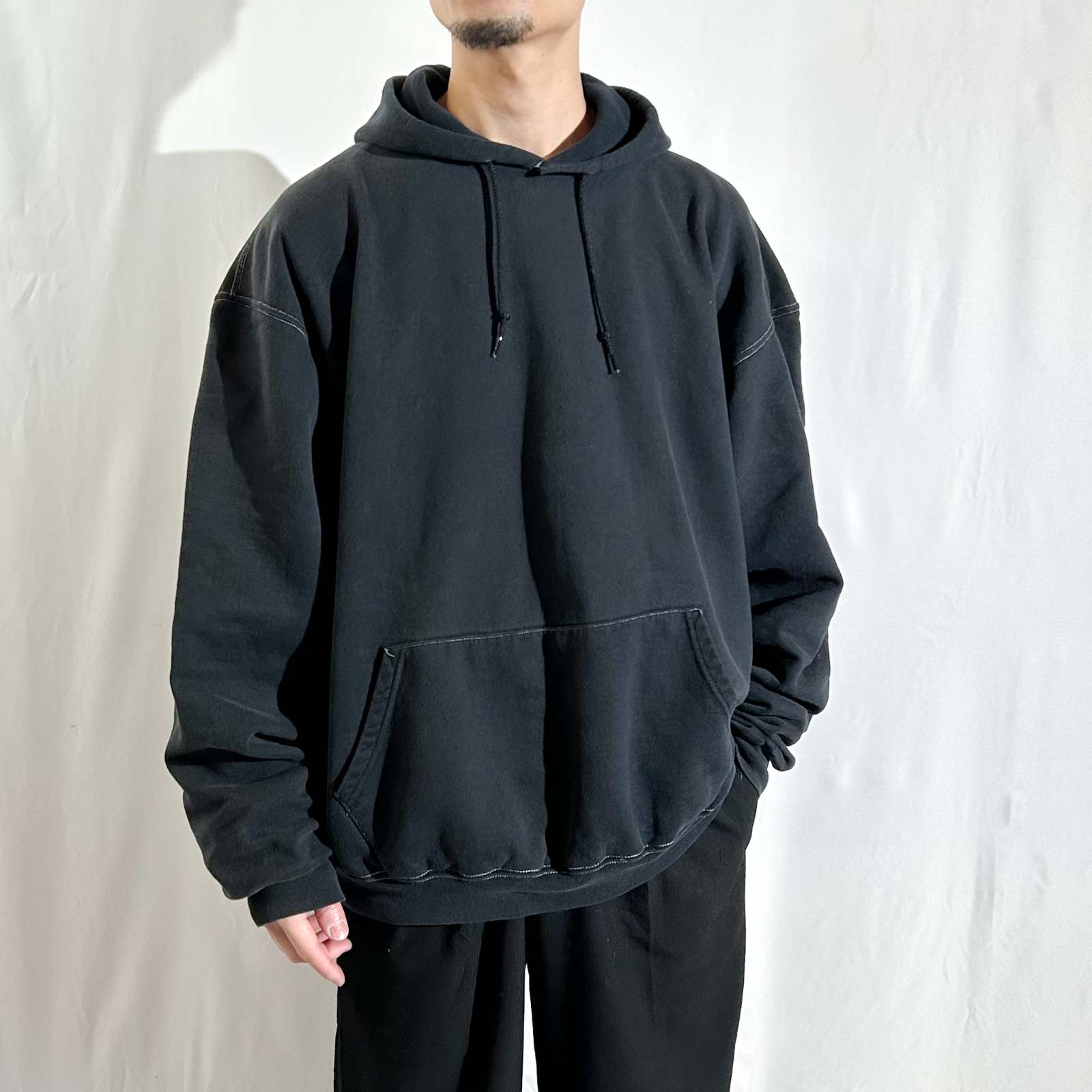 00's Champion "white stitch black body" 無地 スウェット パーカ