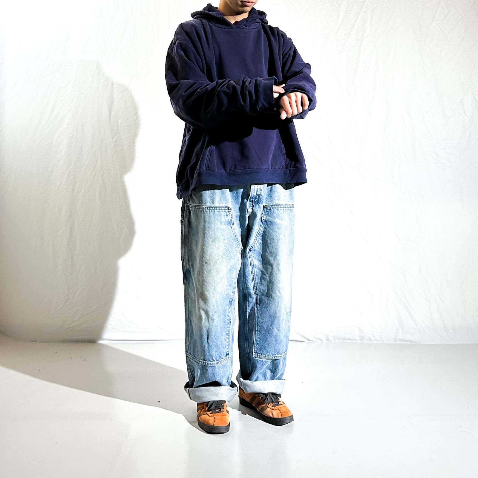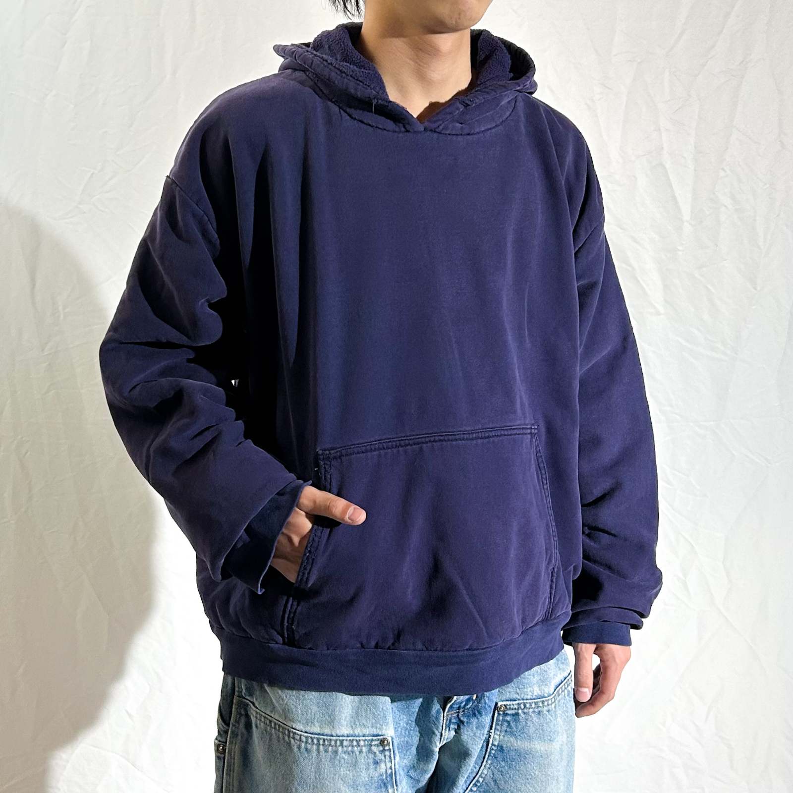 ブランドは初めて見ましたが…私物にしたいくらいシルエットと生地感が良いです。実物触っていただかないと分からないですが、めちゃくちゃヘビーウェイトな肉厚ダブルフェイス。さらに''着丈短丈・身幅ゆったり系''、Acneのスウェットパーカみたい。 デニムのCarharttやLEVI’Sの先染ももちろんスペシャルですが…まだ出てくるには出てくるアイテム。これは出てこないですよ…。