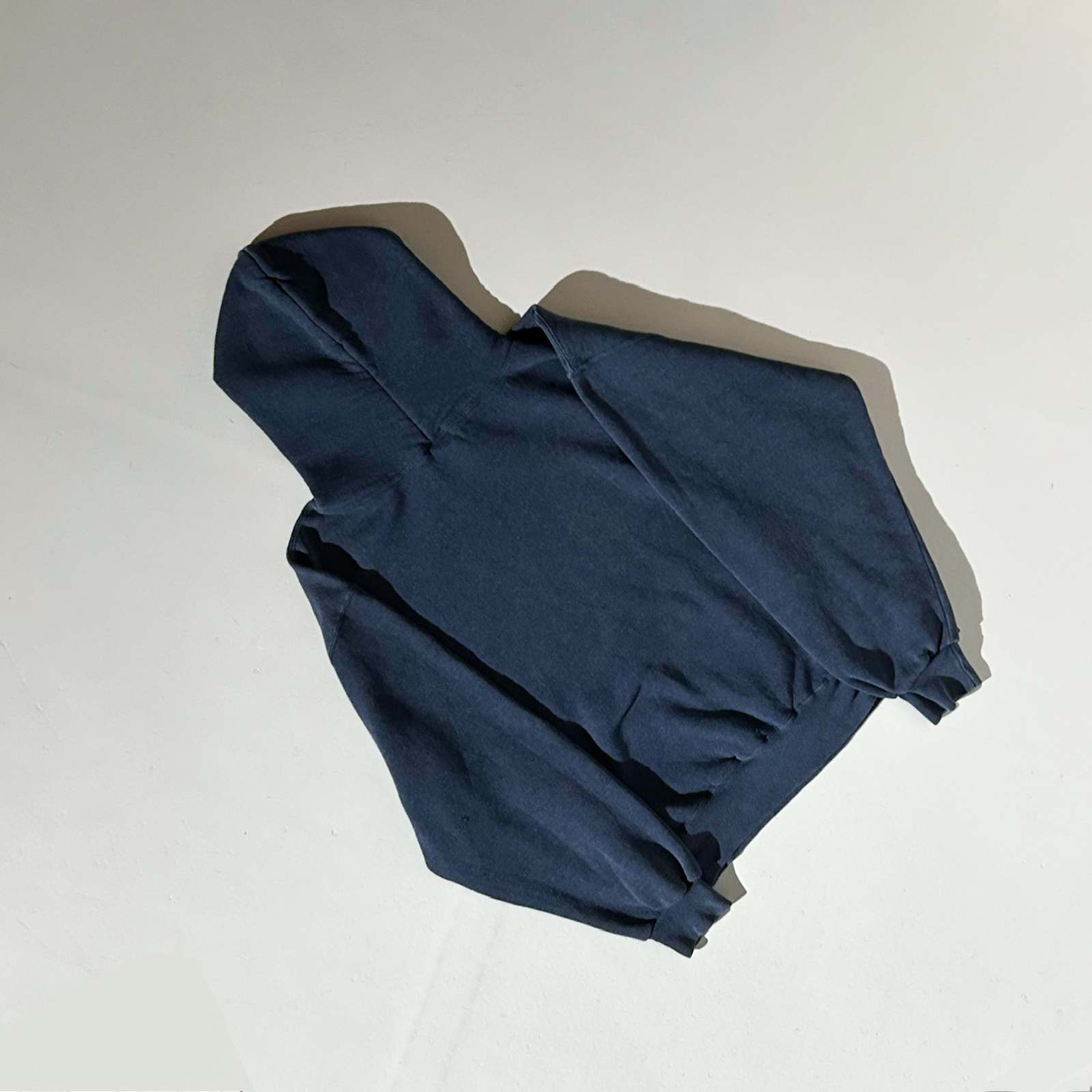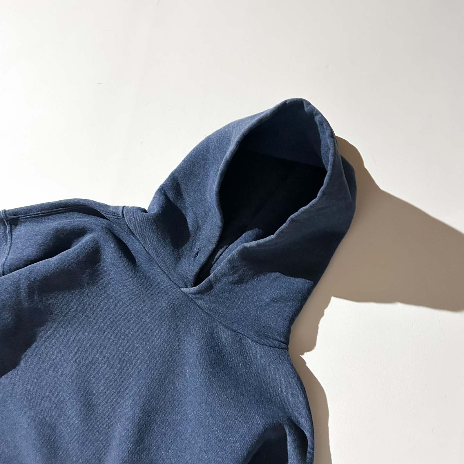 無地でフーディータイプのラッセルは今じゃ貴重になってしまいましたね。 丸みのある短丈シルエット、肩幅・身幅はゆったりとした作り。着ると、肩が落ちてドロップショルダーのようなシルエット。