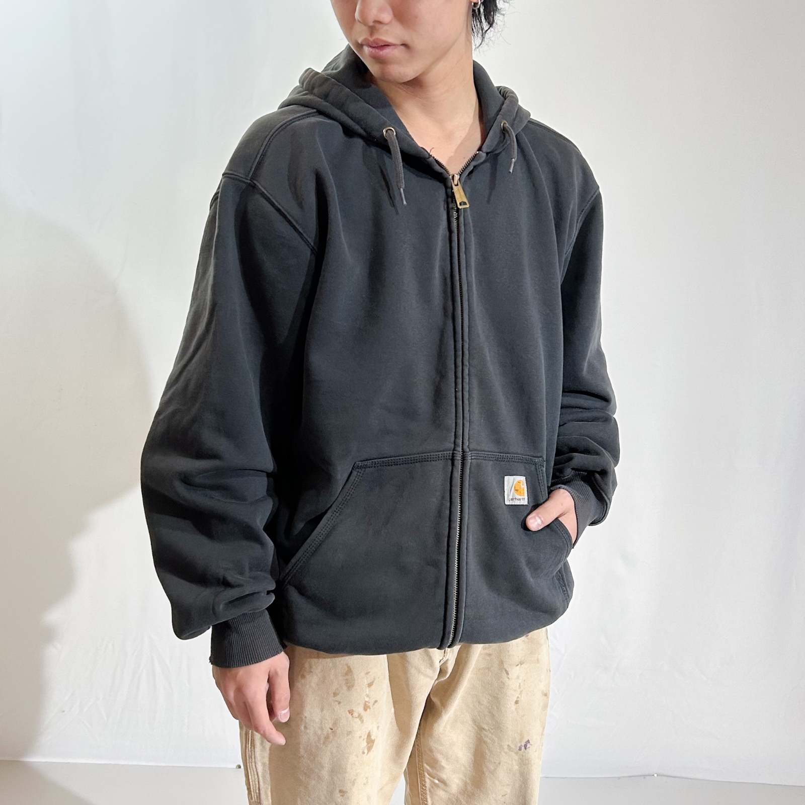 カーハート ストリート 雰囲気 フルジップパーカ 黒