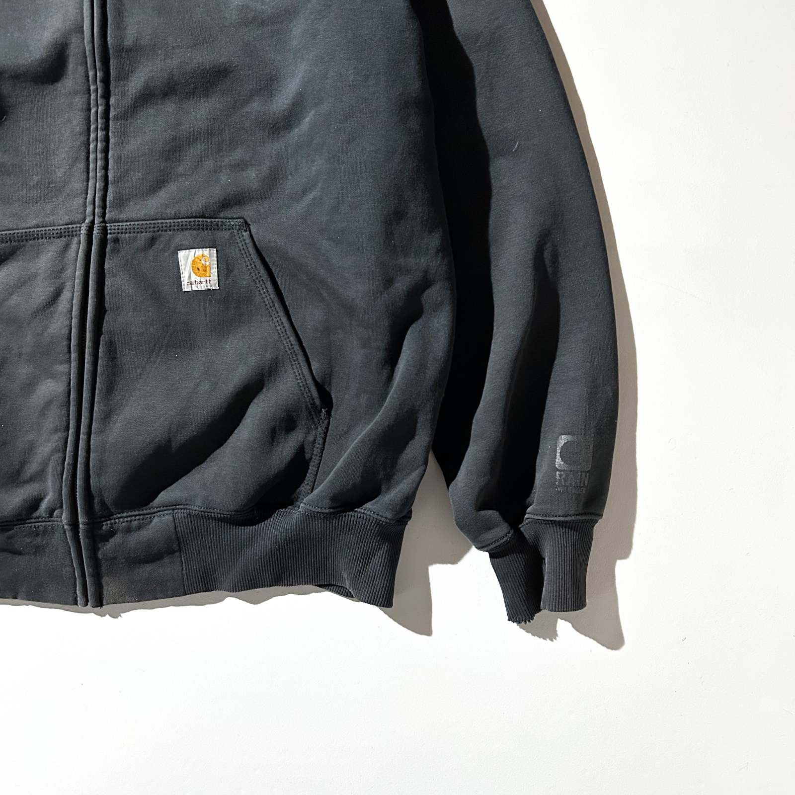 Carhartt "rain defender" ブラック フェード フルジップ スウェット パーカ