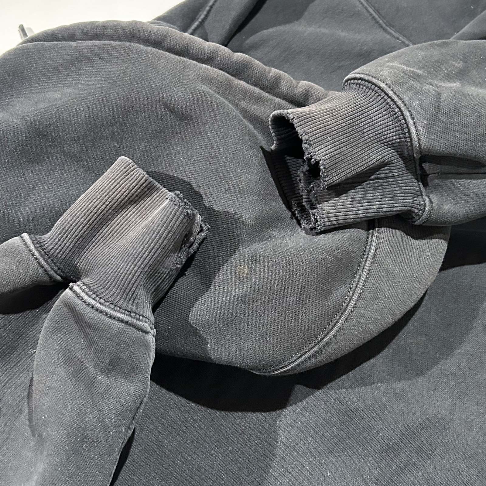 Bランク 袖ダメージ、フード汚れ、全体的にフェード、その他使用感が見られます
