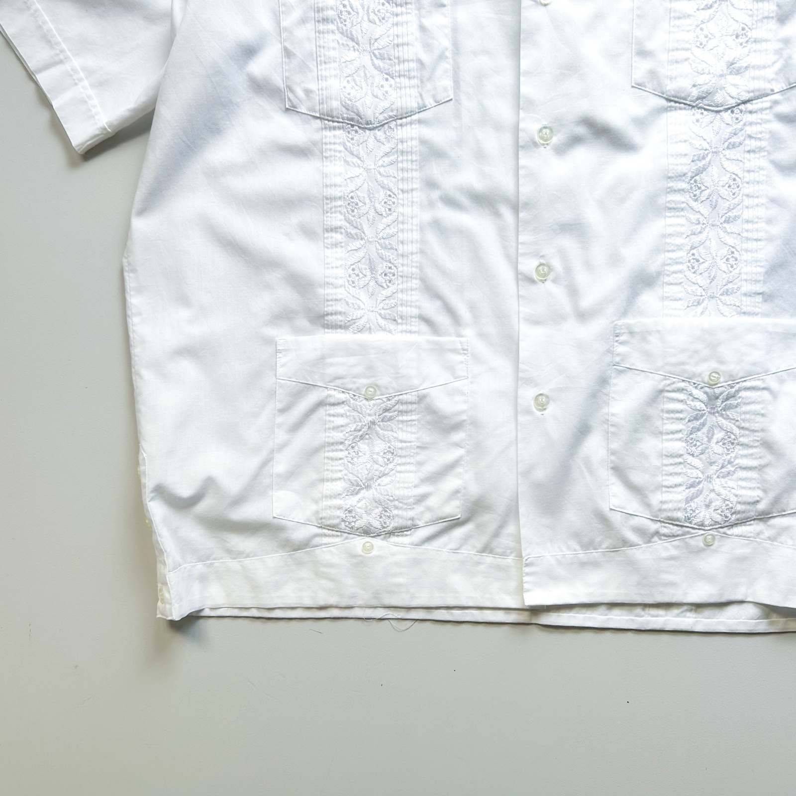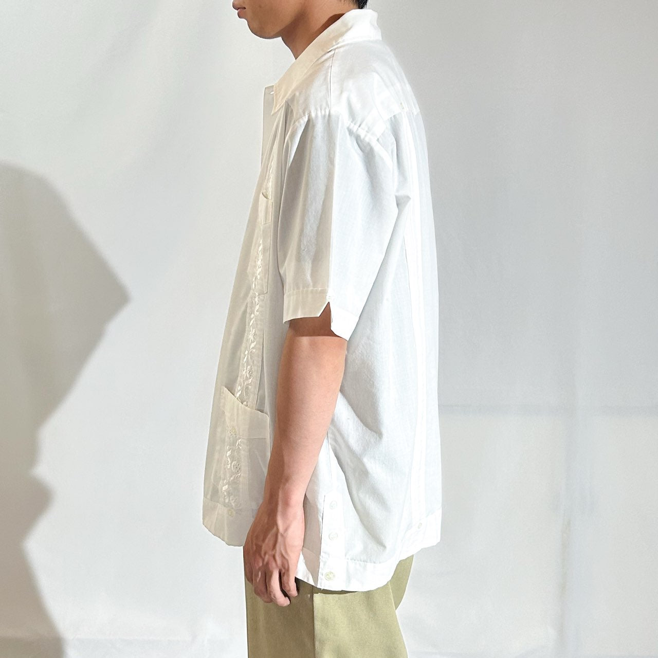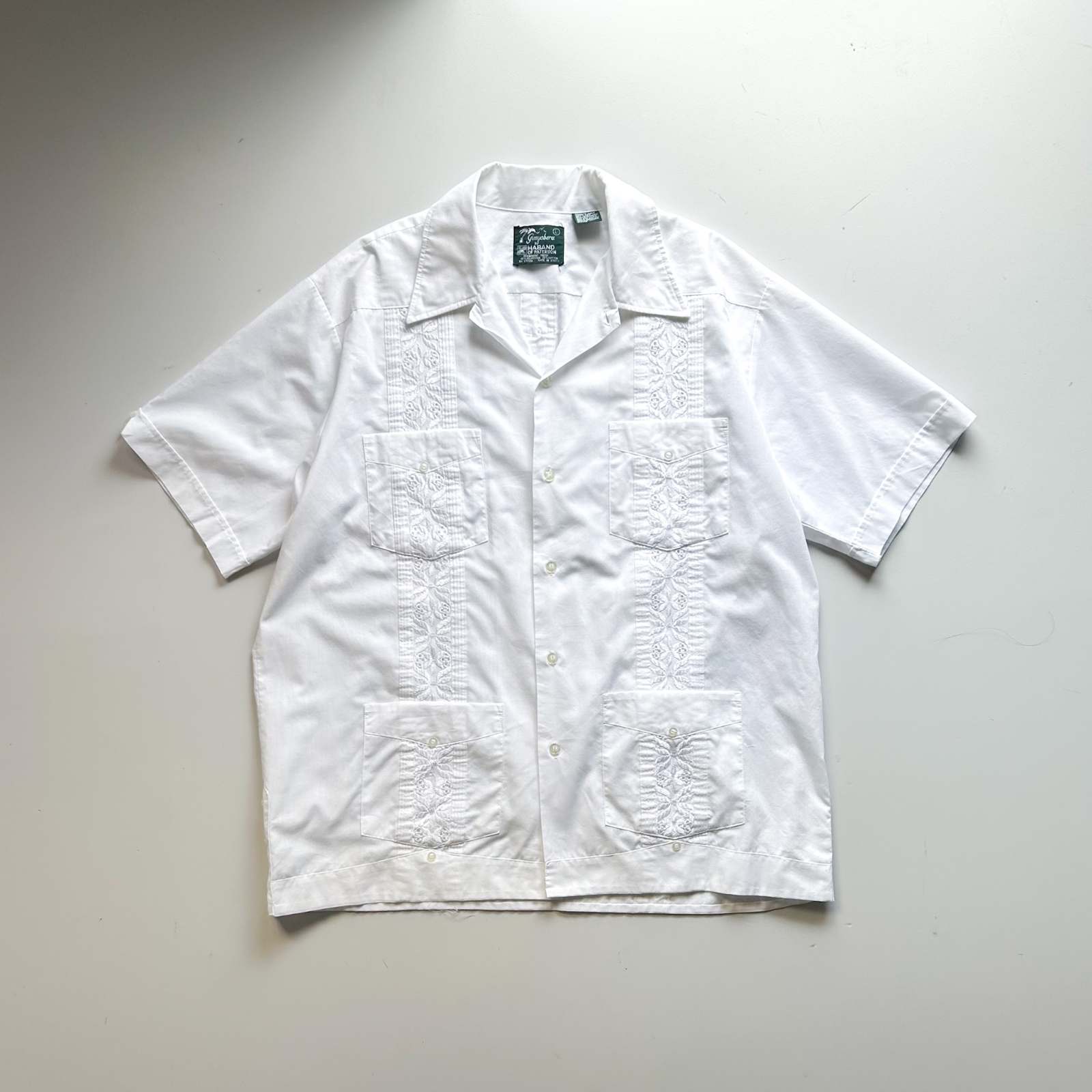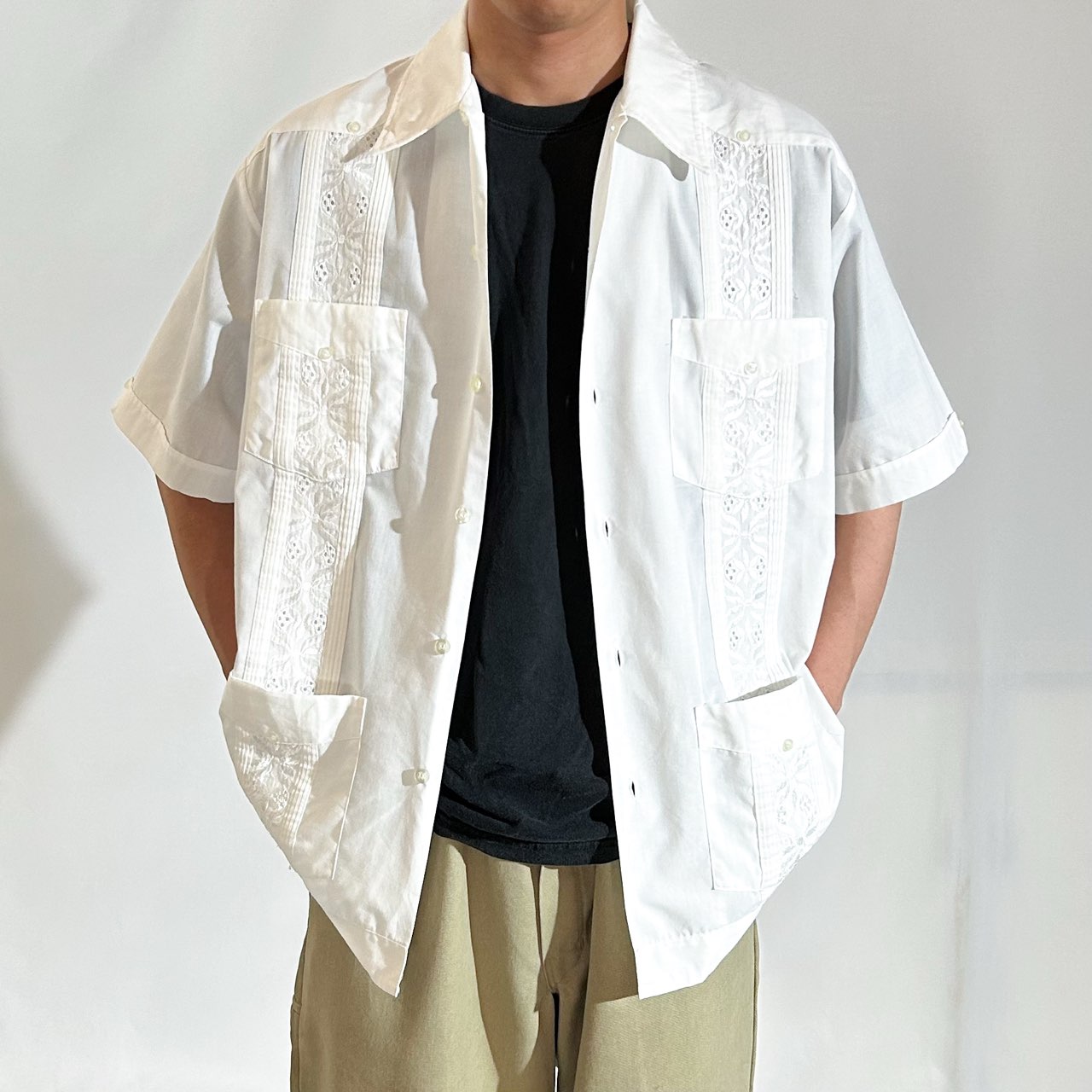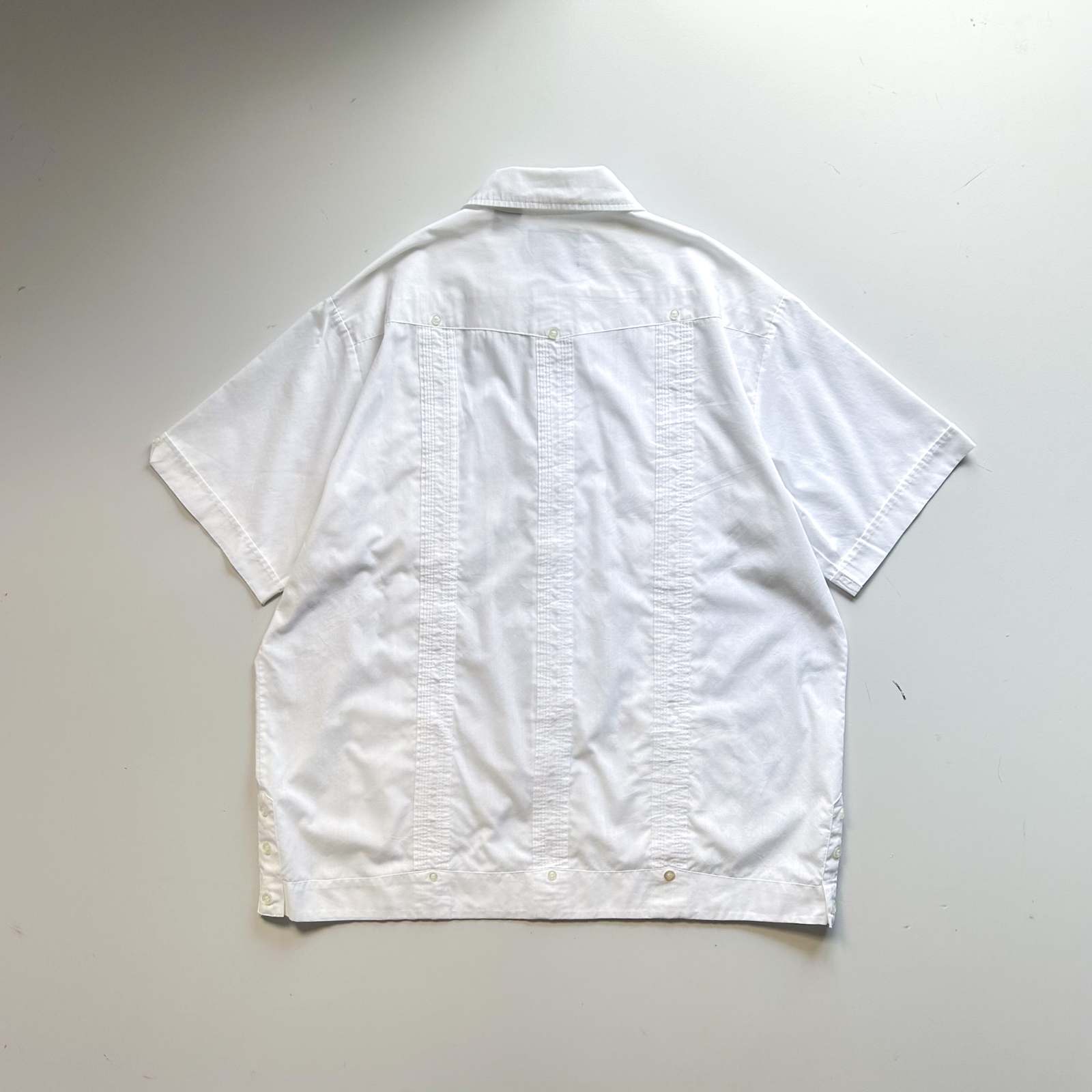 こちらは、HABANDの中でもキューバシャツ専用ラインとして展開されているGUAYABERAの1枚。 ダービージャケットで見かけるお馴染みのブランドでもあり、実は古着通にはおなじみの存在です。白カラーのお持ちのアイテムに馴染む万能カラー。 DickiesやBen Davisなどと合わせてチカーノ風ストリートに振るのも◎、一方でスラックスでキレイめにまとめても映える、振り幅の広いアイテムです。