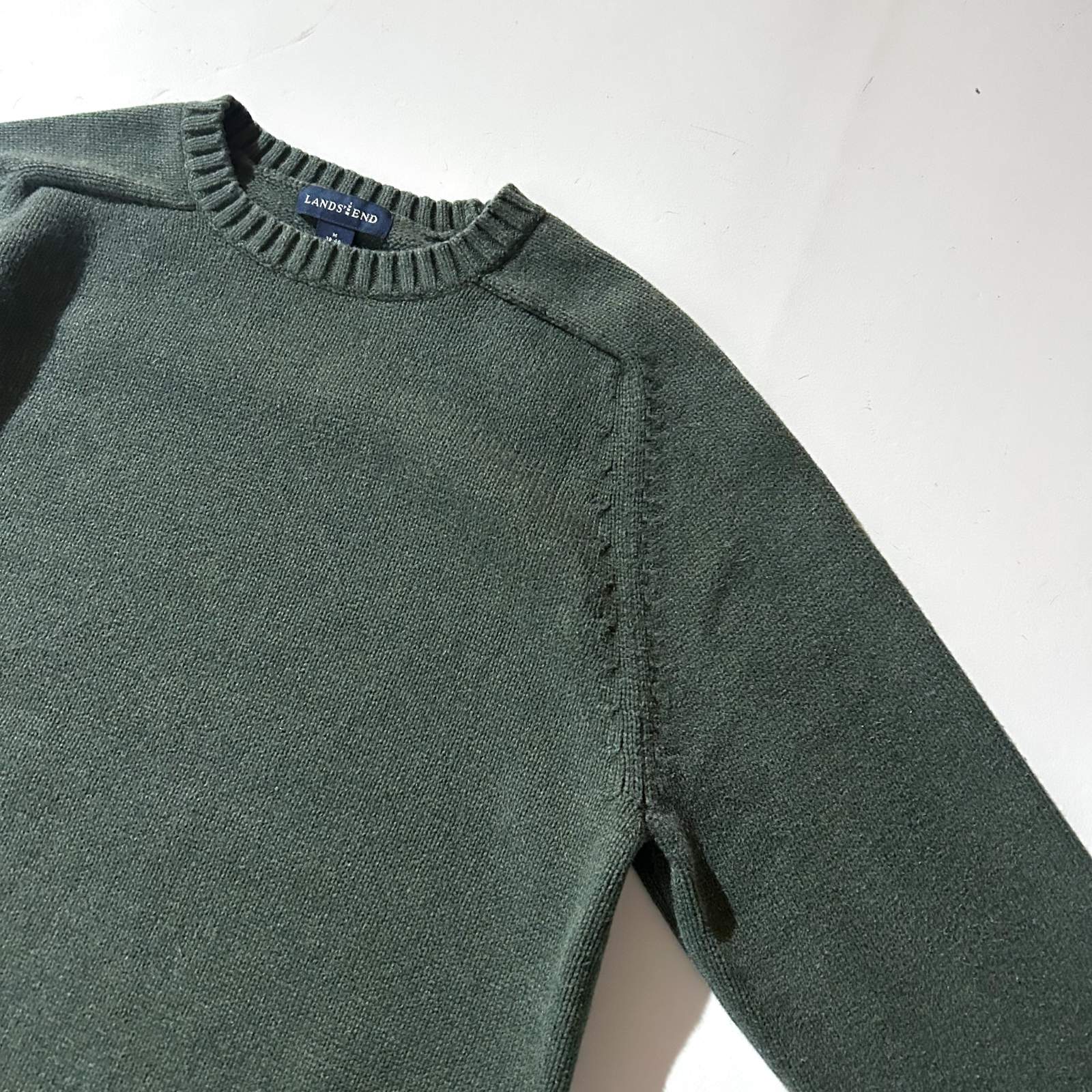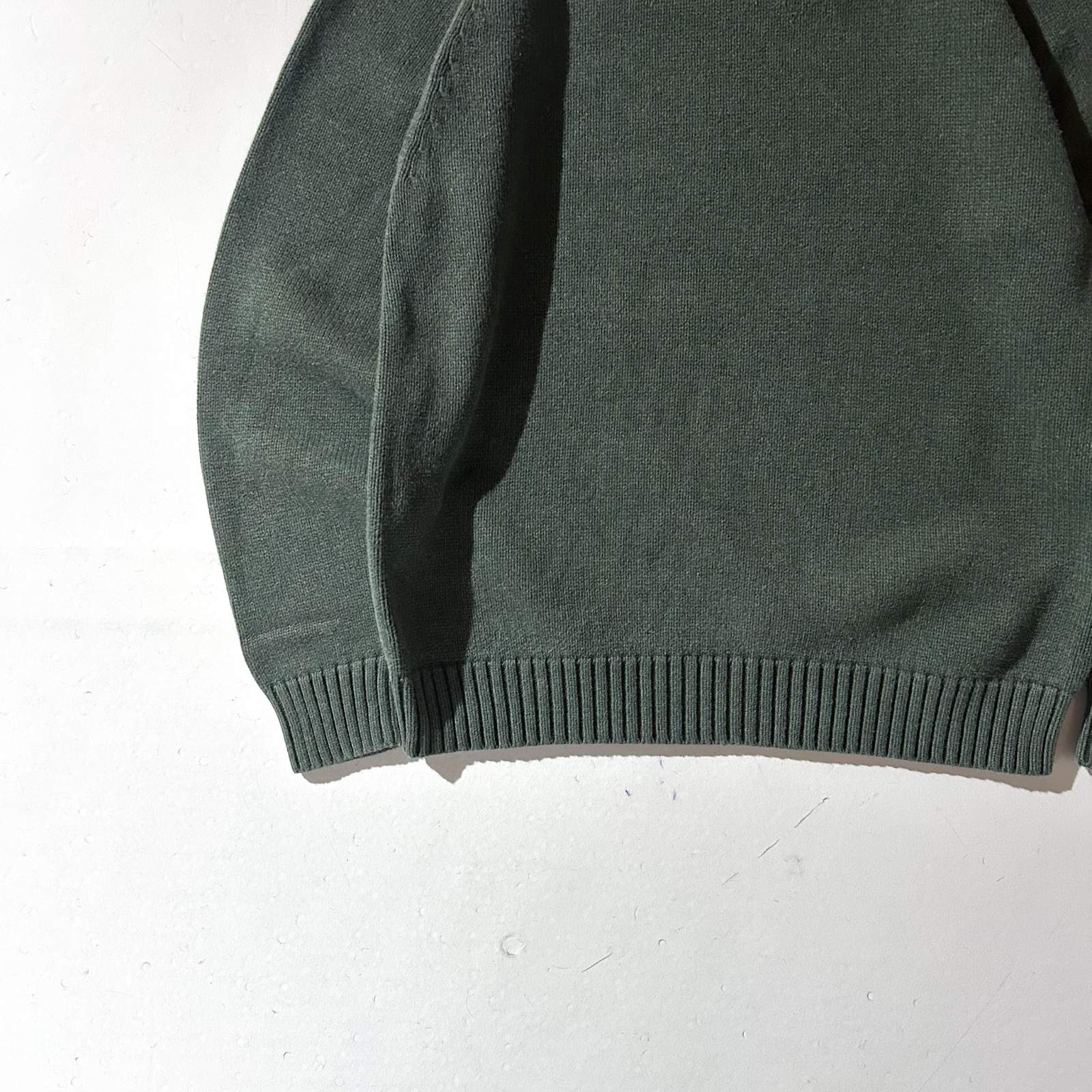 00's LANDS' END コットン ドリフター ニット セーター(グリーン)
