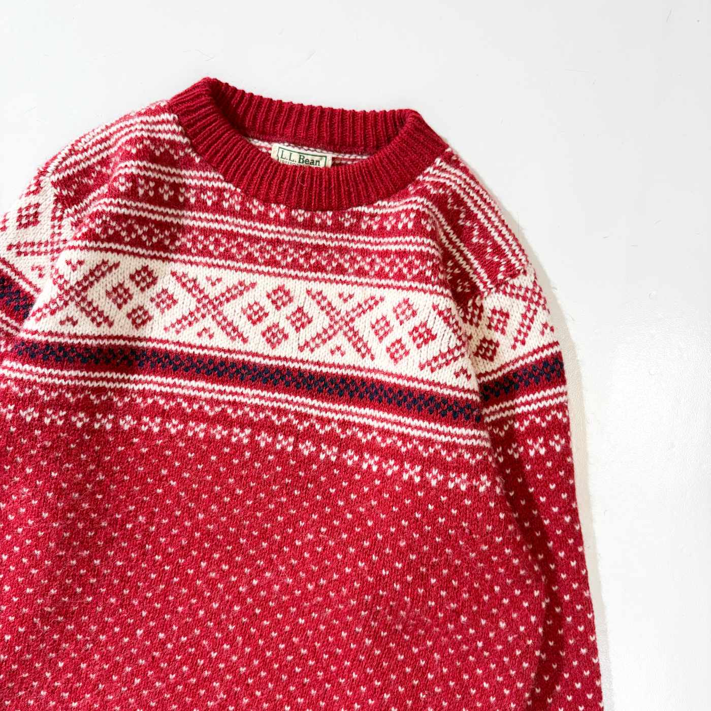 80年代 90年代 エルエルビーン 雪柄 スノーパターン ノルディック柄 赤 レッド アメリカ製 USA製