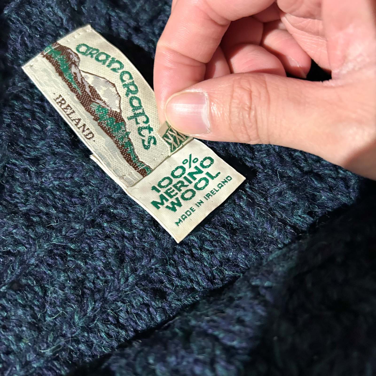90's "made in Ireland" aran crafts メランジ フーデッド フルジップ アラン メリノウール ニット セーター