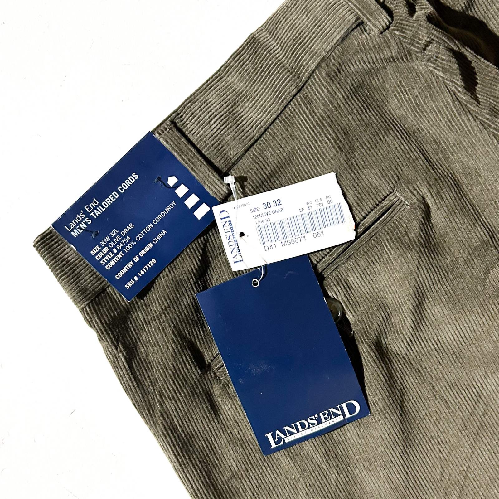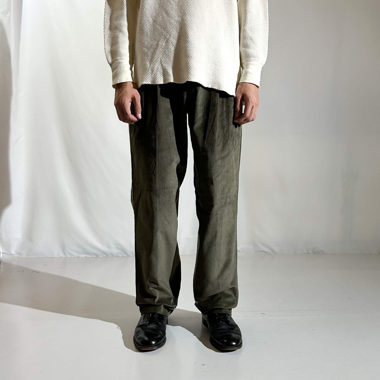 90's~ "deadstock" LANDS' END 2タック コーデュロイ パンツ (OLIVEDRAB 30×32)