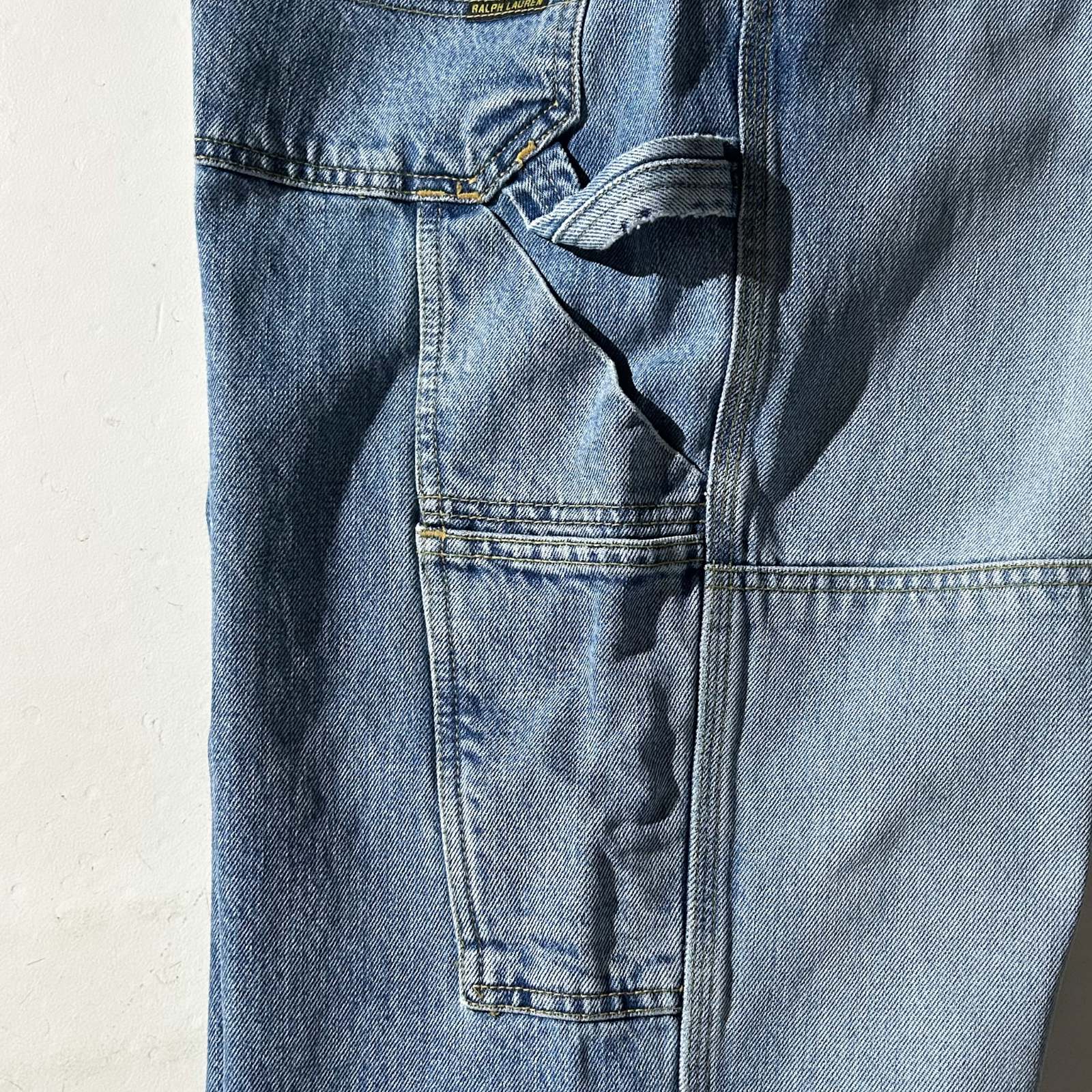 去年は開催しなかった周年イベントですが、 今年は「せっかくだしちょっとやってみようか」という軽いノリで企画してみました。 “グリーフルオンラインストアらしい” ——ちょっと気になる、ちょっと良いものたちを中心に。 派手ではないけれど、「これ出るの珍しいね」と思えるアイテムを少し入荷しています。 こちらはRalph Lauren(ラルフローレン)のダブルニーデニムパンツ。 ワークブランドの象徴的ディテールとも言える“ダブルニー”を、 ラルフが手がけていたという事実がまず最高ですね。 CarharttやDickiesなどの定番とは違う、“上品な外し”として楽しめる1本。