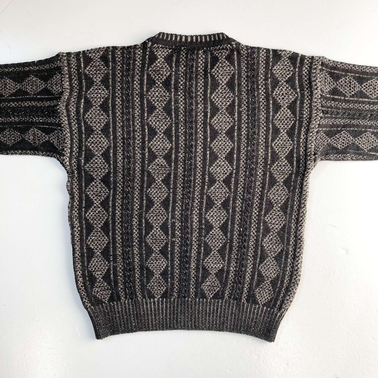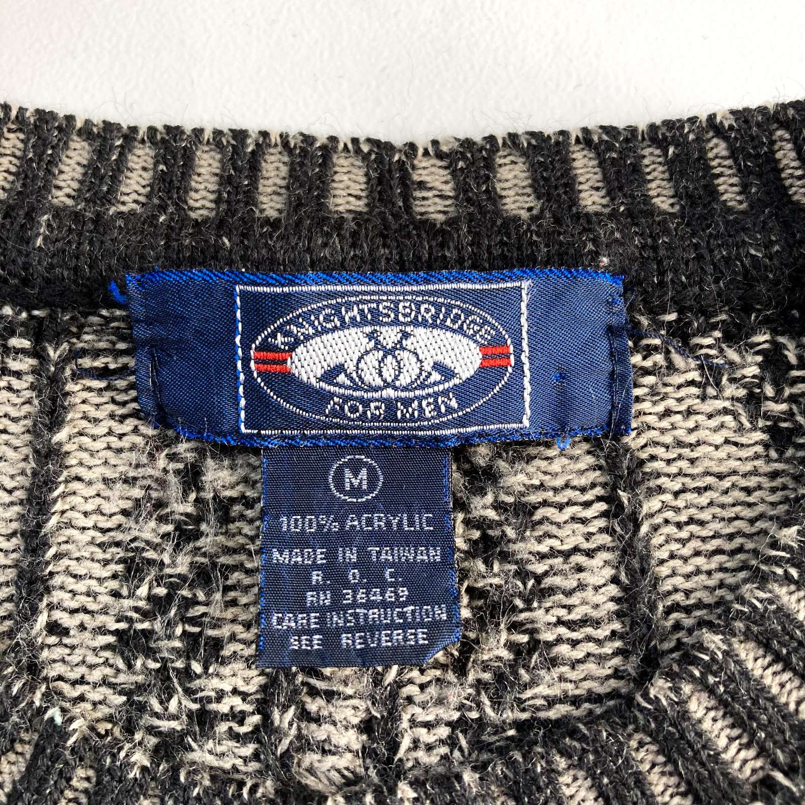 古着 90's KNIGHTBRIDGE FOR MEN 総柄 ストライプ アクリル 3Dニットセーター