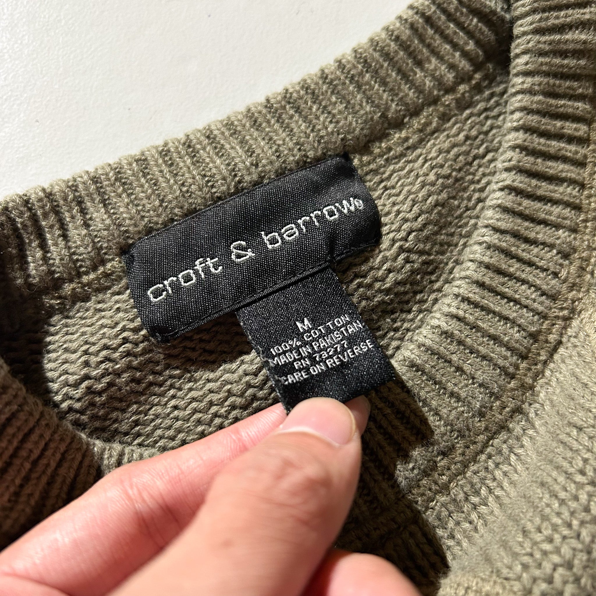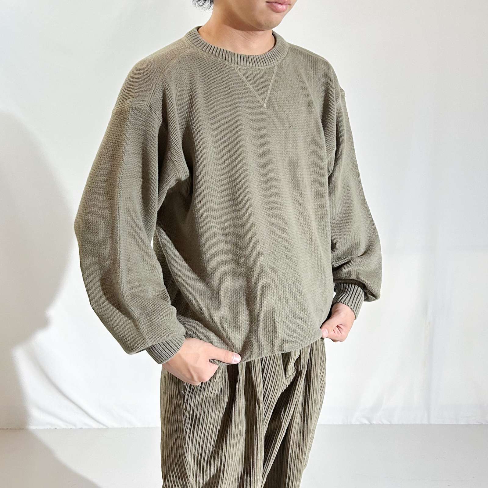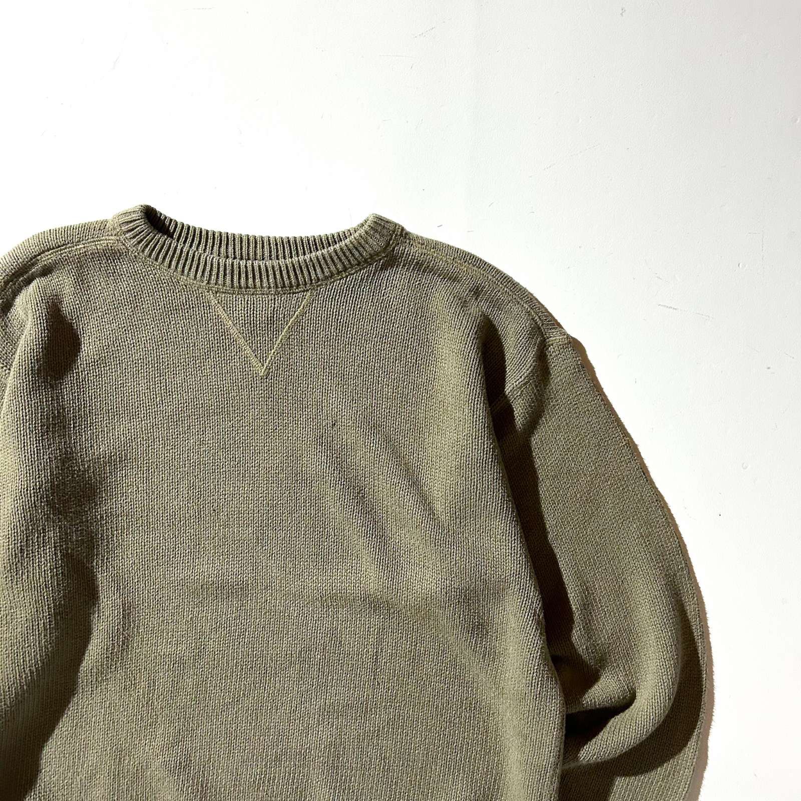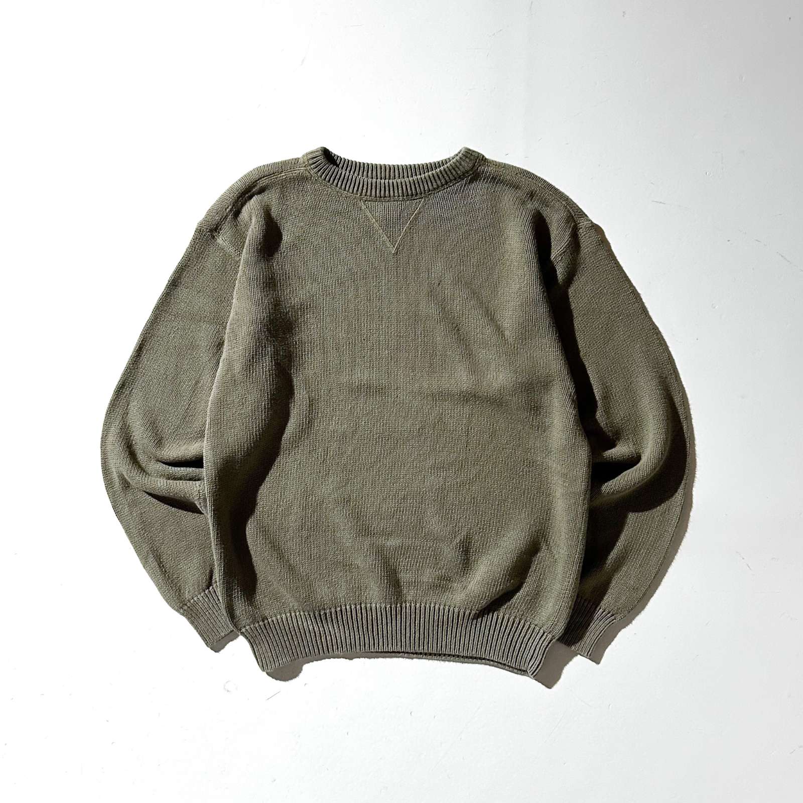 00's Croft & Barrow 前V コットン ニット セーター(オリーブ)