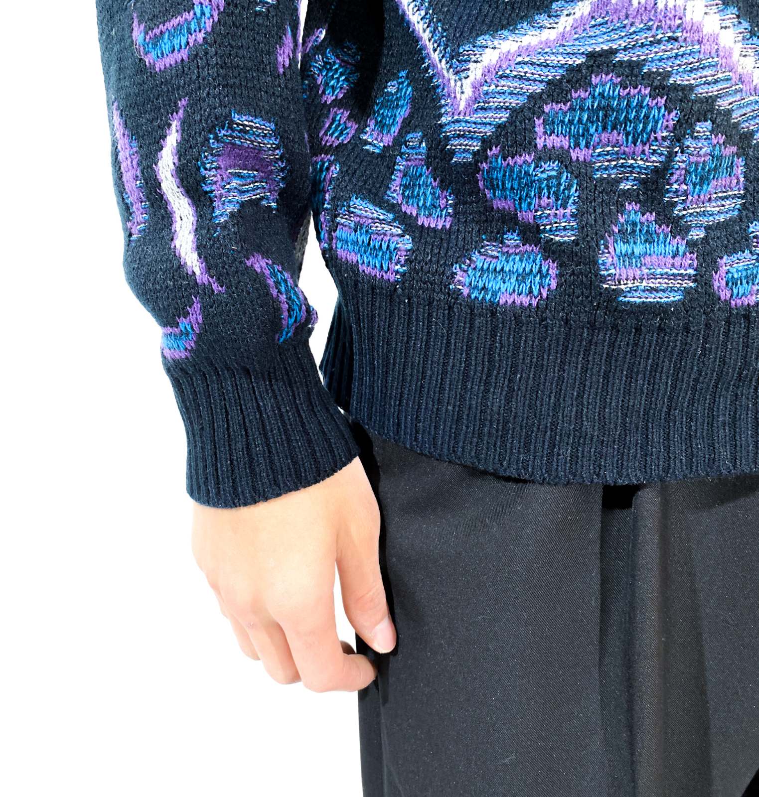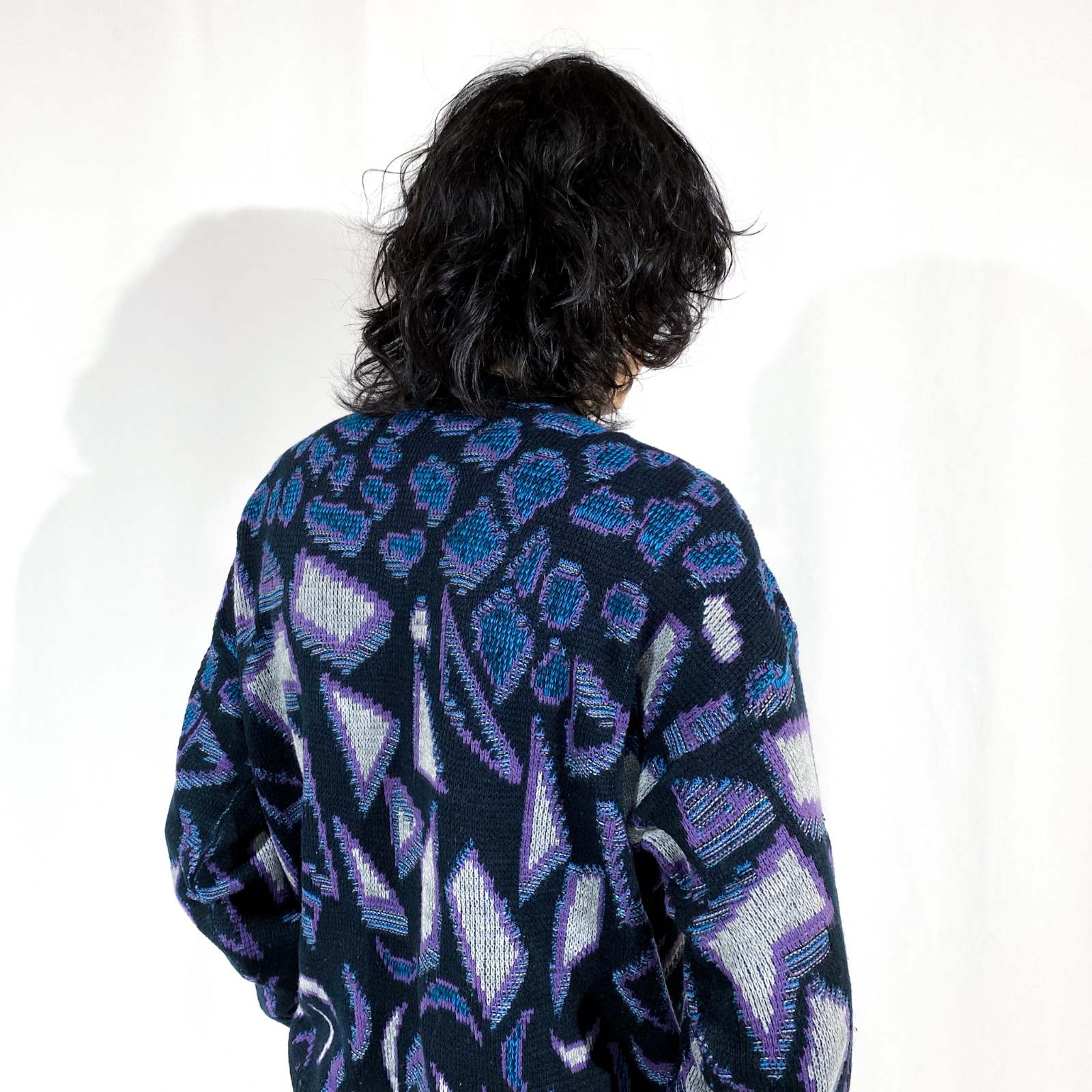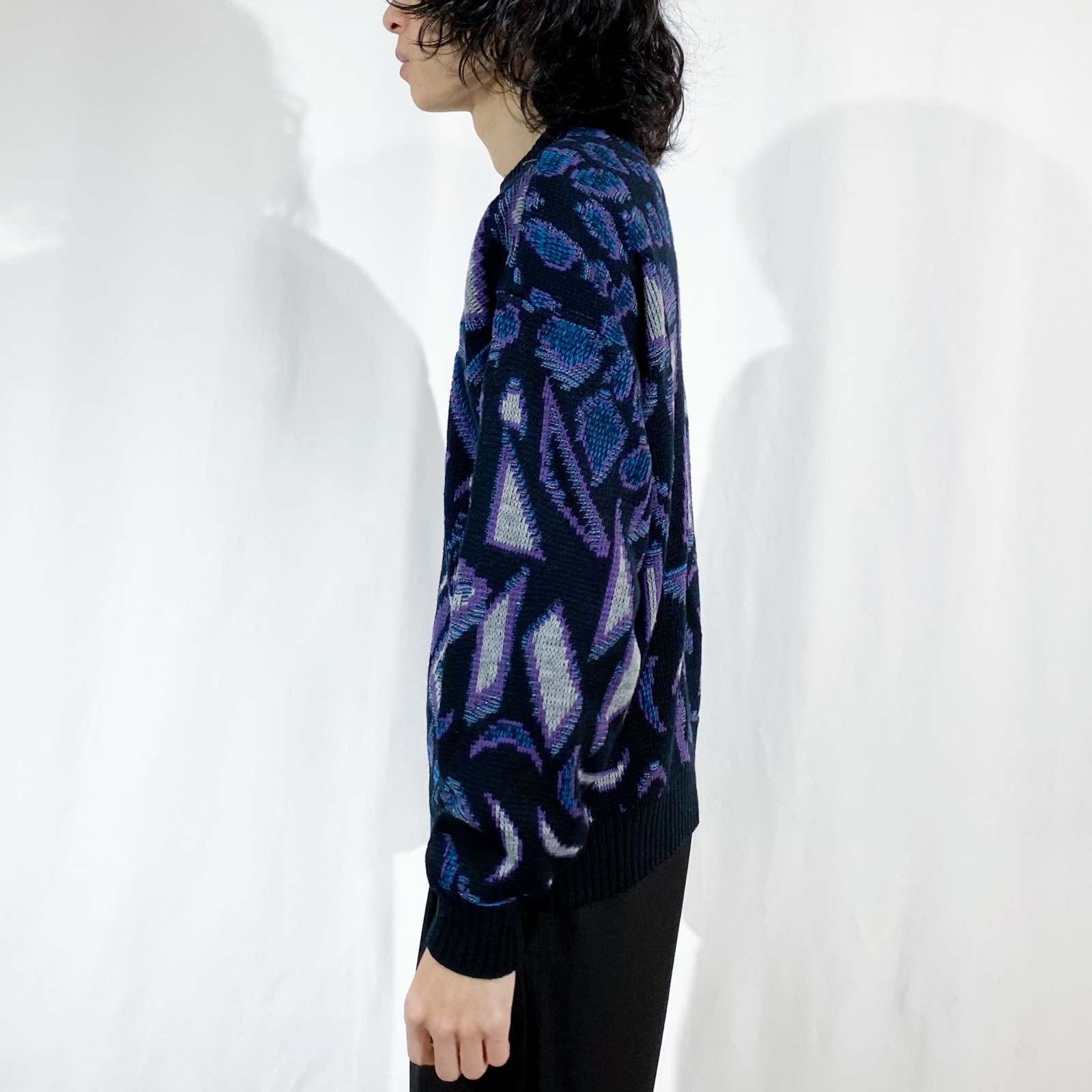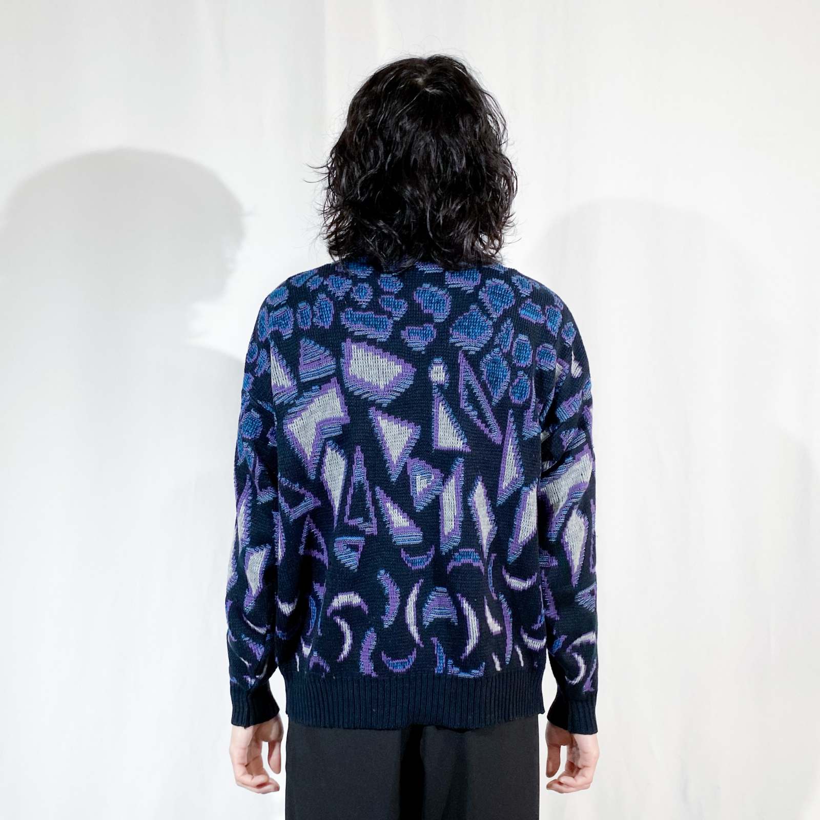 80年代 幾何学模様 かっこいい デザイン 黒 紫 アクリルニット