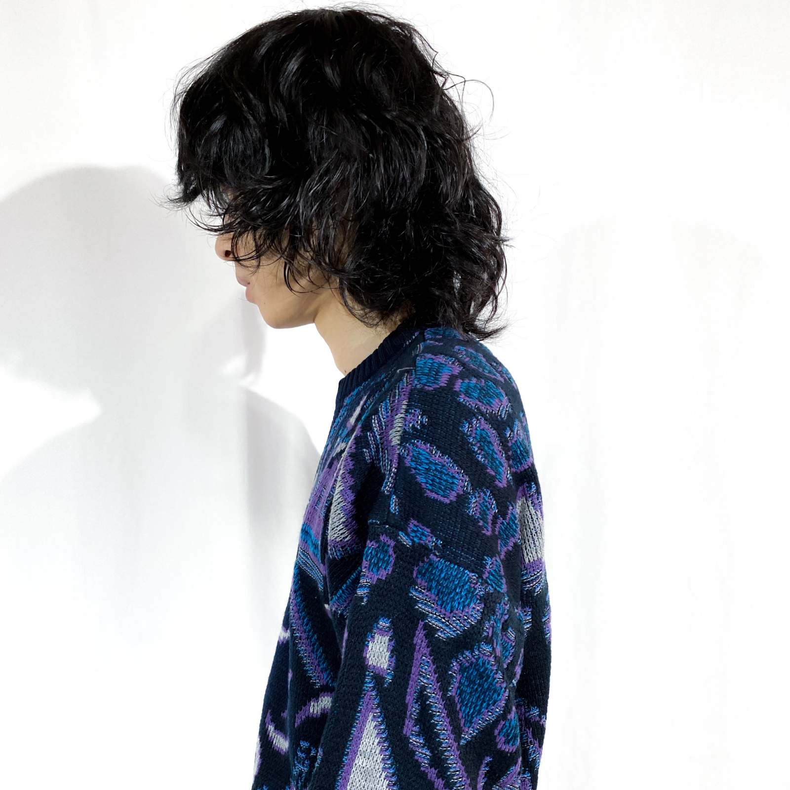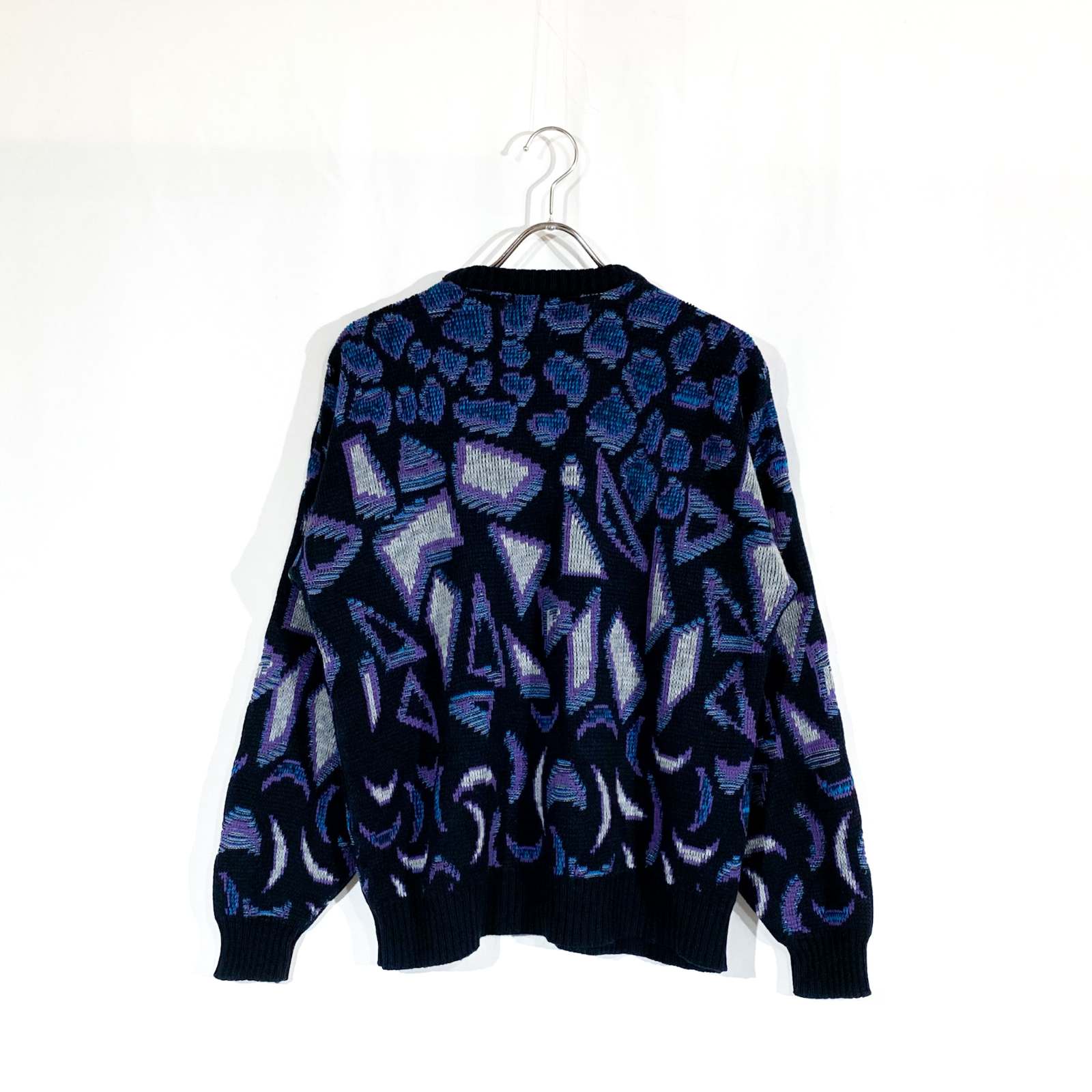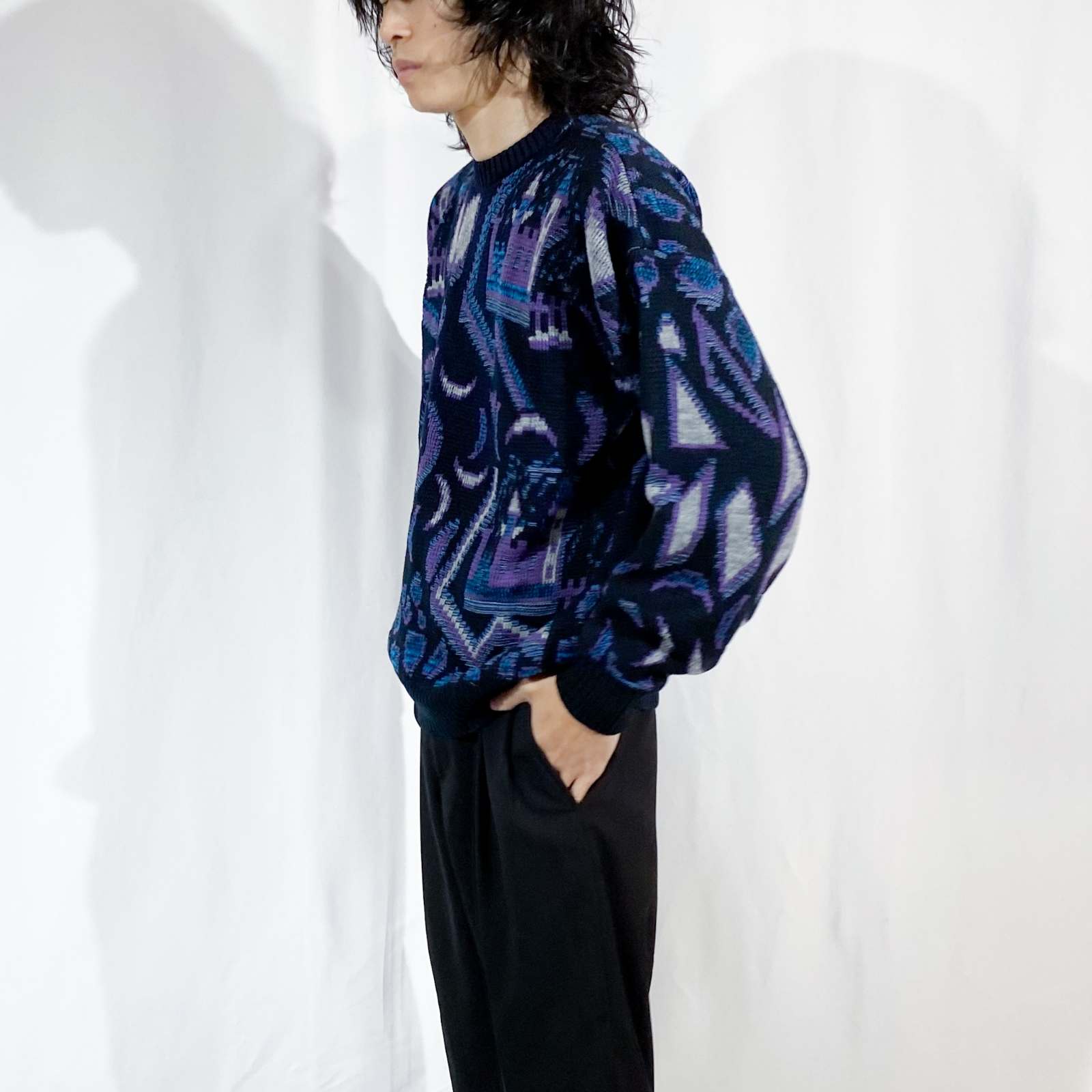 80年代 幾何学模様 かっこいい デザイン 黒 紫 アクリルニット