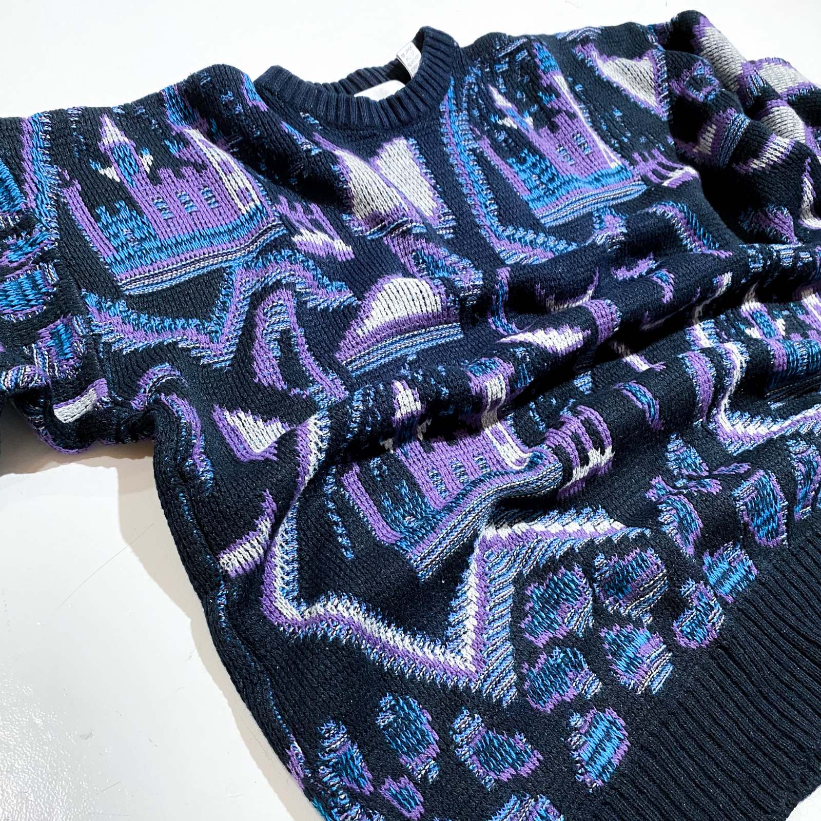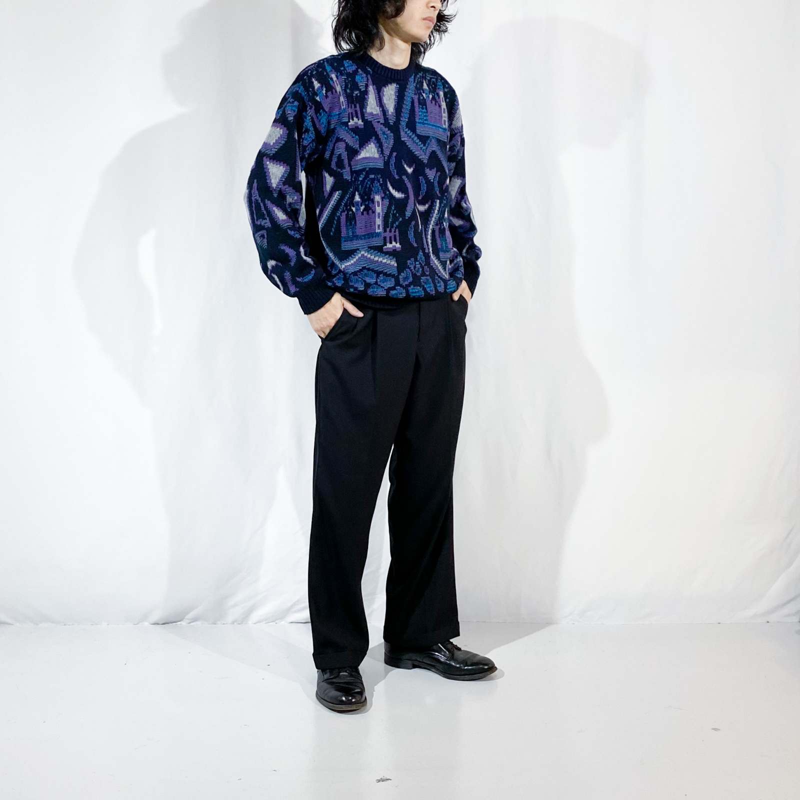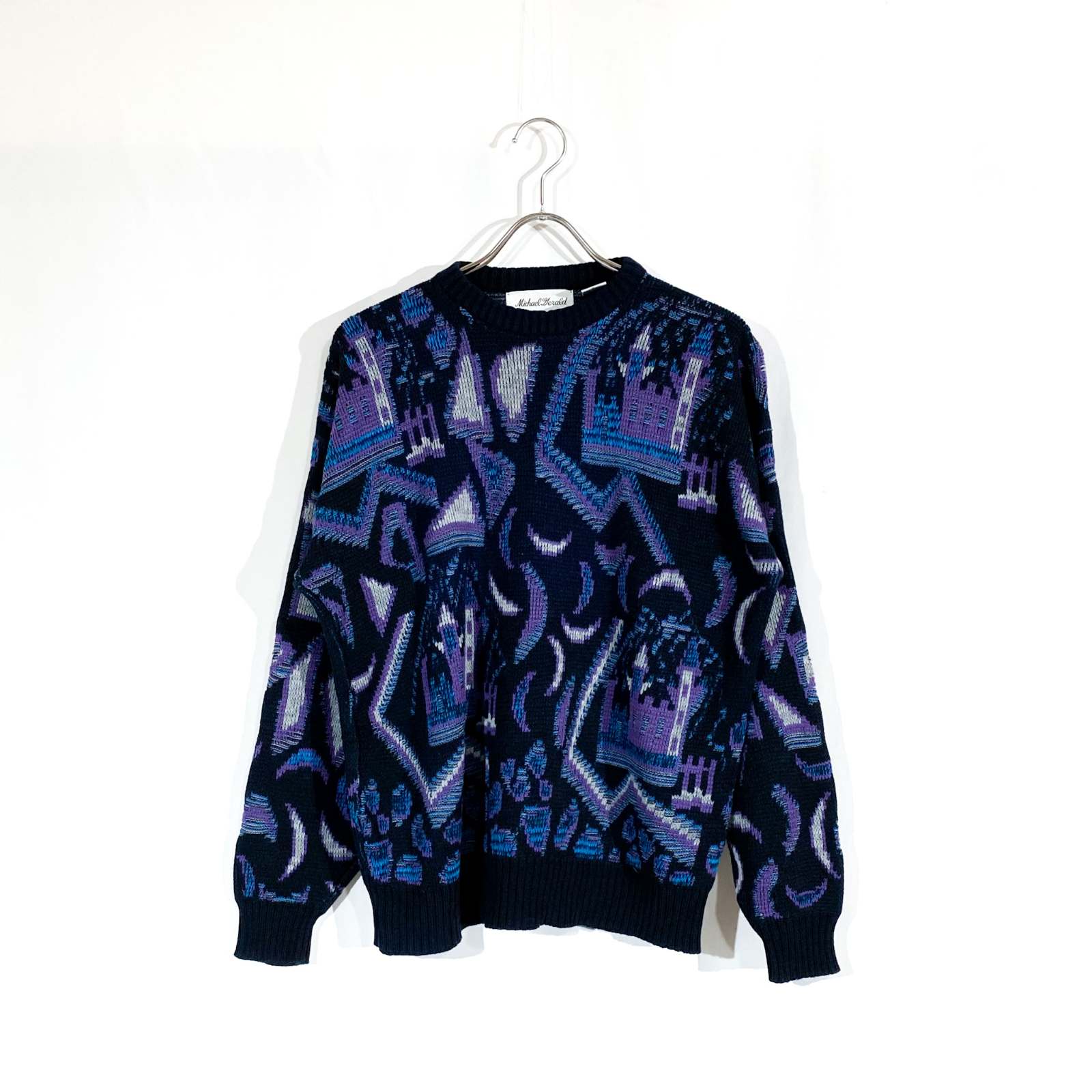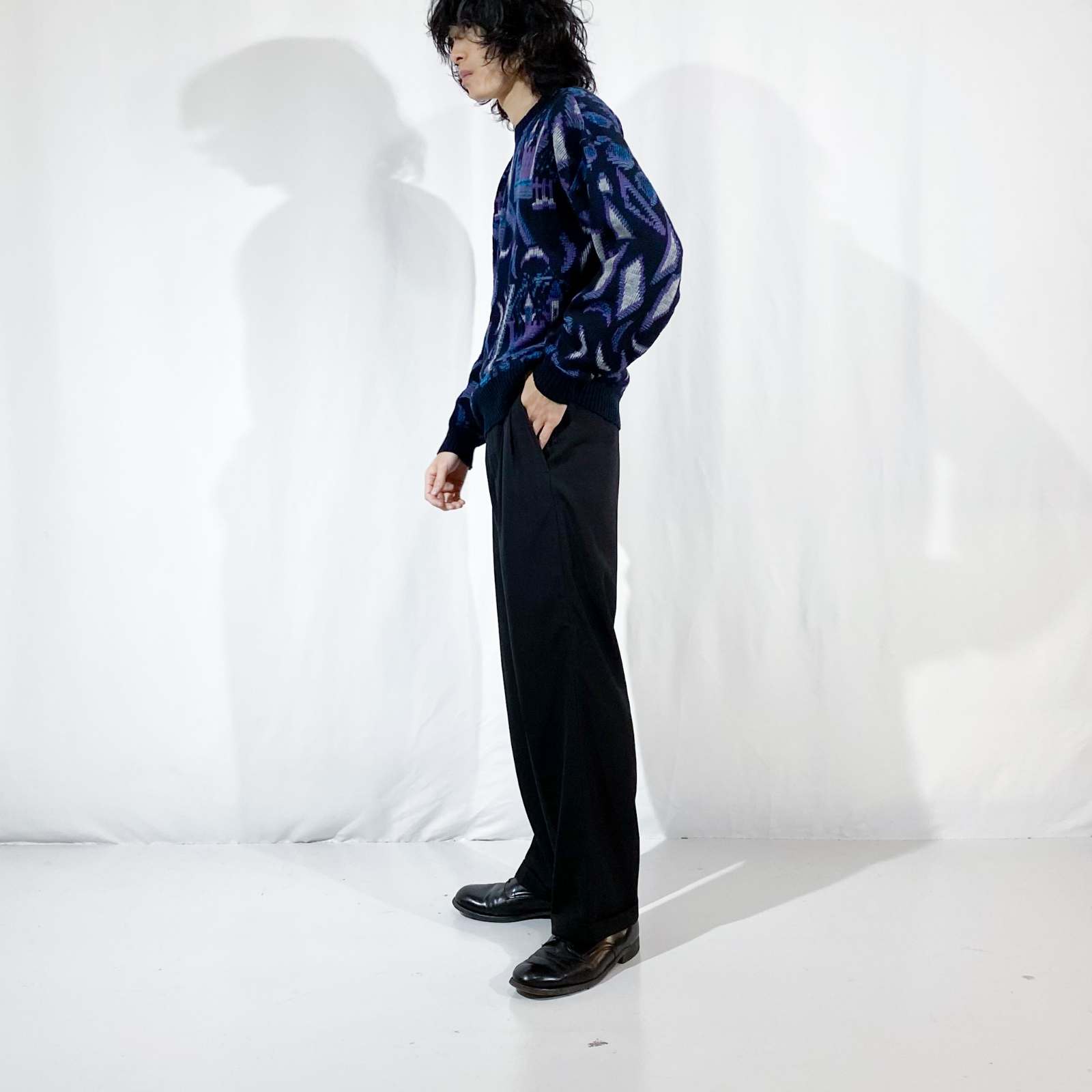 80年代 幾何学模様 かっこいい デザイン 黒 紫 アクリルニット