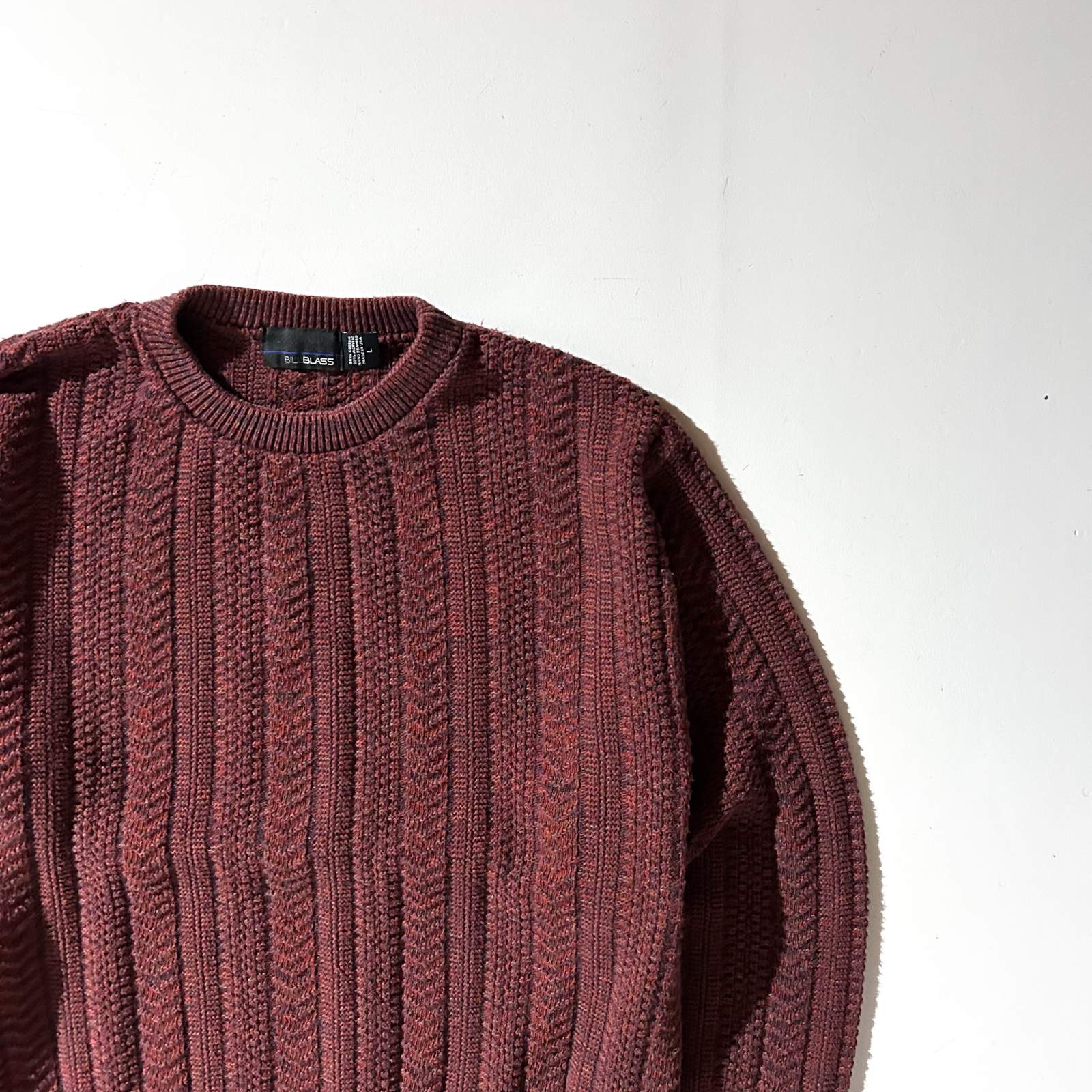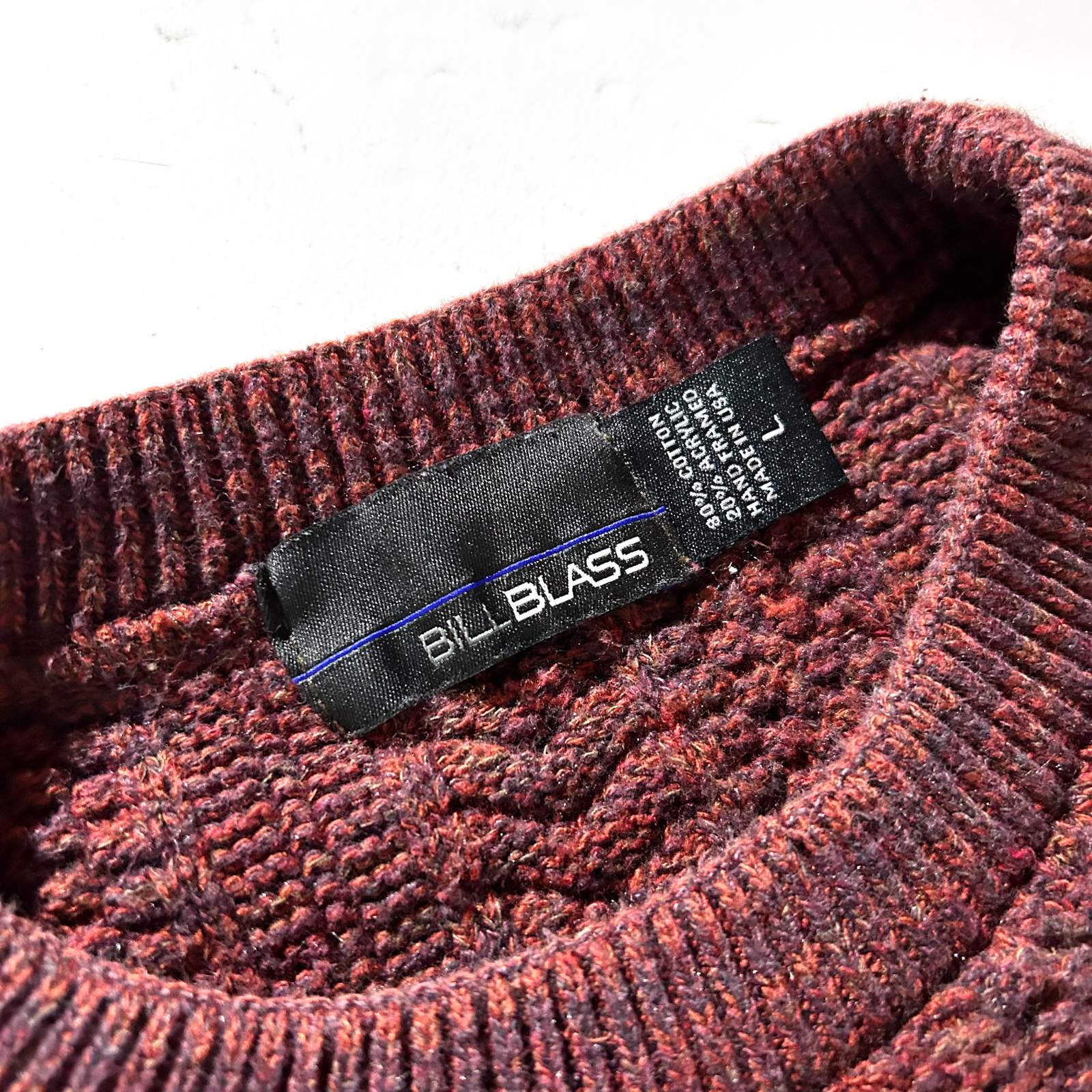 90's "made in USA" BILL BLASS ワインレッド メランジ コットン×アクリル ニット セーター
