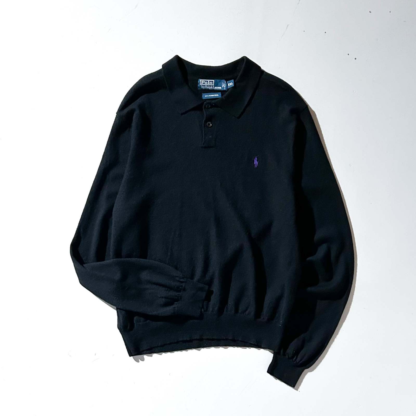 90's~ OLD RALPH LAUREN "merino wool" ブラック ニット L/Sポロシャツ