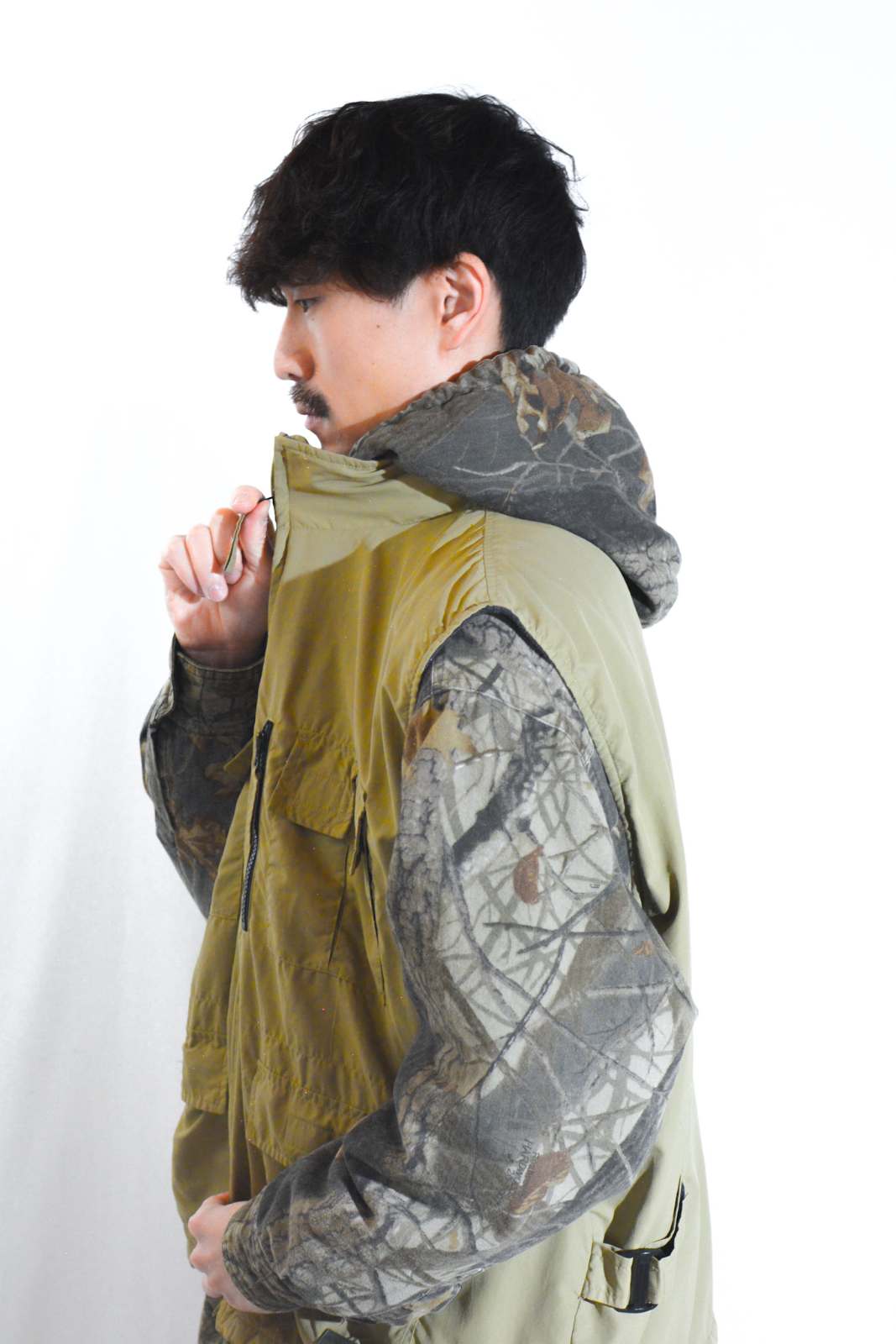 90年代頃を代表するアイテムのフード付きシャツ。きれいめなシャツにフード・リアルツリーカモって組み合わせでグッと様相が変わって。ラフでストリート感のある合わせに、裏キルティングがいつものシャツよりも暖かく。いつもスウェットを着るところに置き換えてレイヤード。独特さはないけれどスタンダードでもない、いい塩梅の面白さがあるグッドレギュラーです。