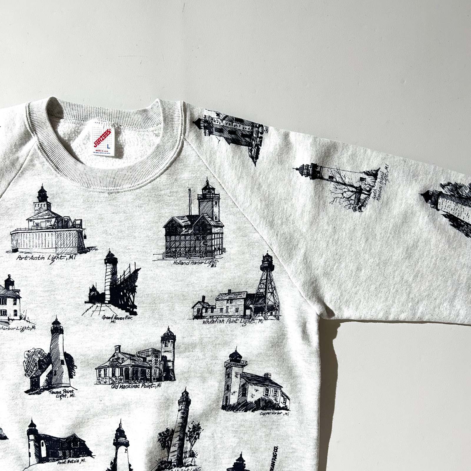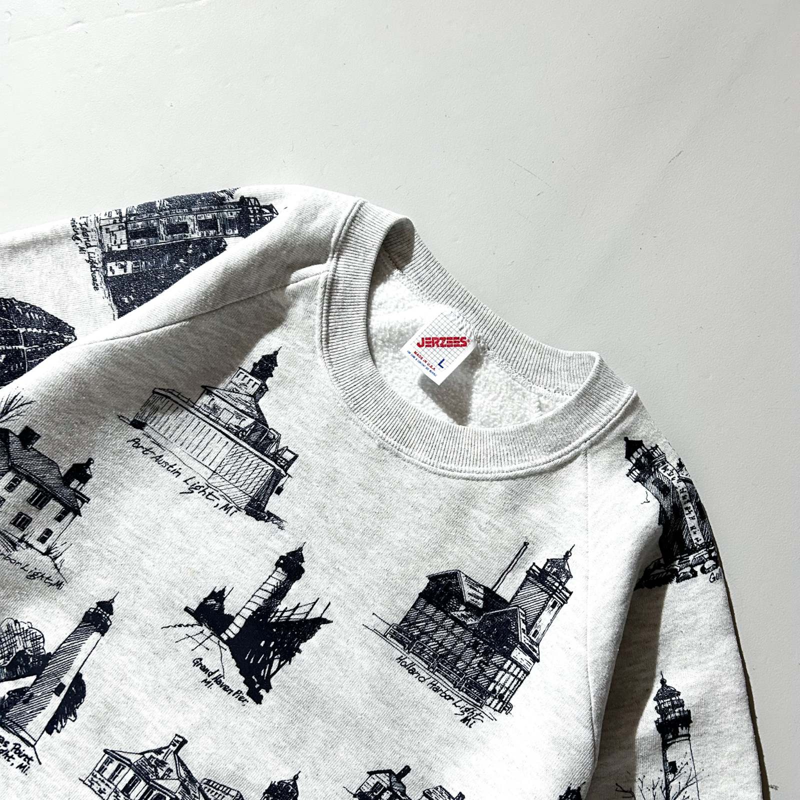 80's~90's "made in USA" JERZEES "MICHIGAN RAG" 総柄 スウェット シャツ