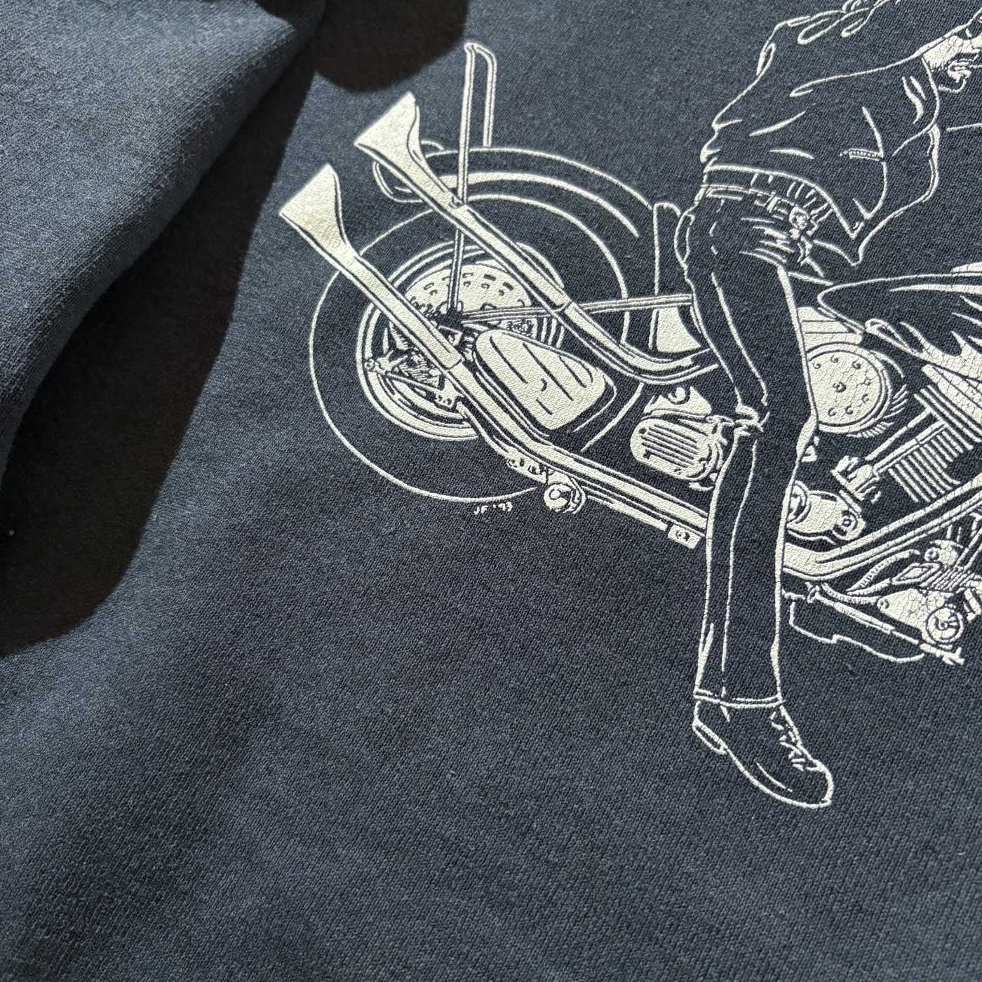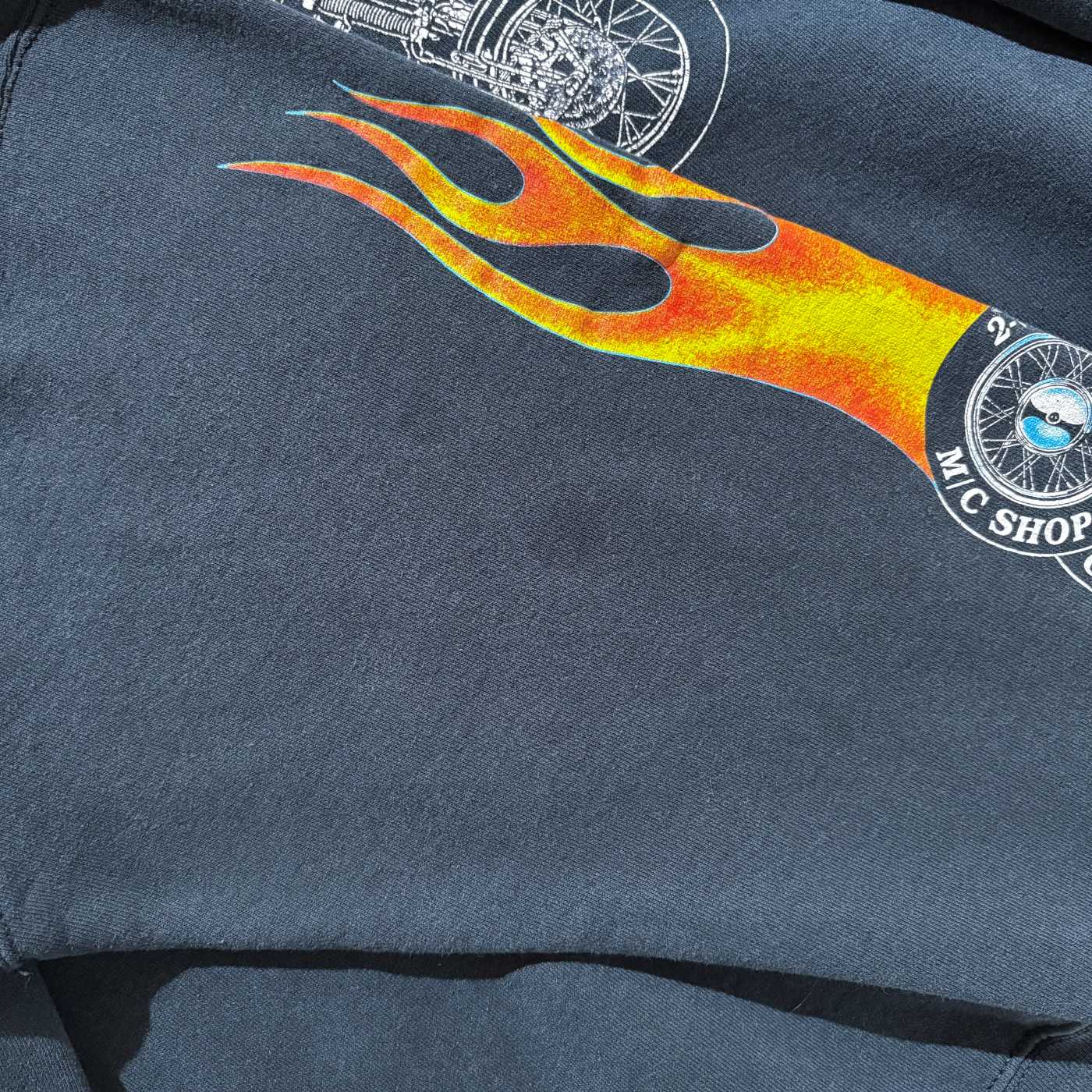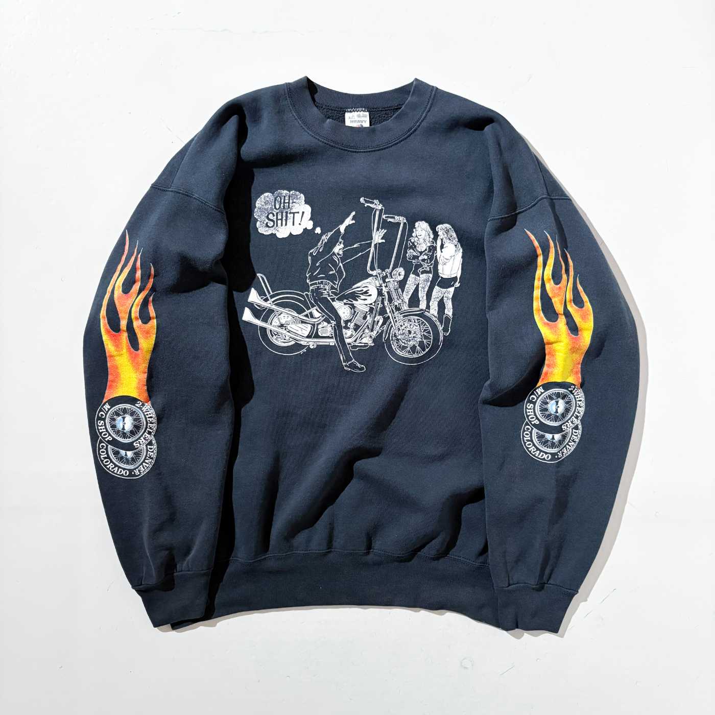 90's "MADE IN USA" 袖プリント バイクショップ スウェット シャツ