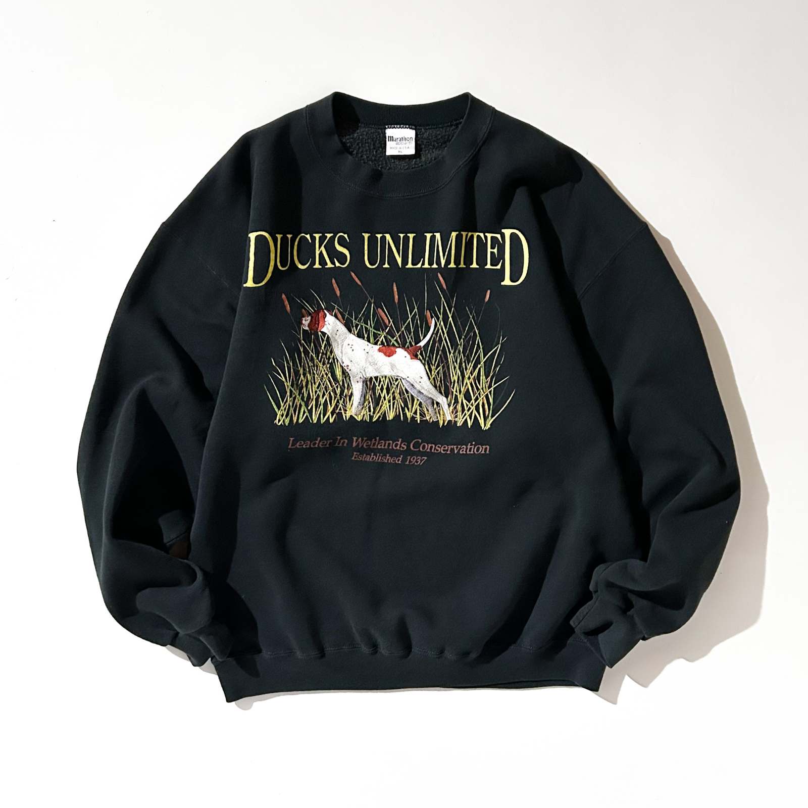 90's "made in USA" marathon apparel "DUCKS UNLIMITED" ブラック アニマル スウェット シャツ