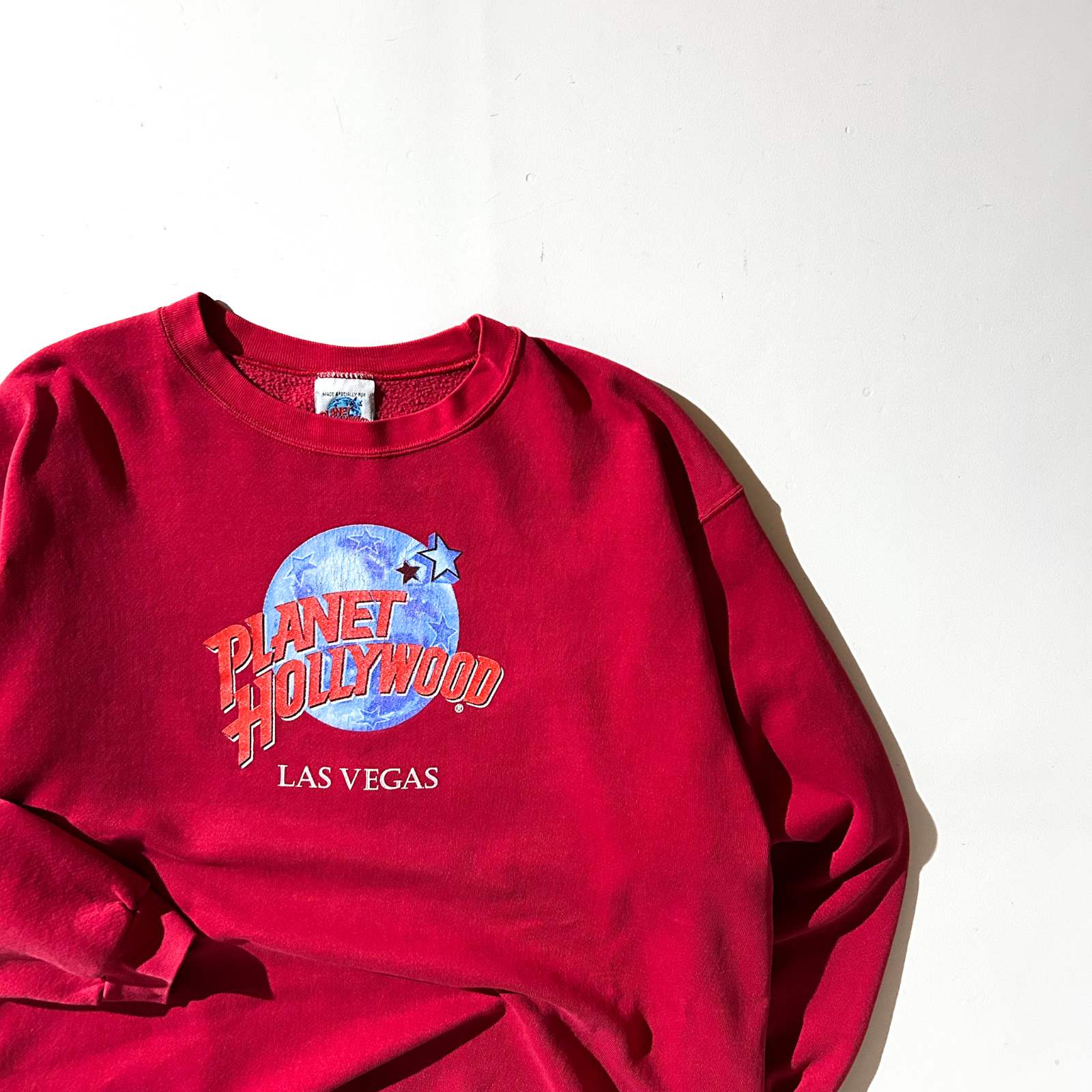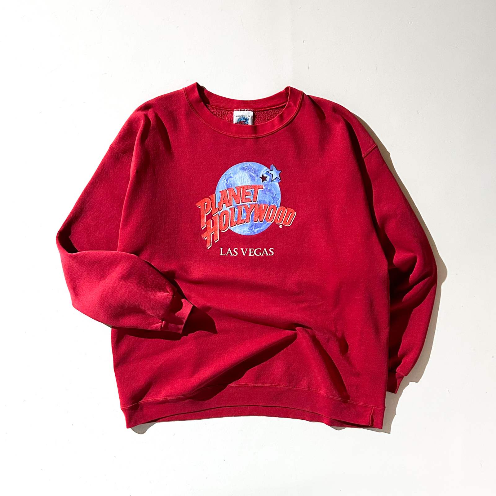 「プラネット・ハリウッド(Planet Hollywood)」のスウェット。 ハリウッド映画をテーマにしたレストランで、当時は世界各地に店舗展開していましたが、今はラスベガスのみになってしまいました。 …で、これがラスベガスで販売していたプラネット・ハリウッドのスウェットです。何だか最後まで残った店舗って感じが、リーバイスのバレンシア工場みたいなレアさがありますよね笑