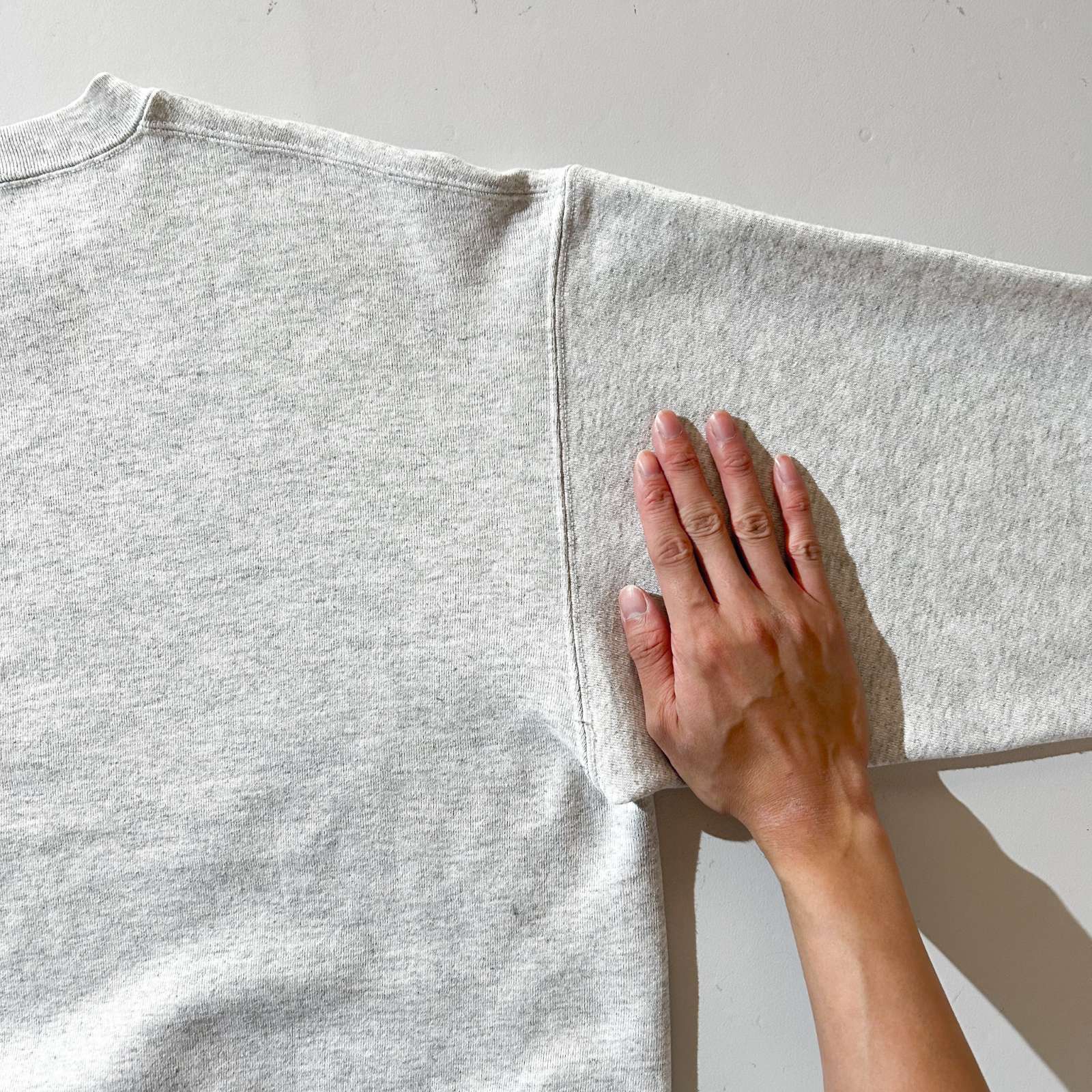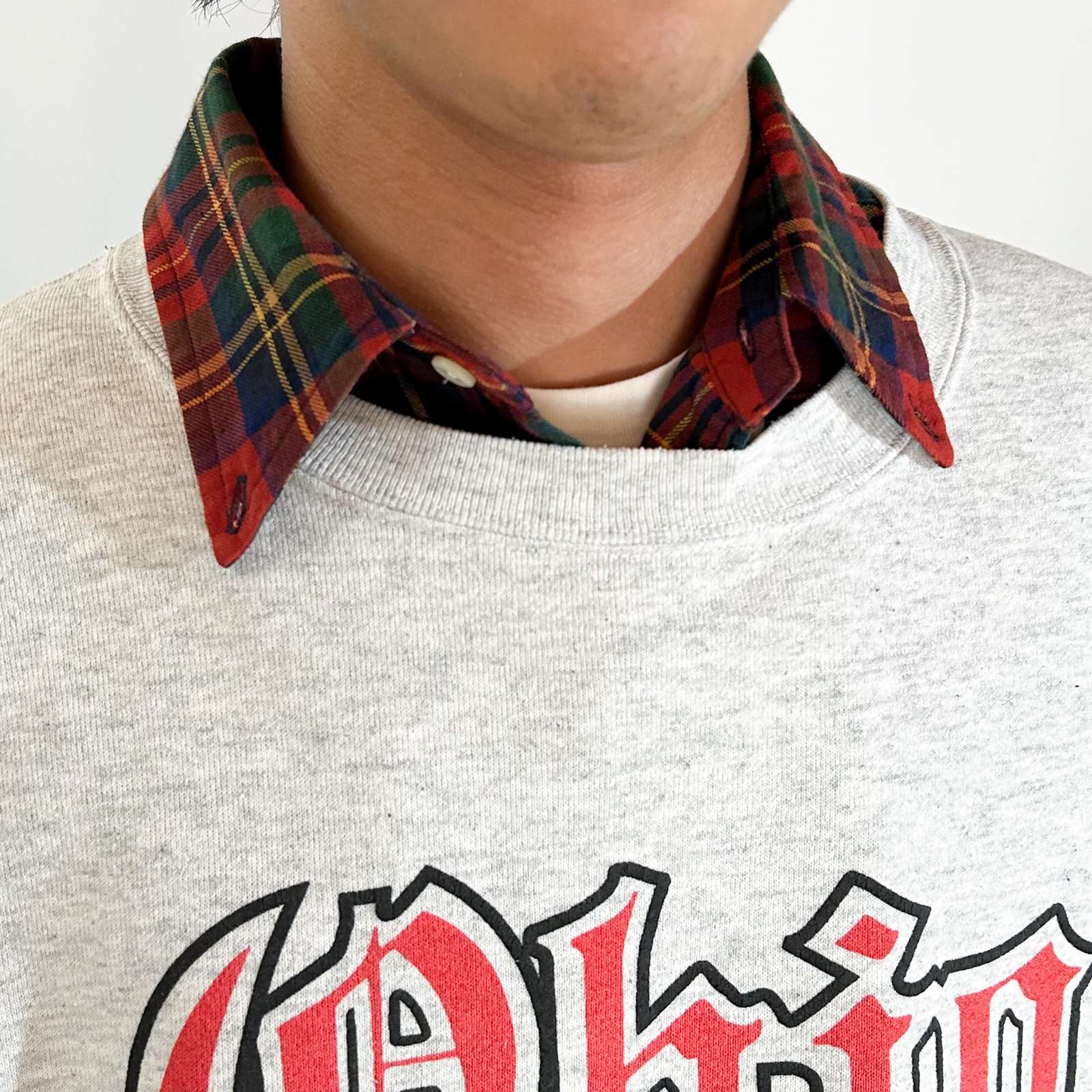 オハイオステイト大学のカレッジスウェット。カレッジアイテムは「気づけば集まっている」収集系アイテムの代表格ですが、その中でもトップクラスの知名度を誇るのがこちら。大学特有のオールドイングリッシュ体のロゴが迫力たっぷりで映えます。 シルエットはまさに今の気分にフィットする仕上がり。肩はドロップショルダー気味に落ち、身幅はゆったりしながらも着丈は短め。まるでラッセルやジャージーズのような絶妙なバランスで、スウェット好きにはたまらないシルエットです。タグは欠損していますが、ファッション使いするうえでは全く問題なし。 スタイリングは、ボタンダウンシャツをインナーに仕込んでプレッピーに仕上げるのもよし。あるいはフードパーカーやネルシャツをレイヤードしてストリートライクに振るのもおすすめ。王道カレッジ×自由な着こなしで、古着好きにぴったりな一枚です。