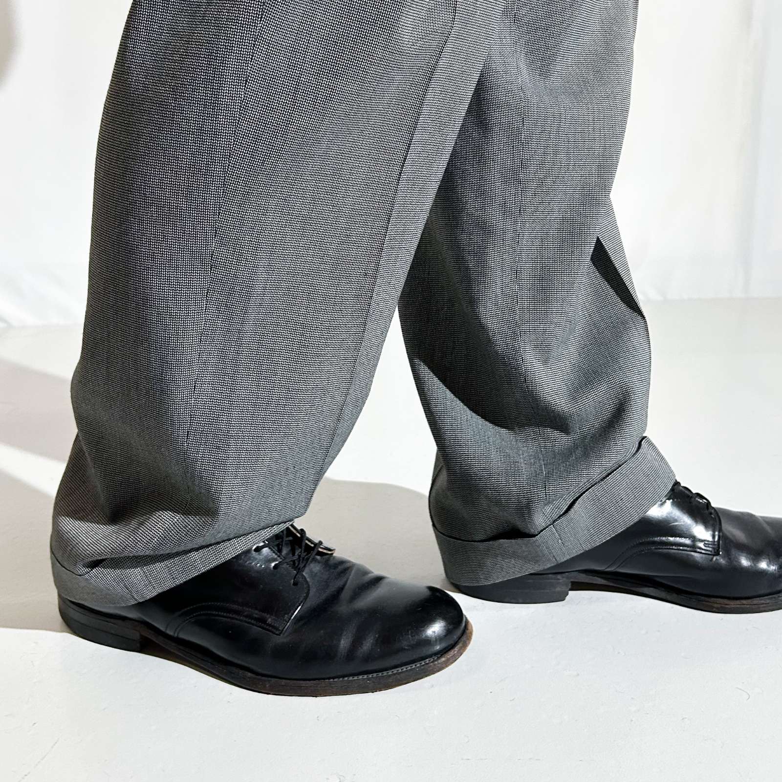 【Webスタッフ大鹿のおすすめ商品】アメリカの高級百貨店〈Macy’s(メイシーズ)〉のプライベートブランド〈ALFANI(アルファーニ)〉からスラックスをチョイス。 ビスコース混ならではの、しなやかなドレープ感と美しい落ち感が魅力の一本です。履くだけで上品な雰囲気を演出してくれる素材感は、さすがメイシーズ発ブランド。 シルエットは渡り太めのゆったりフィットで、裾にかけて緩やかにテーパード。 ポリエステルを混紡しているため、イージーケアかつ速乾性も◎。タフに履けるのに見た目はキレイめ、まさに“使い勝手の良い1本”。 光沢感のあるグレーカラーで、レザーシューズやジャケットと合わせてドレスライクにも、スウェットでカジュアルにも振れる万能アイテムです。