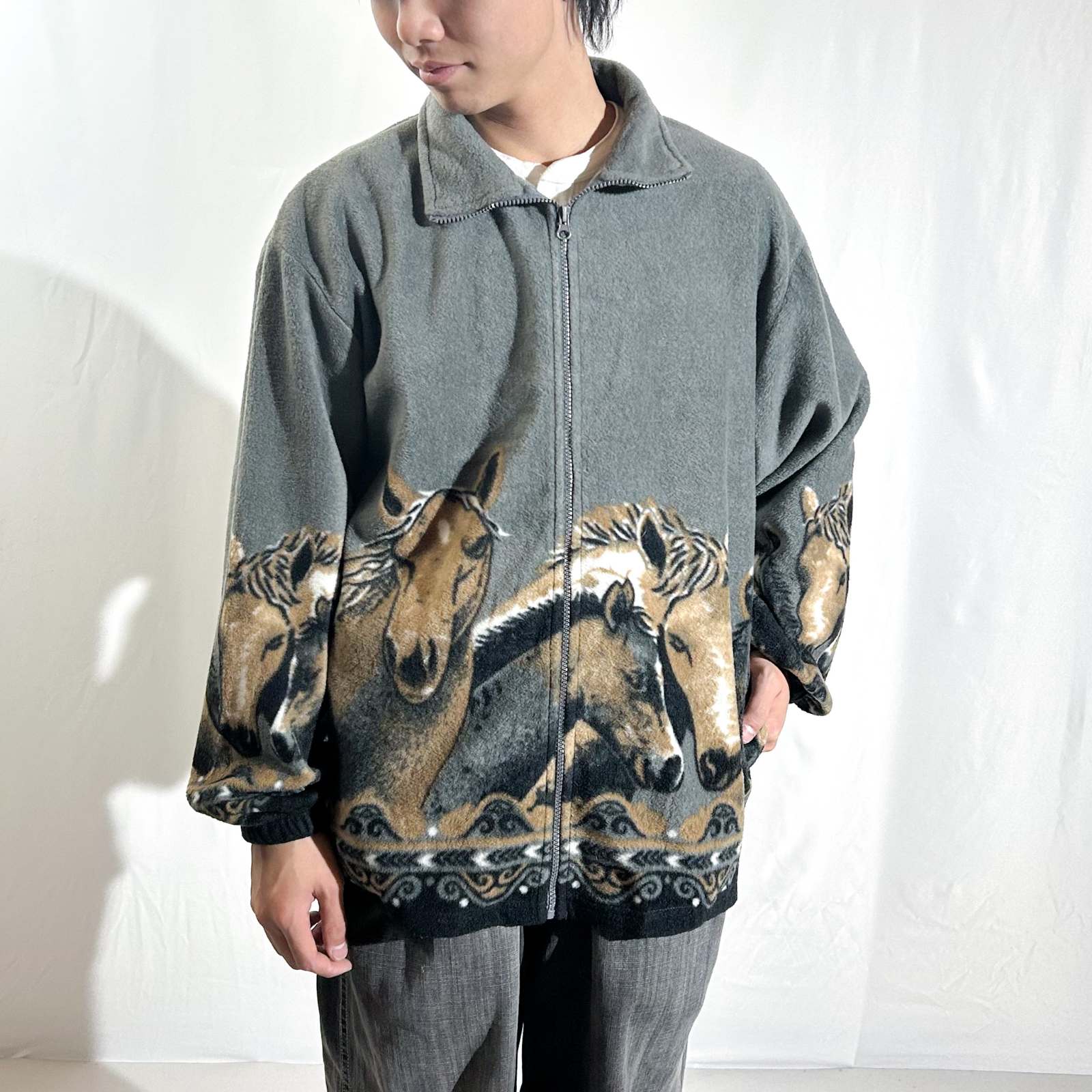 90's MAZMANIA 馬 アニマル フリース ジャケット