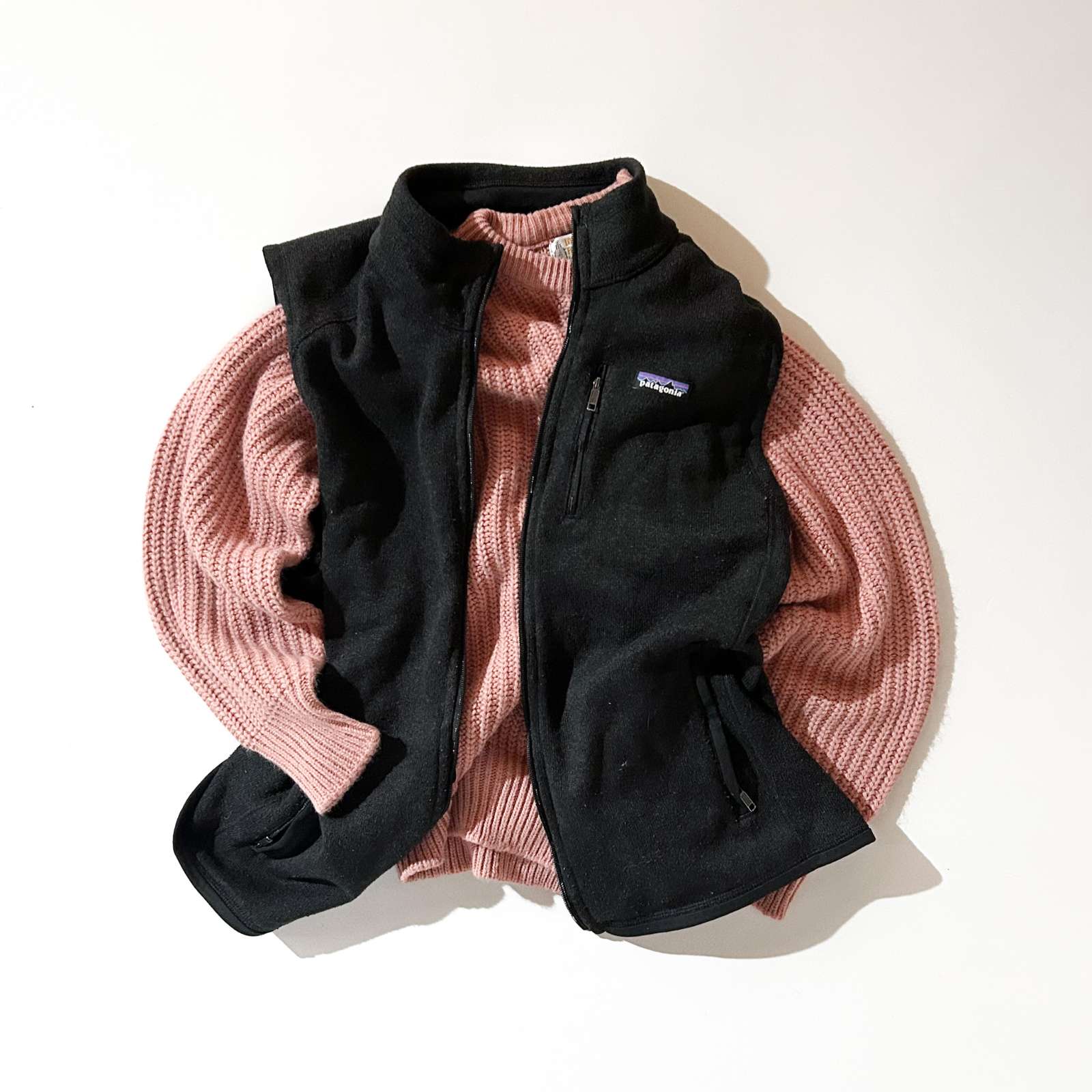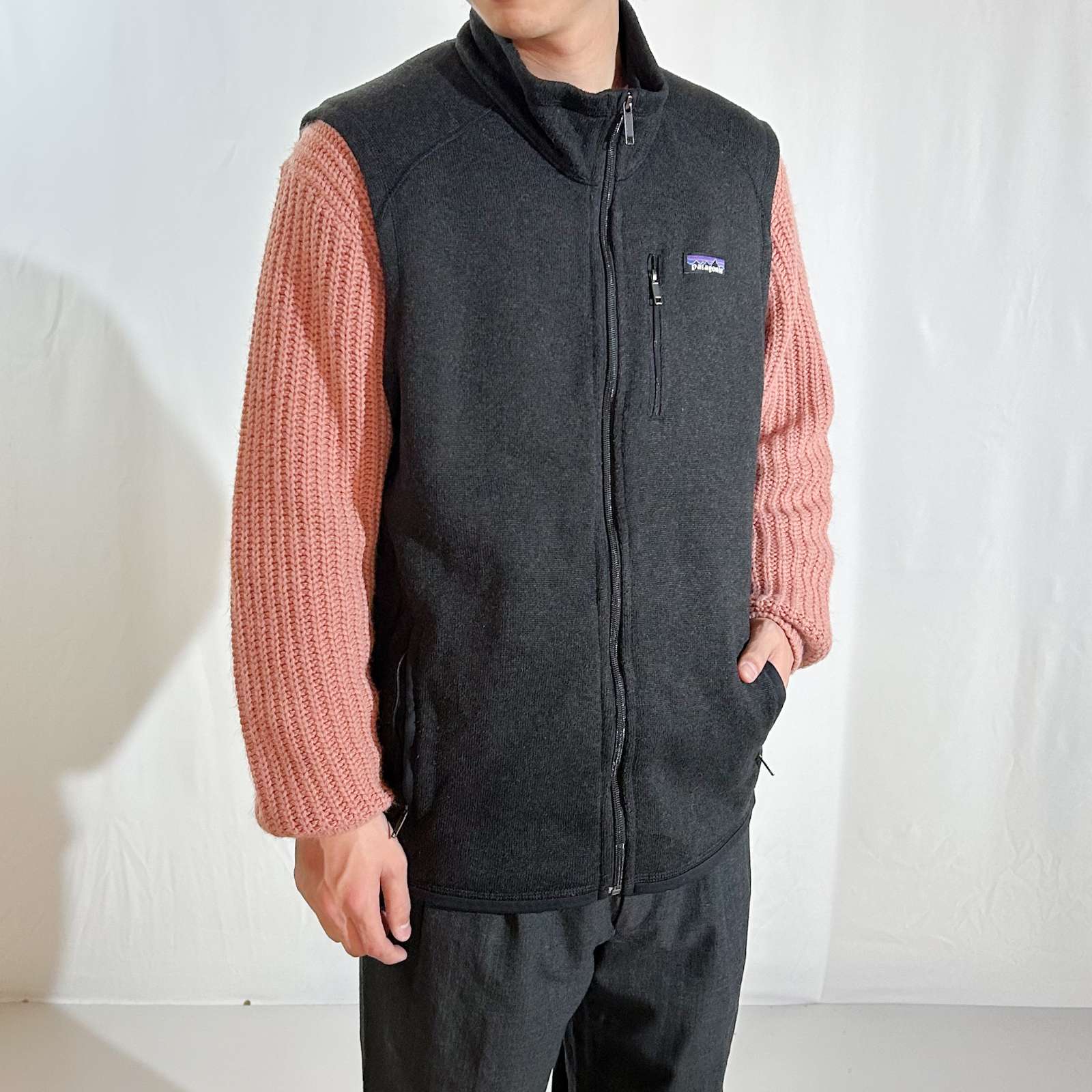 Patagoniaで1番売り上げてると話題のベタセのベスト版。 私物でも愛用してるのを今回はおすすめに多く入荷してます。 ニットやスウェット、パーカー、アノラックなんでもこいな万能ベスト。裏地フリース、表地ニット生地なので柔らかく暖かい。レディースがトレッキングシューズと合わせても可愛いと思います。XL表記ですが、元々がタイトな作りのため、実寸L相当。