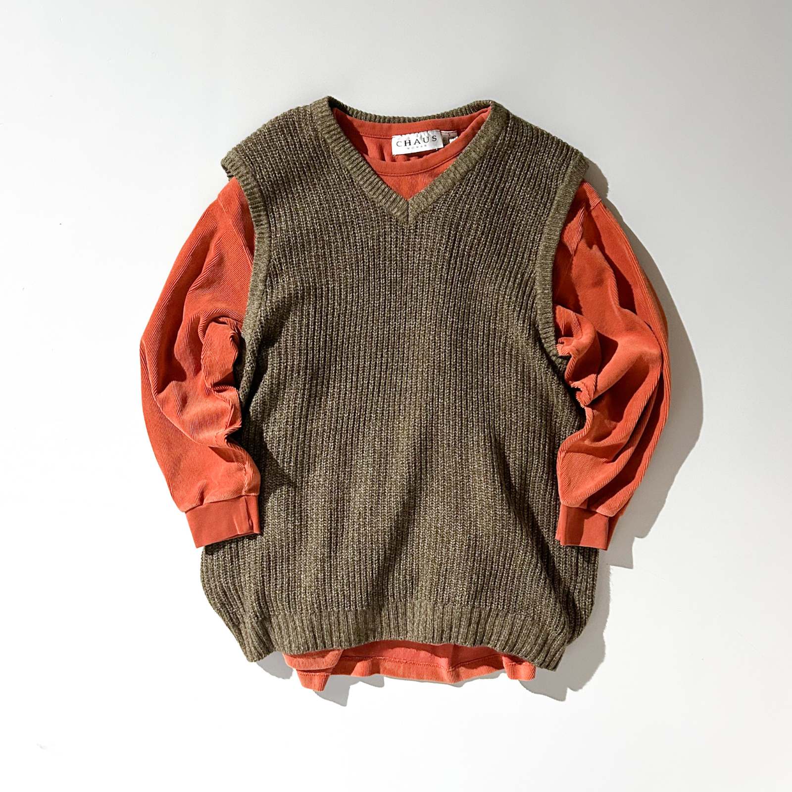 90年代 茶 ニットベスト 綺麗め カジュアル