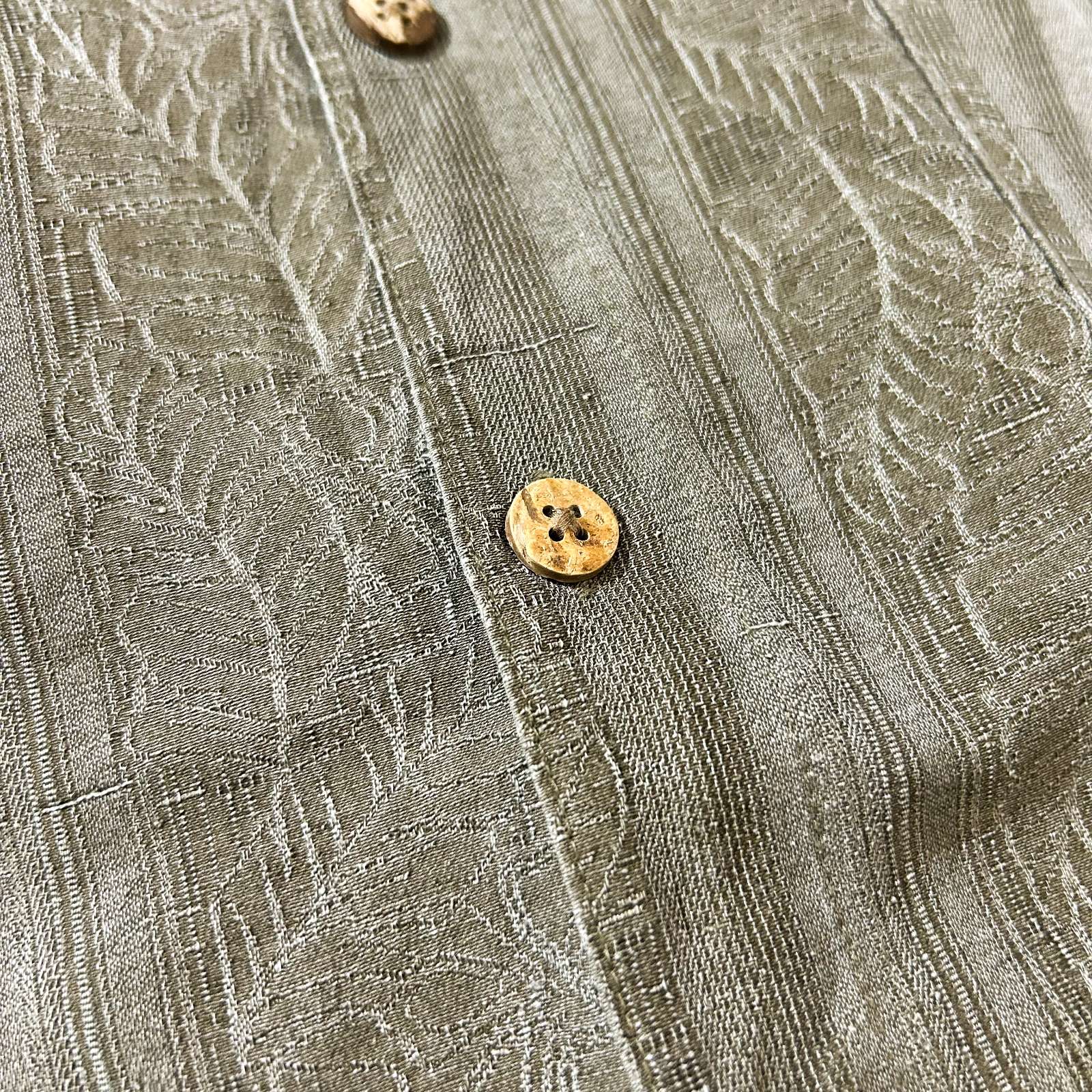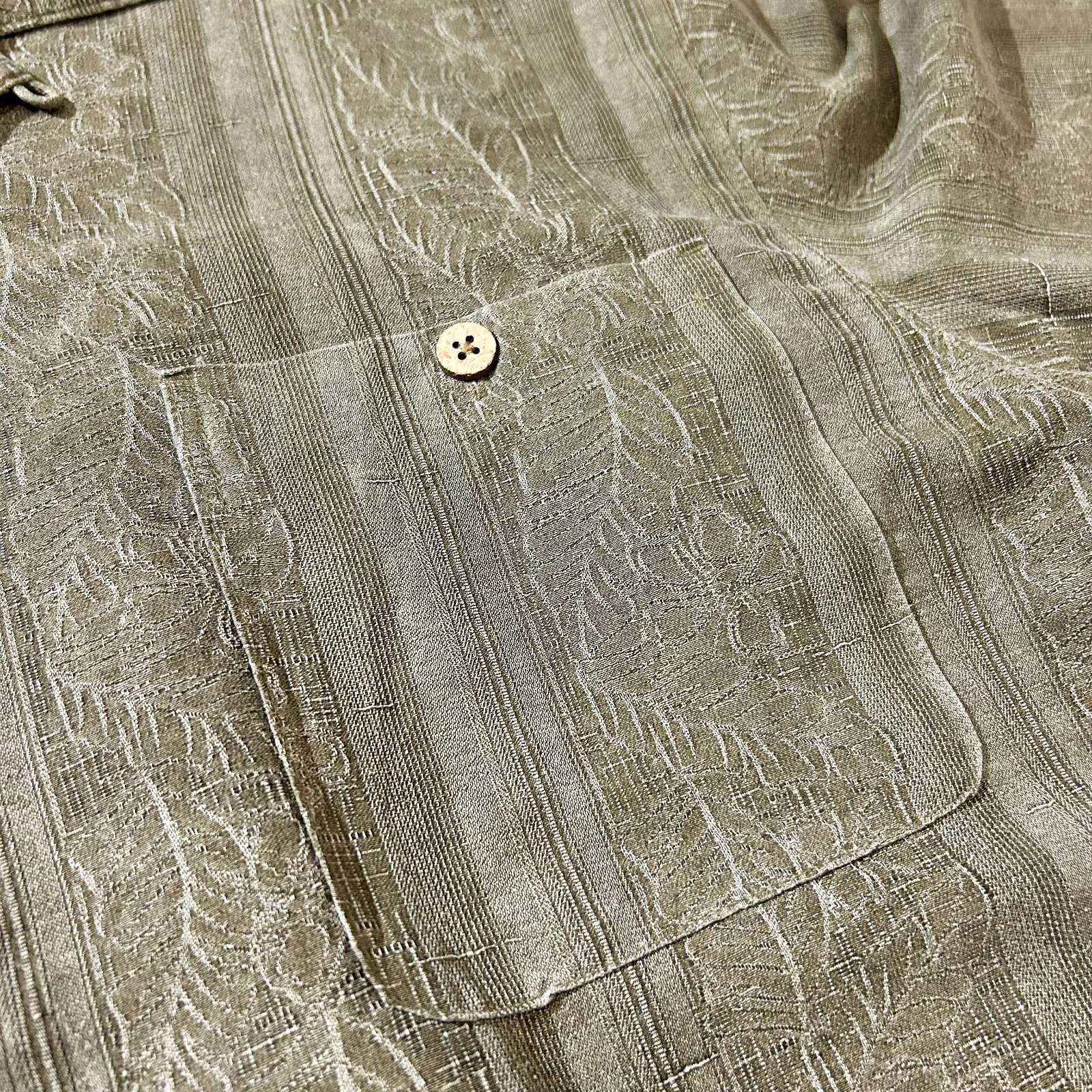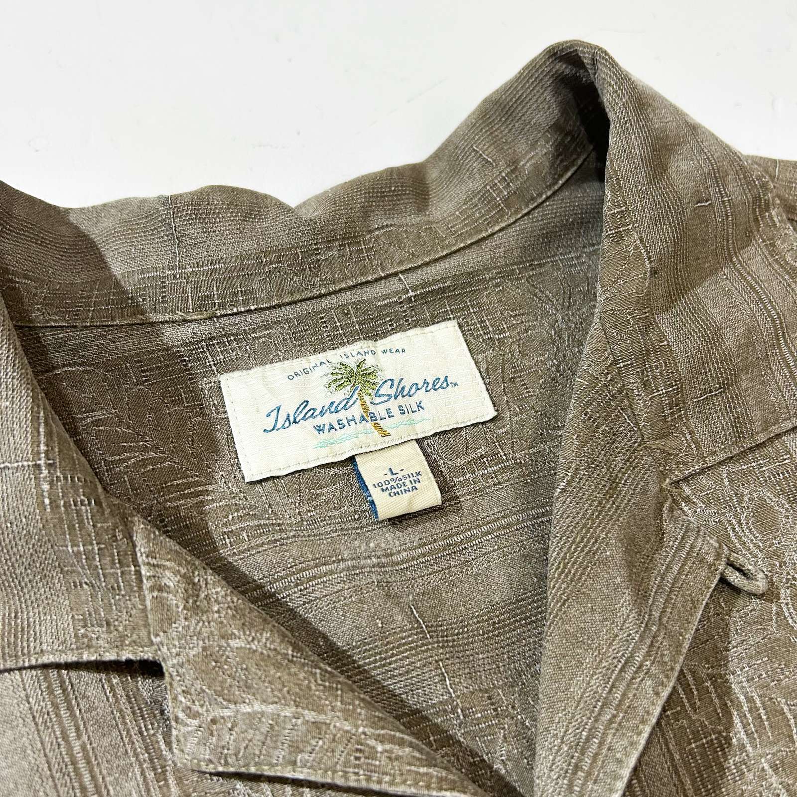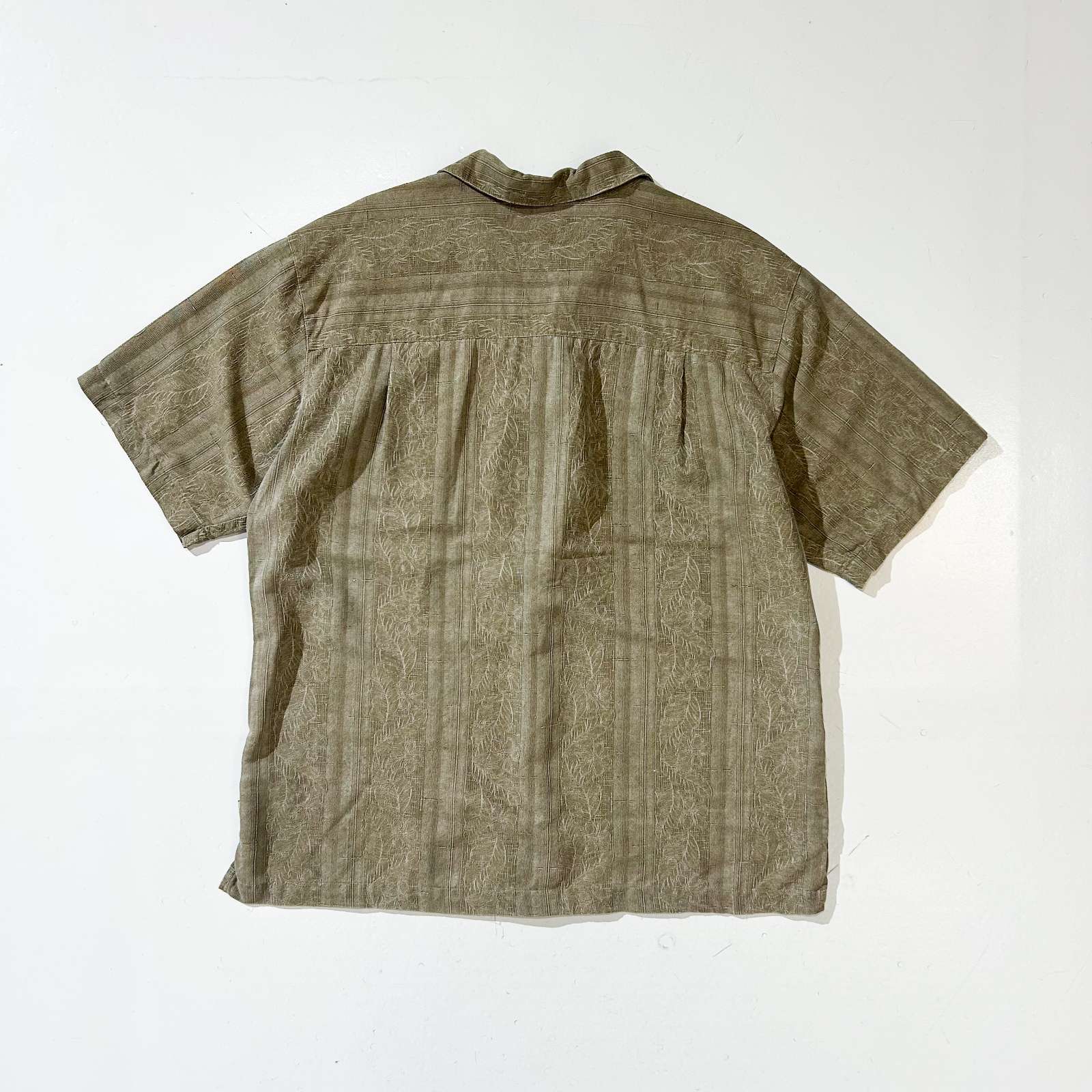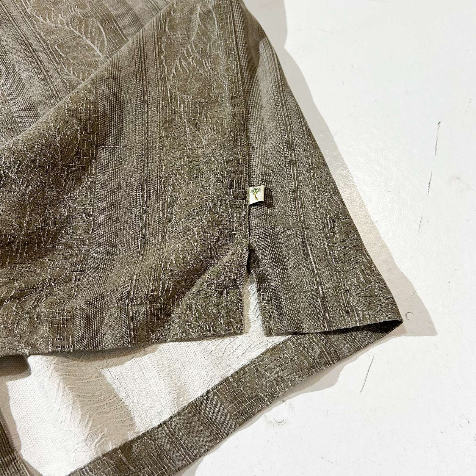 00's Island shores 総柄 ライン オープンカラー ヘビーシルク S/S シャツ