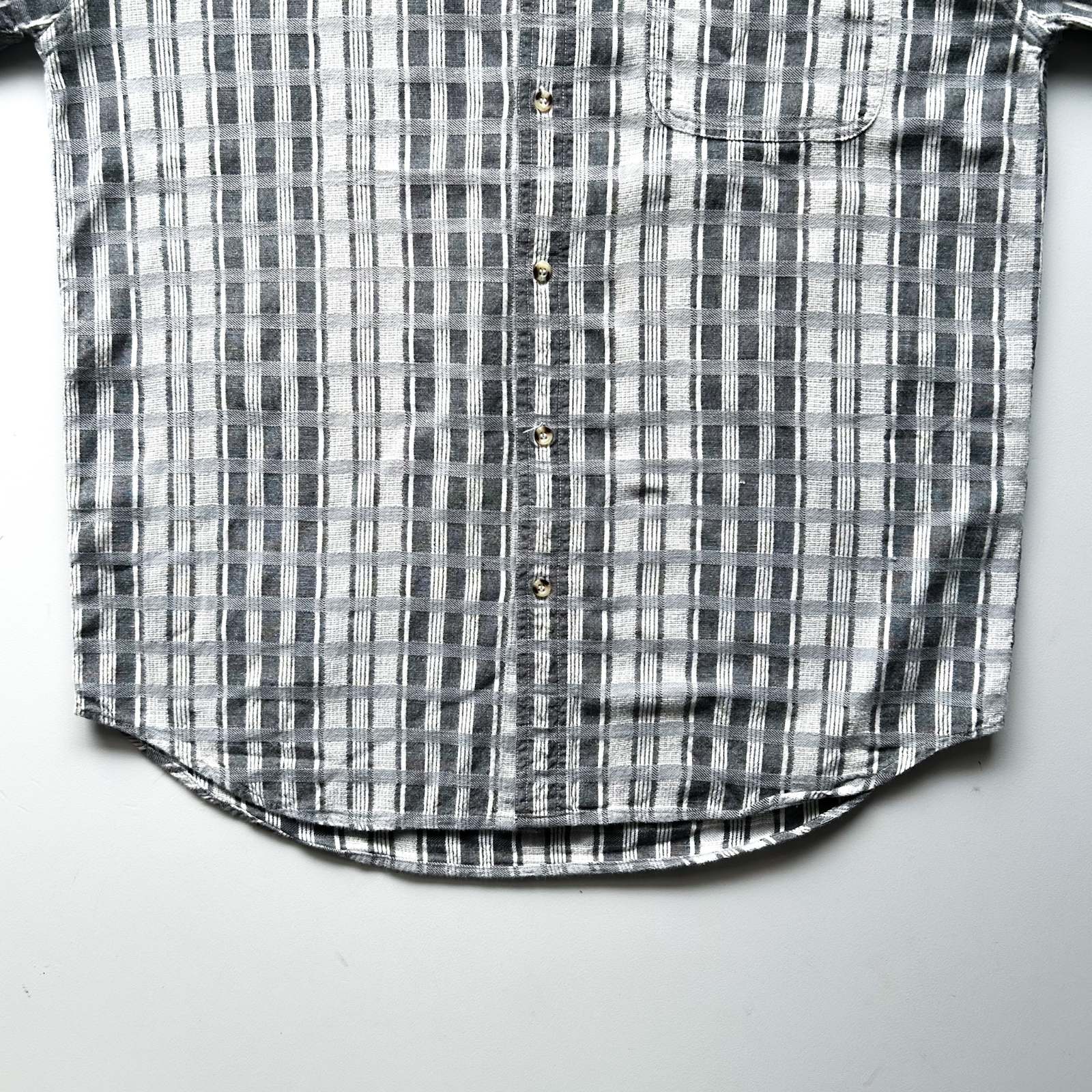 【Webスタッフ大鹿のおすすめ商品】 使う糸のゲージ(太さ)を切り替えた独特のチェック柄が魅力の一着。ざっくりとしたローゲージでまるでリネンのような表情を見せつつ、シャツらしいハイゲージ糸も併用された、イタリアらしい繊細かつ遊びのある織りが光ります。 素材はコットン100%ですが、まるで異素材のような奥行きある質感が印象的。首元は上品なスタンドカラー仕様で、カジュアルにもきれいめにも対応可能。 シルエットはほぼボックスのラウンドシルエットで、着丈も自然な長さ。いつもの感覚で着られる丈感も嬉しいポイントです。ちょっと人と差をつけたい、そんなときにおすすめのシャツです。