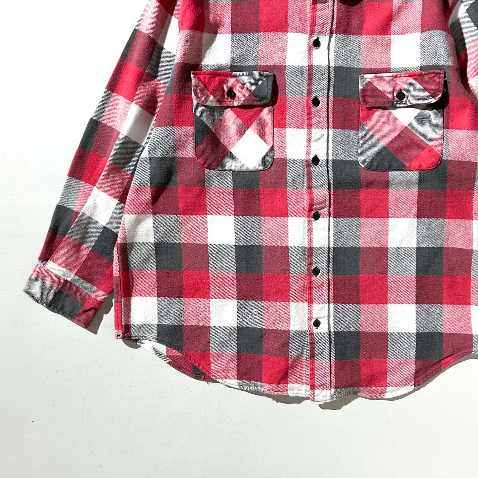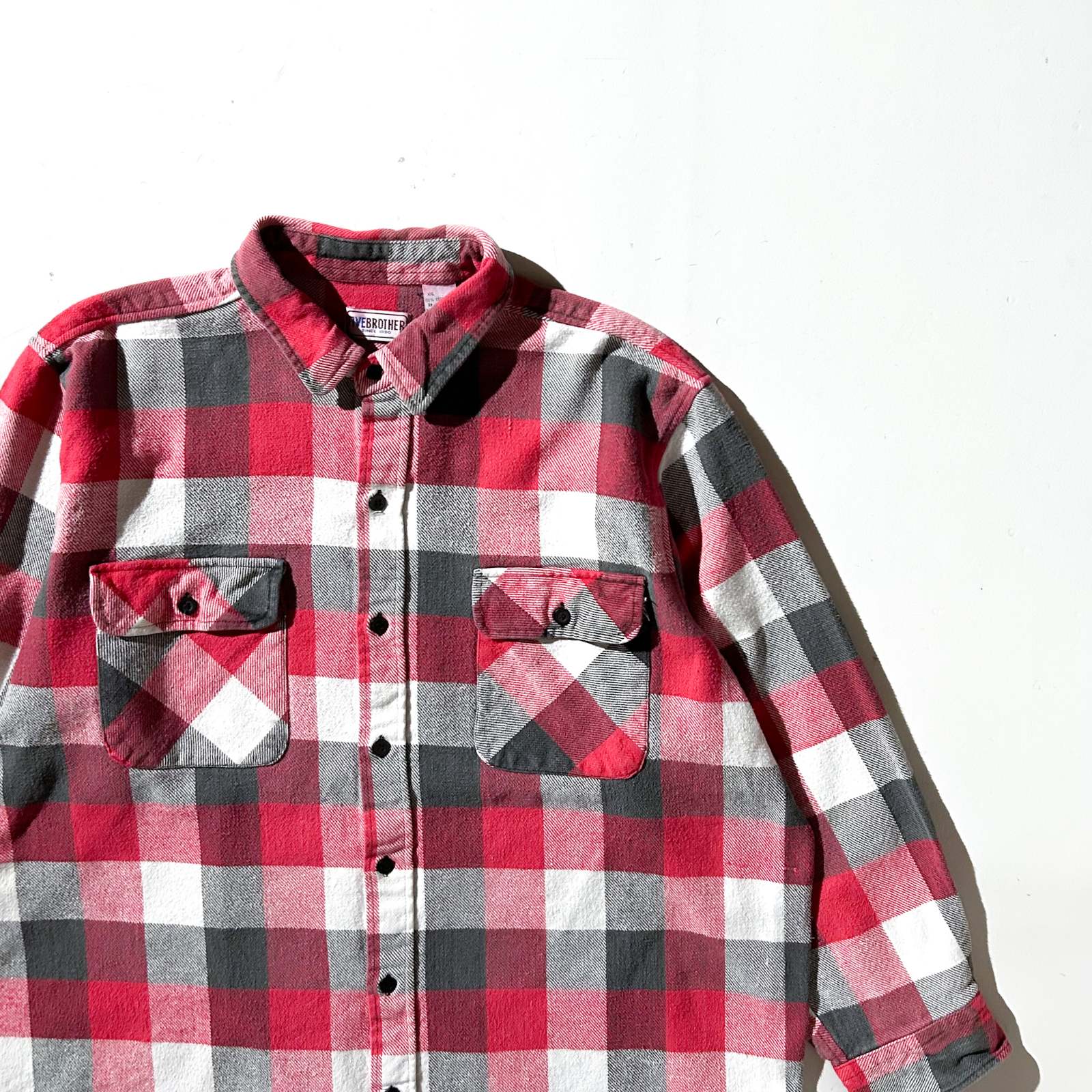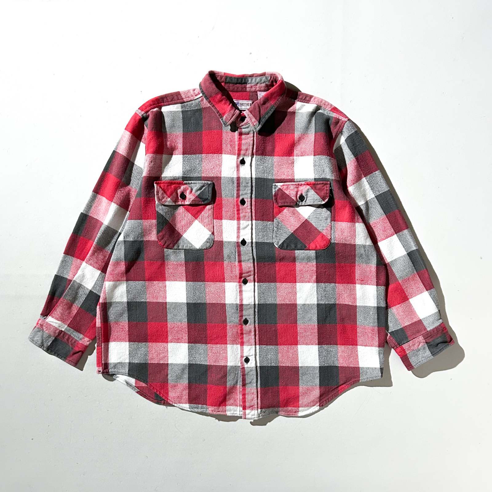 80's FIVE BROTHER ブロック チェック L/S ネルシャツ(レッド×ブラック×ホワイト)