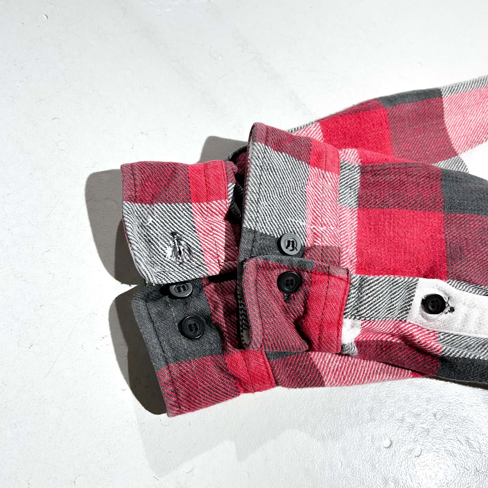 Bランク ボタンホールとカフスにほつれが見られます