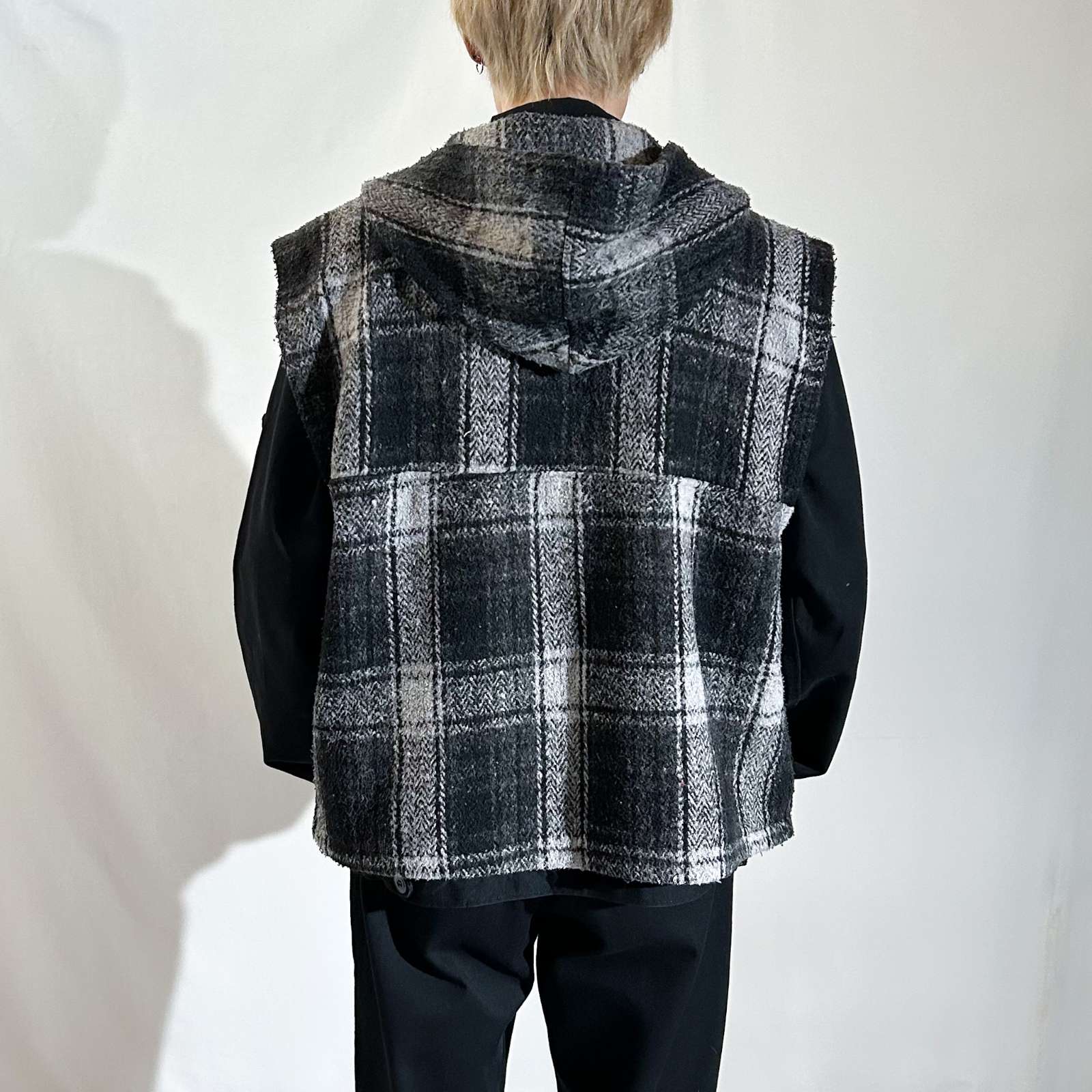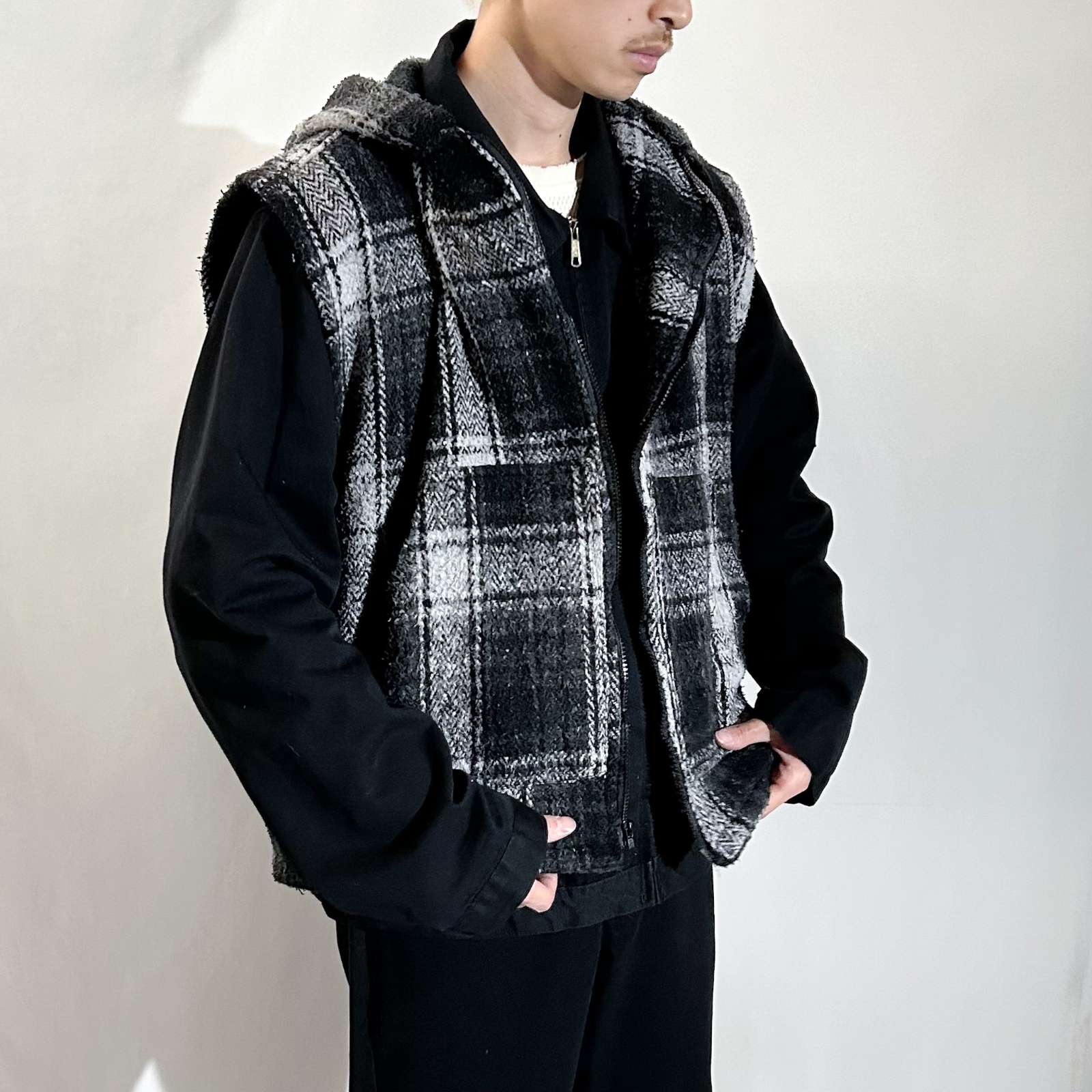 オーバーサイズ チェック メキシカン フーデッド ベスト