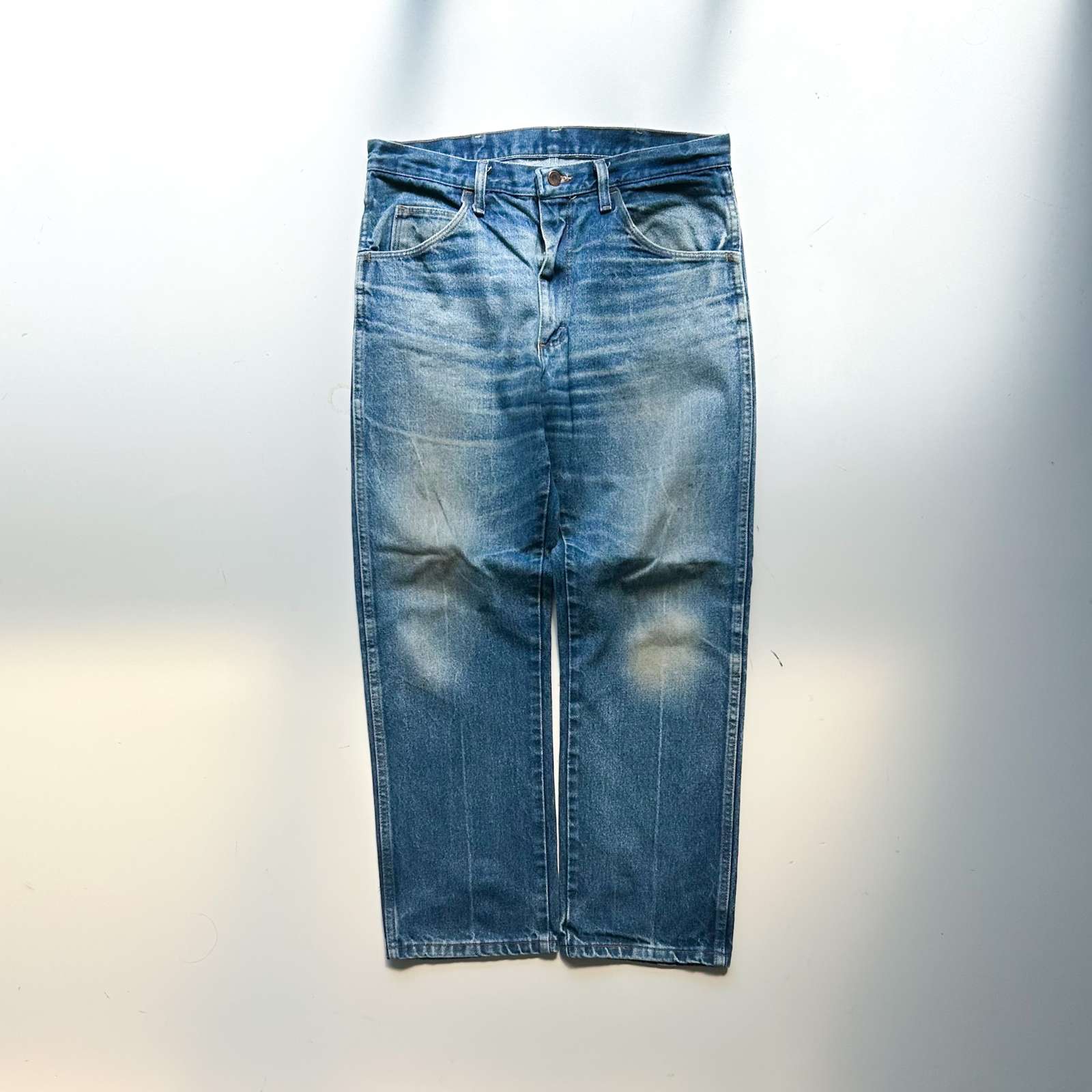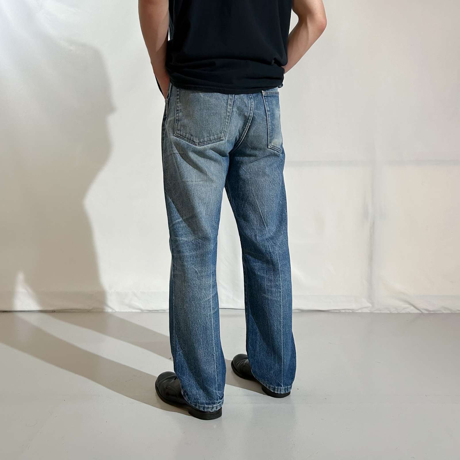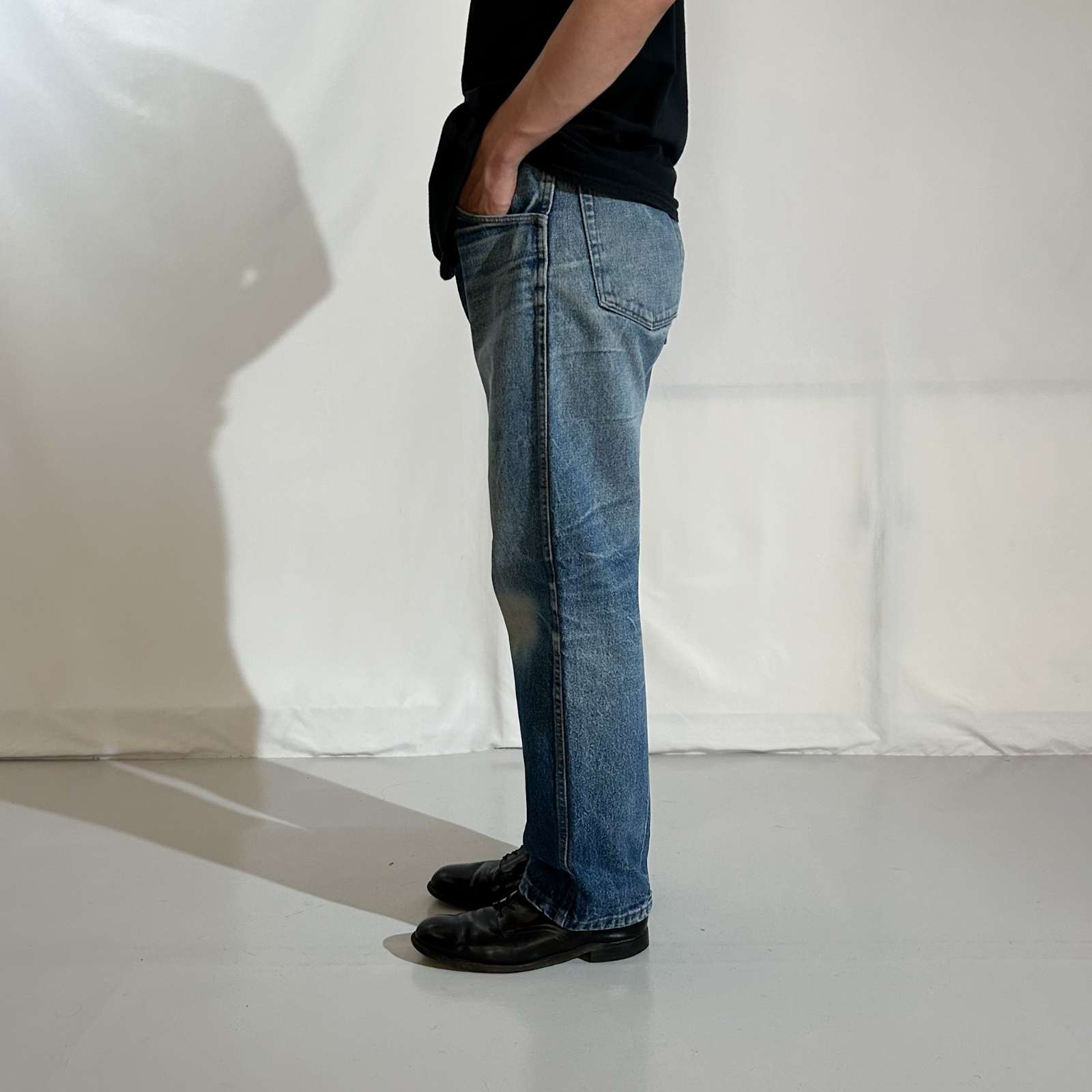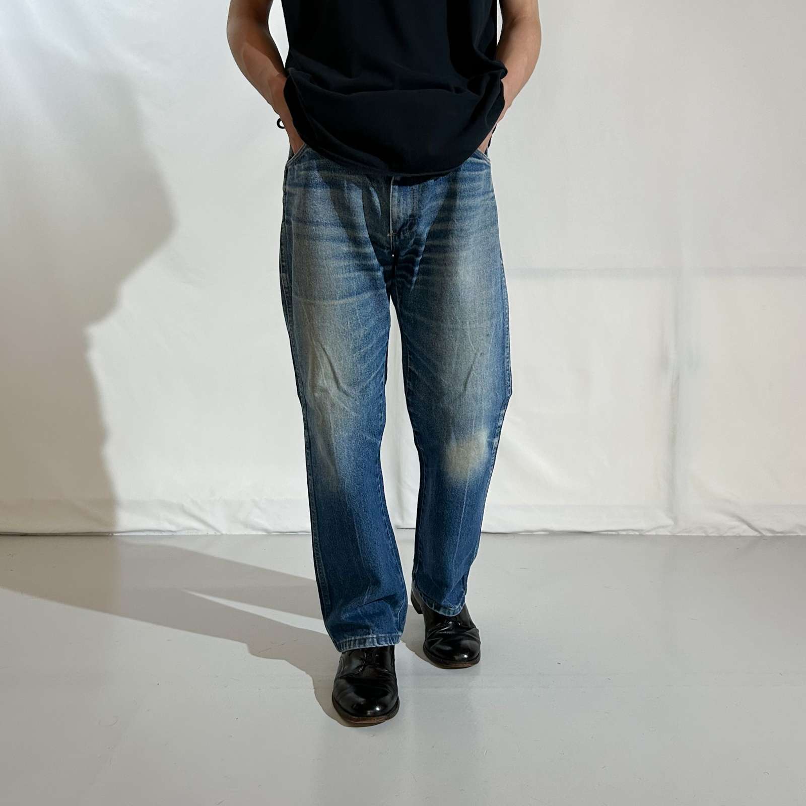 〈Wrangler〉の姉妹ブランドとして知られる〈RUSTLER〉から、2000年代らしいムードをまとった一本が入荷しました。 色落ちは、当時特有のやや均一な落ち方。派手なアタリではなく、自然な経年変化がじわっと出ている、あの時代らしい“素朴さ”が魅力です。そこにヒゲや軽めのアタリがしっかりと入り、デニムとしての表情もしっかり楽しめます。 シルエットは、Levi’s 501のようなスッと落ちるストレートライン。スウェットや無地Tでラフに着ても、シャツでまとめて少しクリーンに寄せてもハマる、使い勝手の良いデニムです。