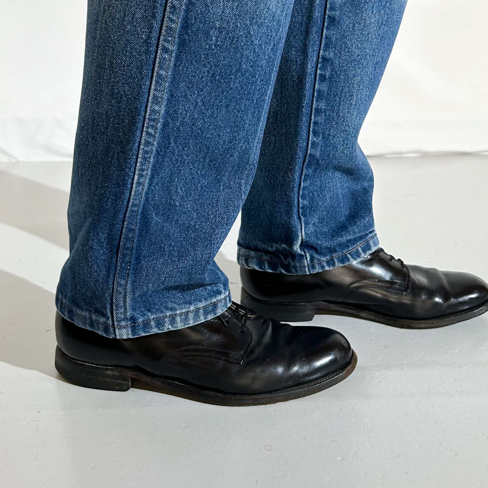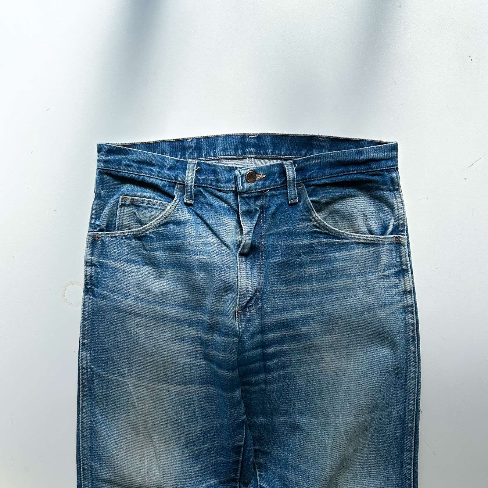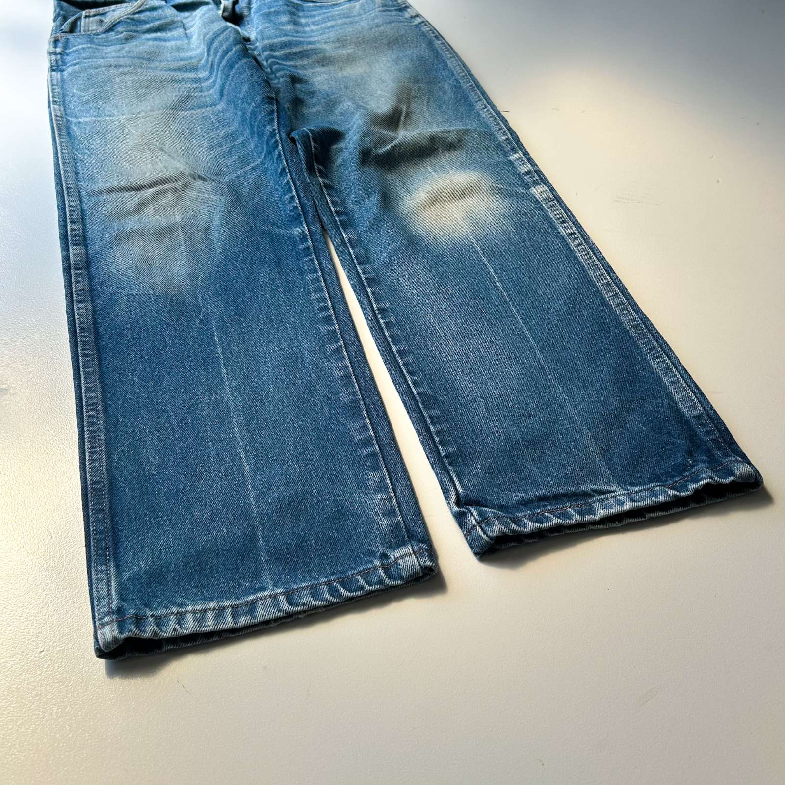 〈Wrangler〉の姉妹ブランドとして知られる〈RUSTLER〉から、2000年代らしいムードをまとった一本が入荷しました。 色落ちは、当時特有のやや均一な落ち方。派手なアタリではなく、自然な経年変化がじわっと出ている、あの時代らしい“素朴さ”が魅力です。そこにヒゲや軽めのアタリがしっかりと入り、デニムとしての表情もしっかり楽しめます。 シルエットは、Levi’s 501のようなスッと落ちるストレートライン。スウェットや無地Tでラフに着ても、シャツでまとめて少しクリーンに寄せてもハマる、使い勝手の良いデニムです。