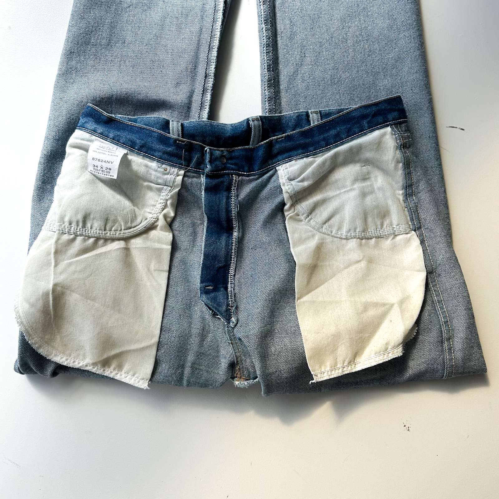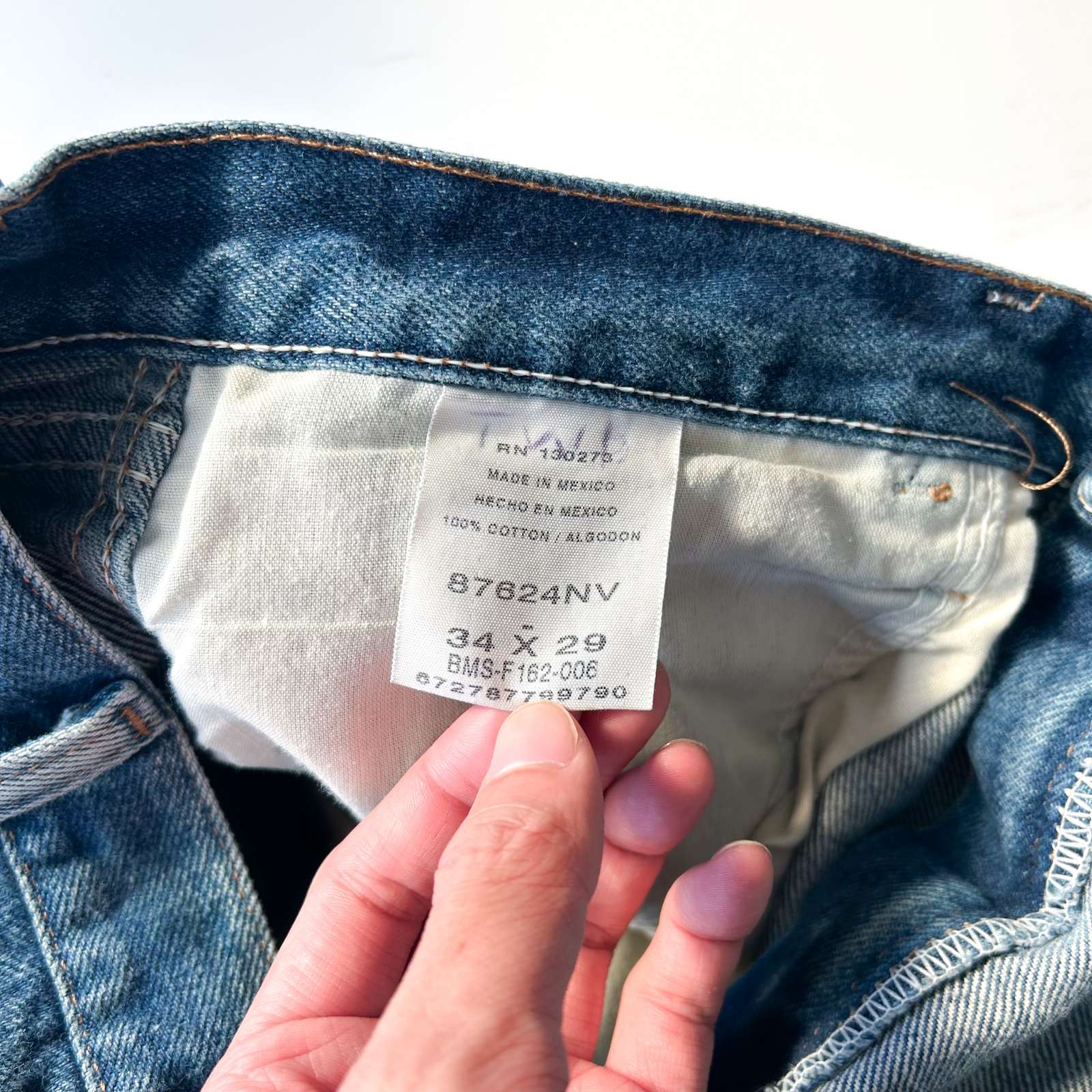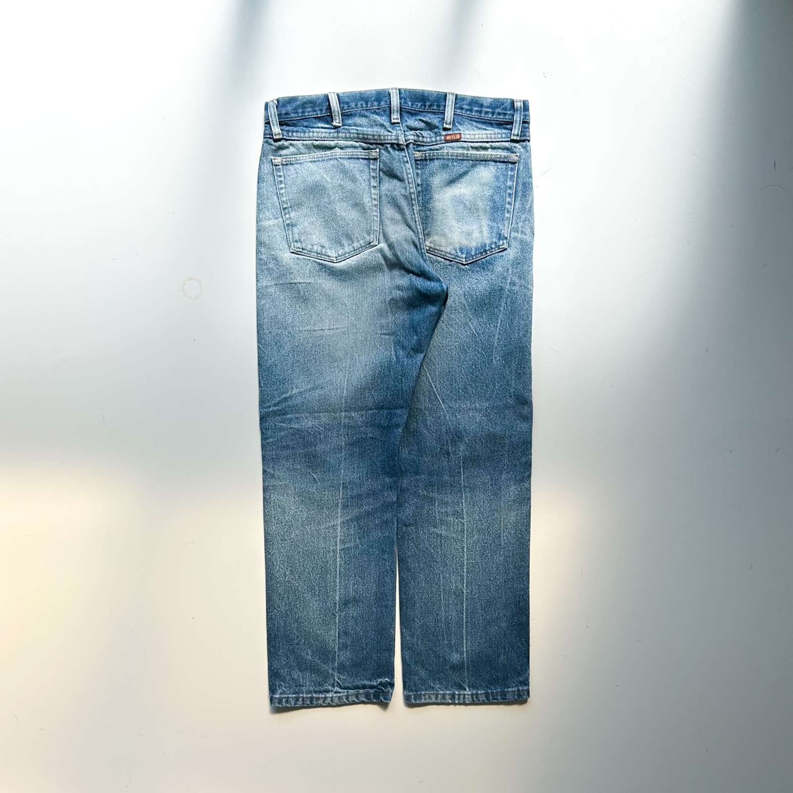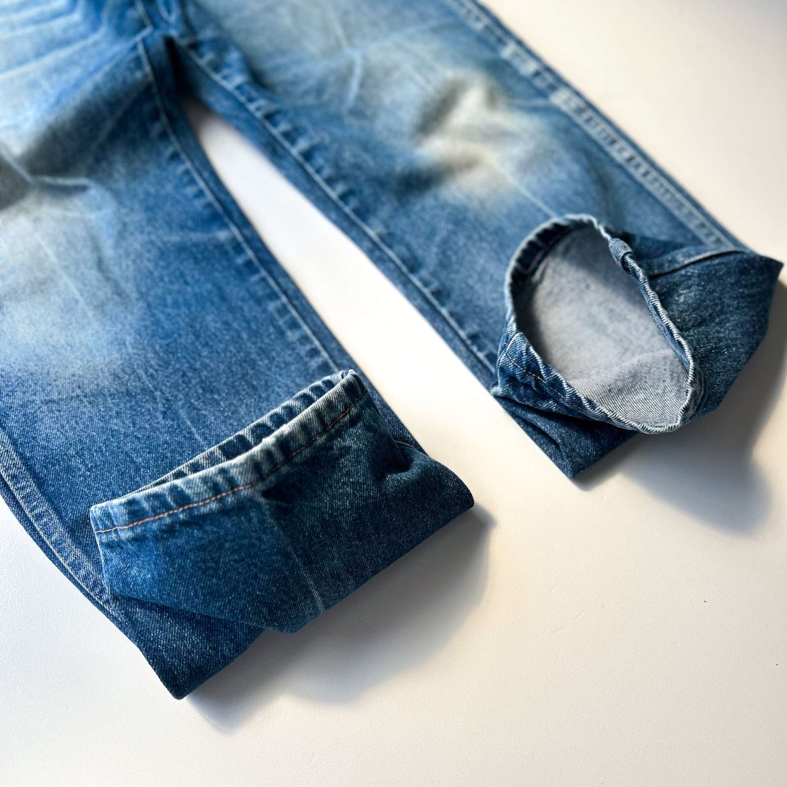〈Wrangler〉の姉妹ブランドとして知られる〈RUSTLER〉から、2000年代らしいムードをまとった一本が入荷しました。 色落ちは、当時特有のやや均一な落ち方。派手なアタリではなく、自然な経年変化がじわっと出ている、あの時代らしい“素朴さ”が魅力です。そこにヒゲや軽めのアタリがしっかりと入り、デニムとしての表情もしっかり楽しめます。 シルエットは、Levi’s 501のようなスッと落ちるストレートライン。スウェットや無地Tでラフに着ても、シャツでまとめて少しクリーンに寄せてもハマる、使い勝手の良いデニムです。