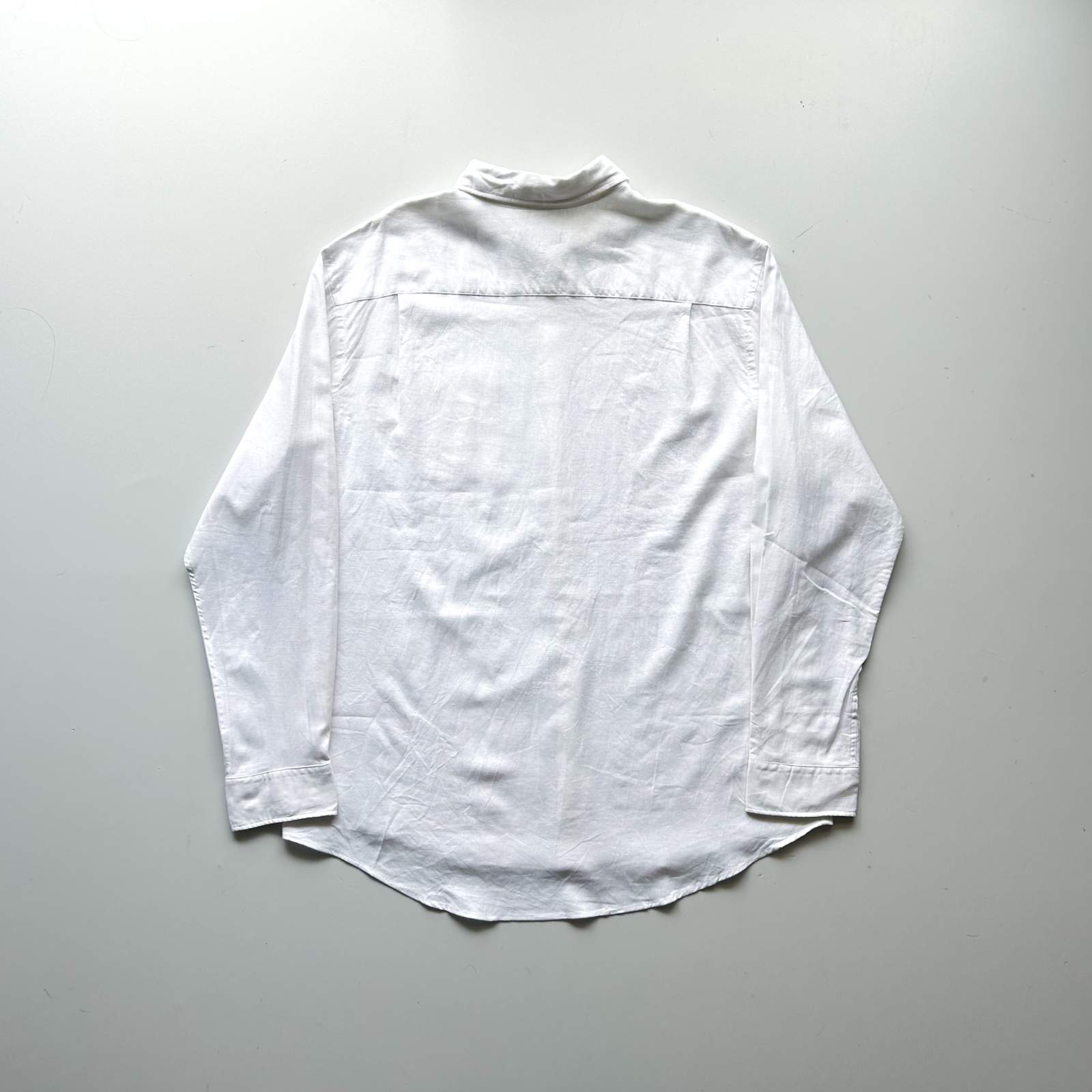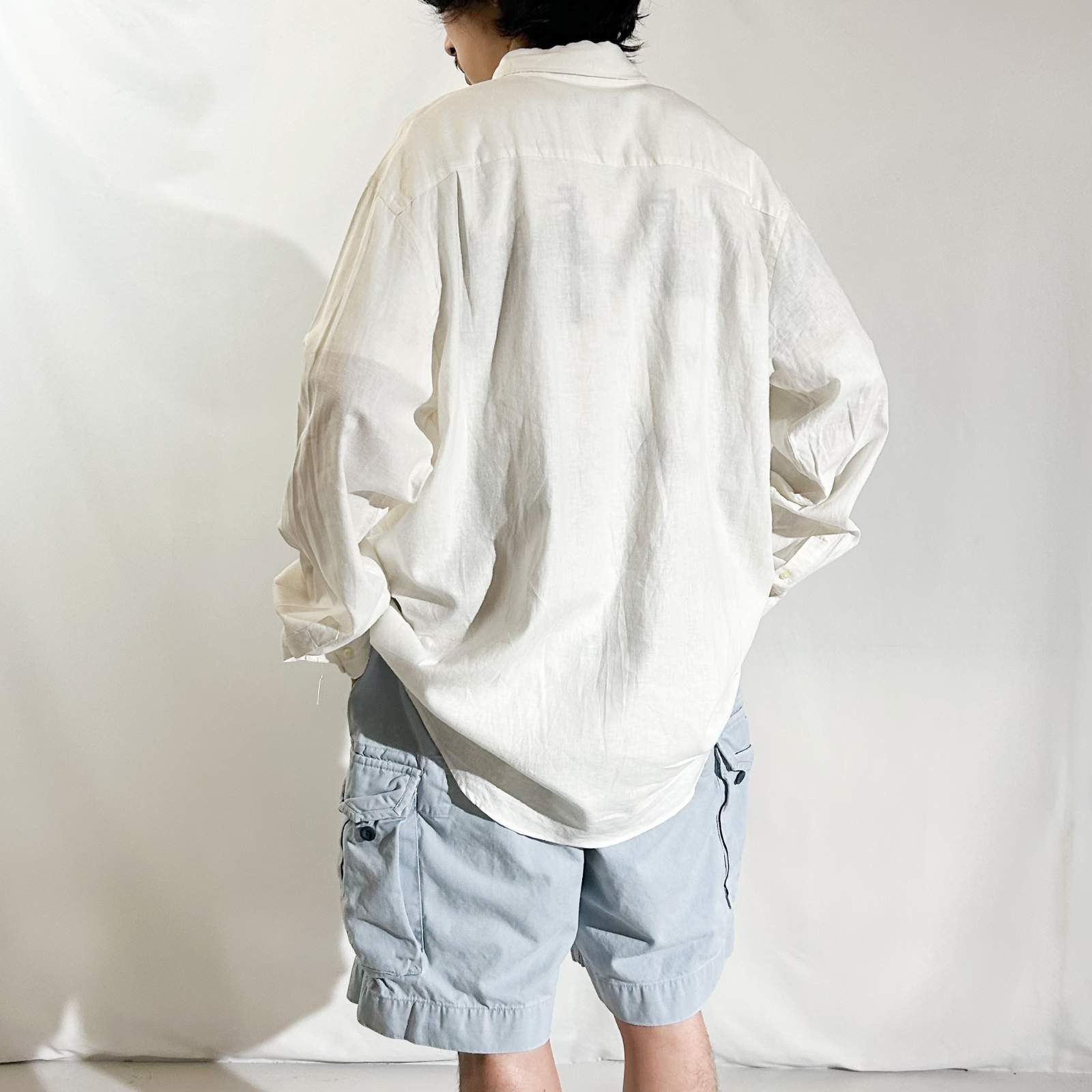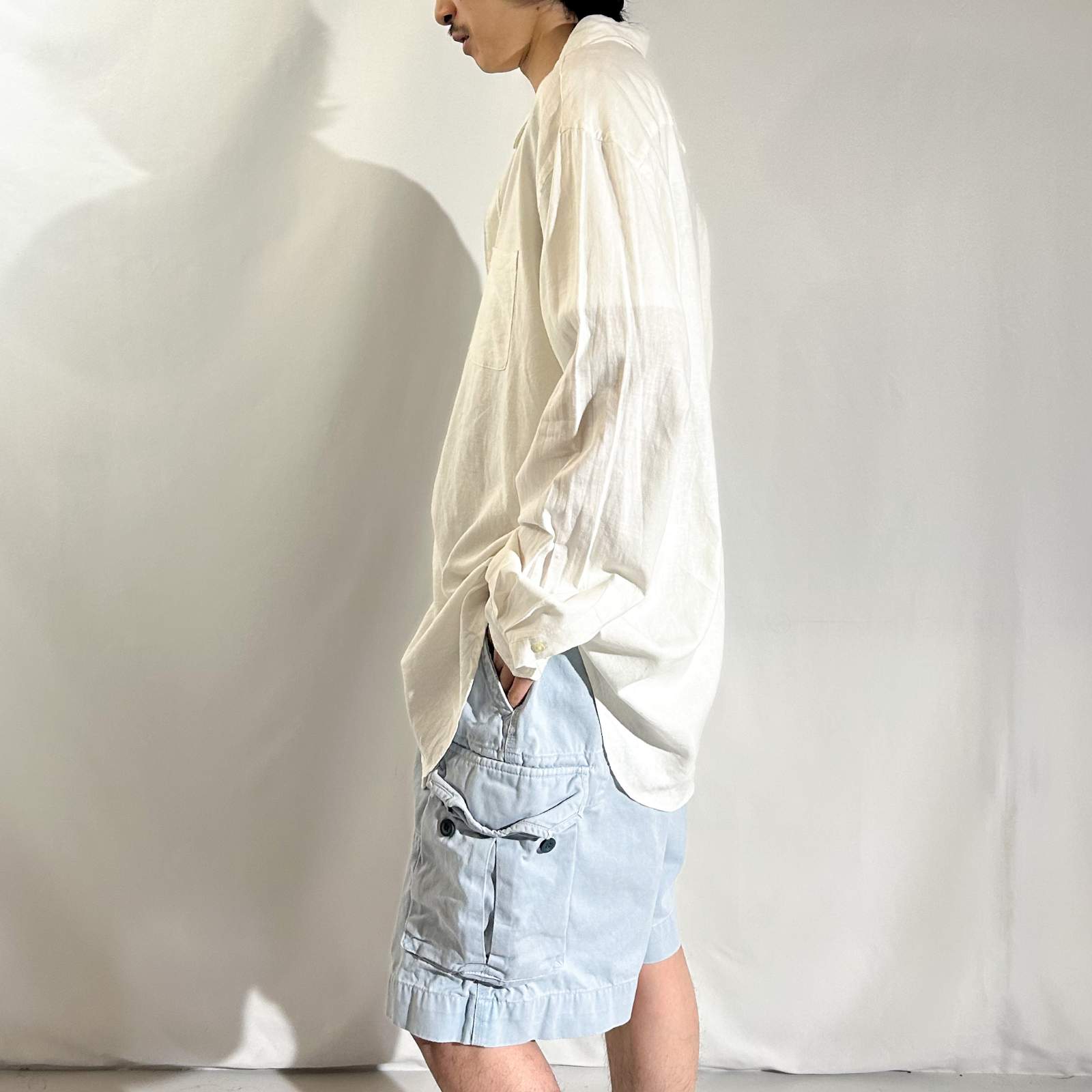 2000年代頃のアメリカ老舗紳士服ブランド〈Van Heusen(ヴァンヒューゼン)〉による一着。 リネンのナチュラルなハリ感と、レーヨンのしなやかなドレープ感が絶妙に混ざり合った、季節感のある混紡素材を使用しています。 アームや身幅にはたっぷりと余裕を持たせた、リラックス感あるカジュアルライクなシルエットながら、襟元はボタンダウンではなくレギュラーカラーを採用したことに拍手。ラフさの中にも上品さが漂う、Van Heusenらしい絶妙なバランス感が魅力です。 着丈がやや長めに感じられるかもしれませんが、裾はラウンドシルエットで、動いたときに自然な流れが出る仕様。正直、鏡の前で10分ほど動いていれば馴染んできますし、むしろその“ゆるさ”こそが今の気分にちょうどいい仕上がりです。