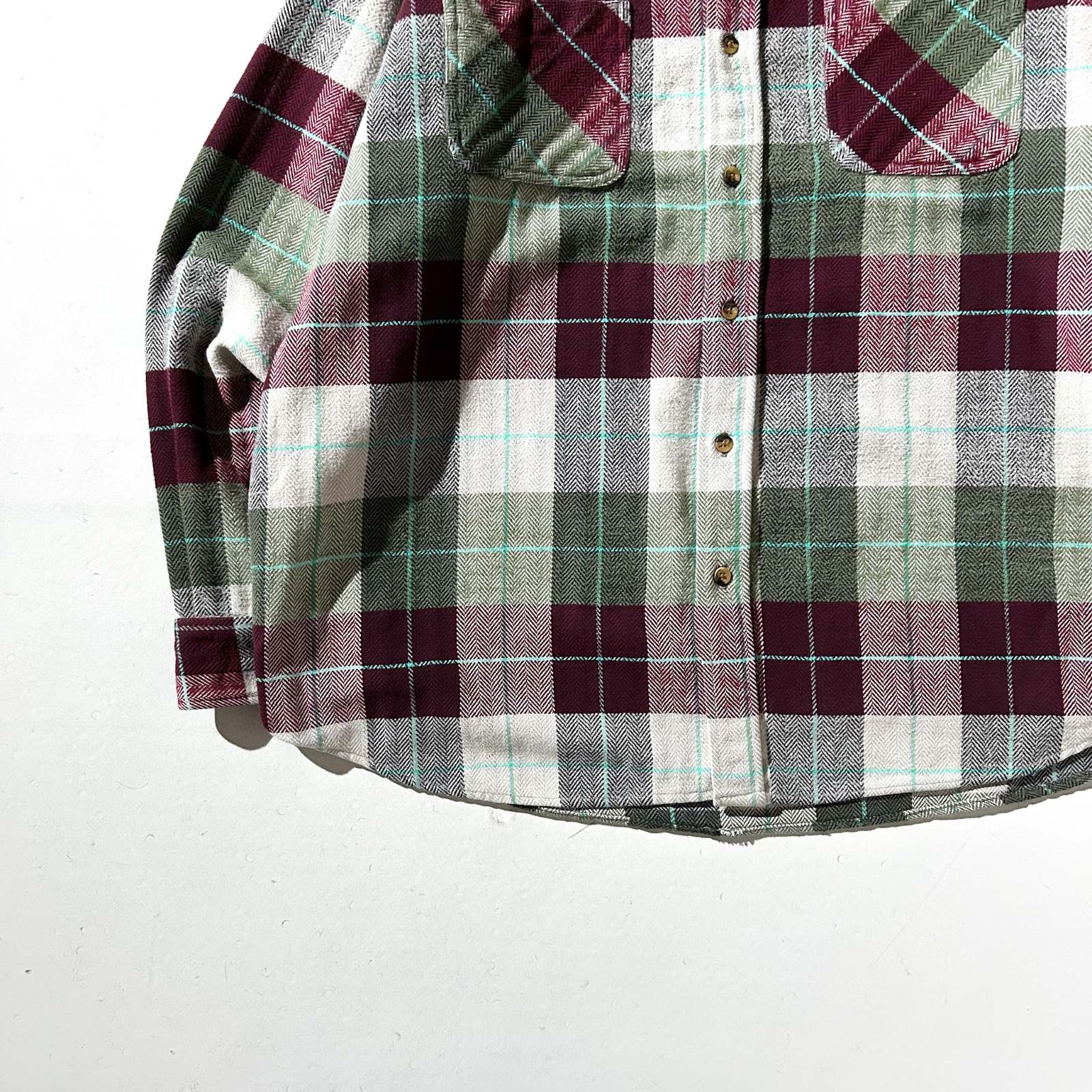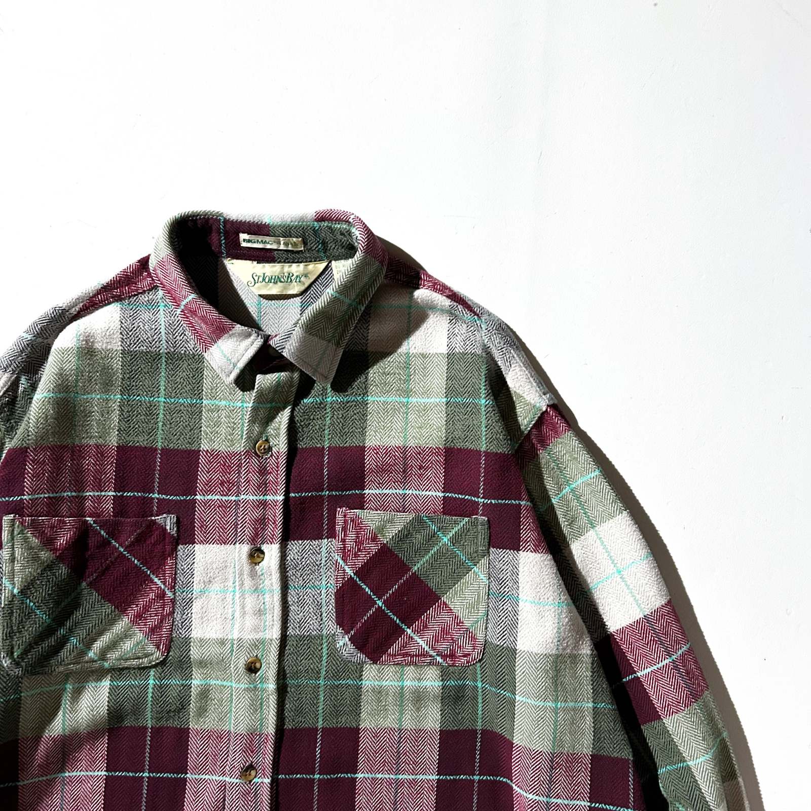 80’s "made in PORTUGAL" ST JOHN’S BAY×BIG MAC チェック L/S ネルシャツ(ワインレッド×グリーン)