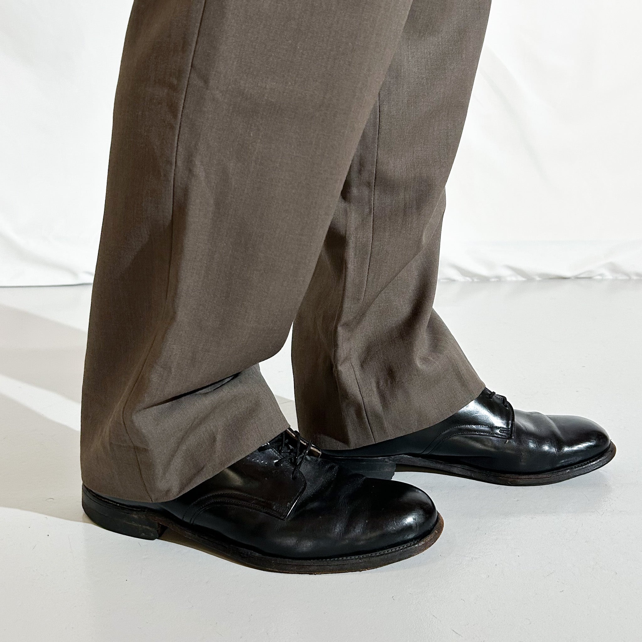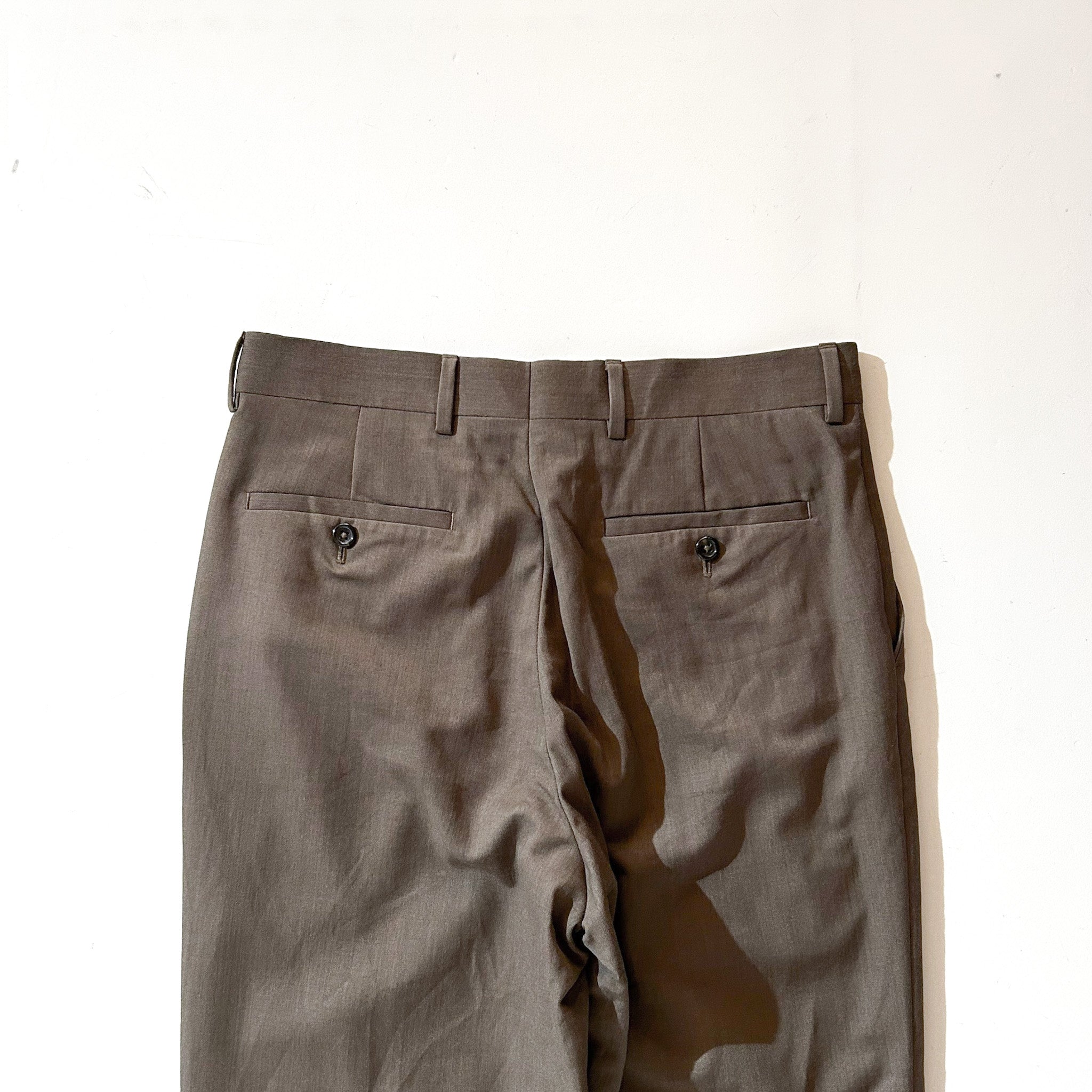【Webスタッフ大鹿のおすすめ商品】 アメリカのカジュアルブランド PRONTO UOMO(プロントウオモ)から、ノータック仕様のウールスラックスが入荷。 生地はウールながらも重さやチクチク感はなく、サマーウールのような軽やかさとサラッとした肌触りが魅力で、春〜秋はもちろん、インナー次第で通年活躍できる優秀素材。 色味はチャコールブラウンのような深みのある落ち着いたトーンで、大人っぽい雰囲気。スラックス特有のかっちり感を保ちつつ、カジュアルにもきれいめにも振れる万能カラーです。 渡りも太すぎず、すっきりと落ちるストレートシルエットは、Levi’s 505のような王道ライン。シャツやポロシャツに革靴を合わせてクリーンに、Tシャツやスウェットにスニーカーでカジュアルダウンしても◎。 履き回しの効く、頼れる一本です。
