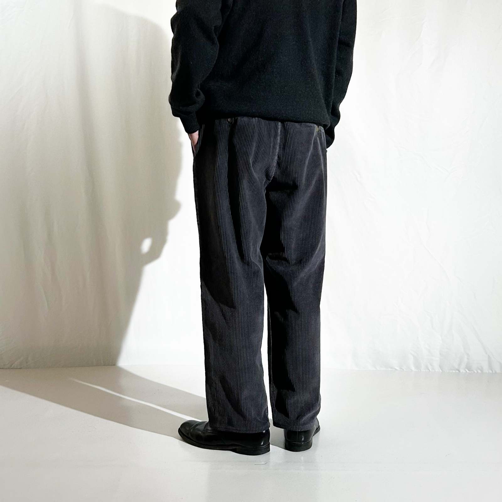 【Webスタッフ大鹿のおすすめ商品】ドッカーズのコーディロイパンツ。 シルエットはLEVI’S550.560のような渡り幅がゆったりとしたワイドな作りで徐々にテーパードしていくシルエット。173cmのモデルで裾はノークッションで履けるスッキリとした印象。ボーダーや柄のソックスを見せるような着こなしが出来ますよ〜