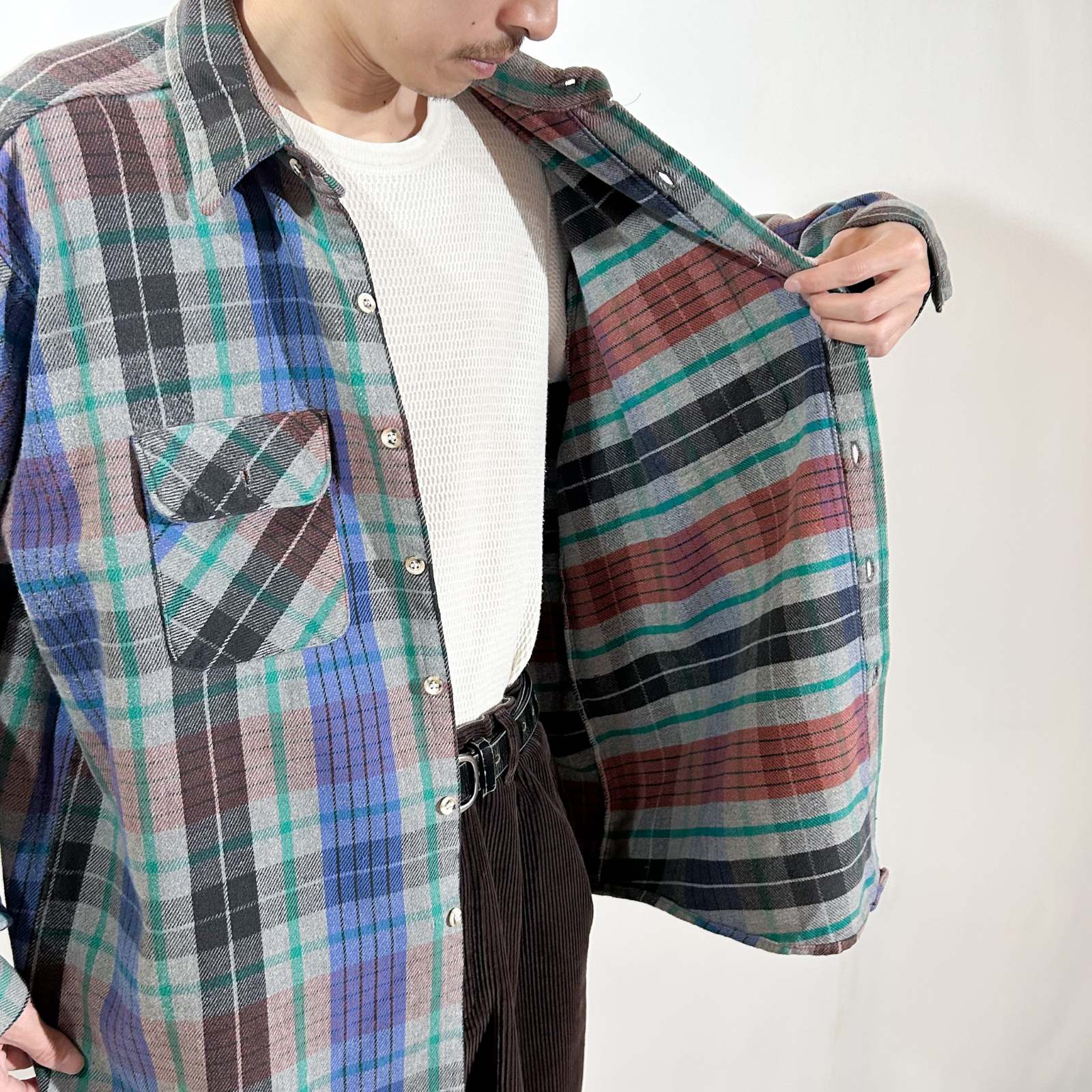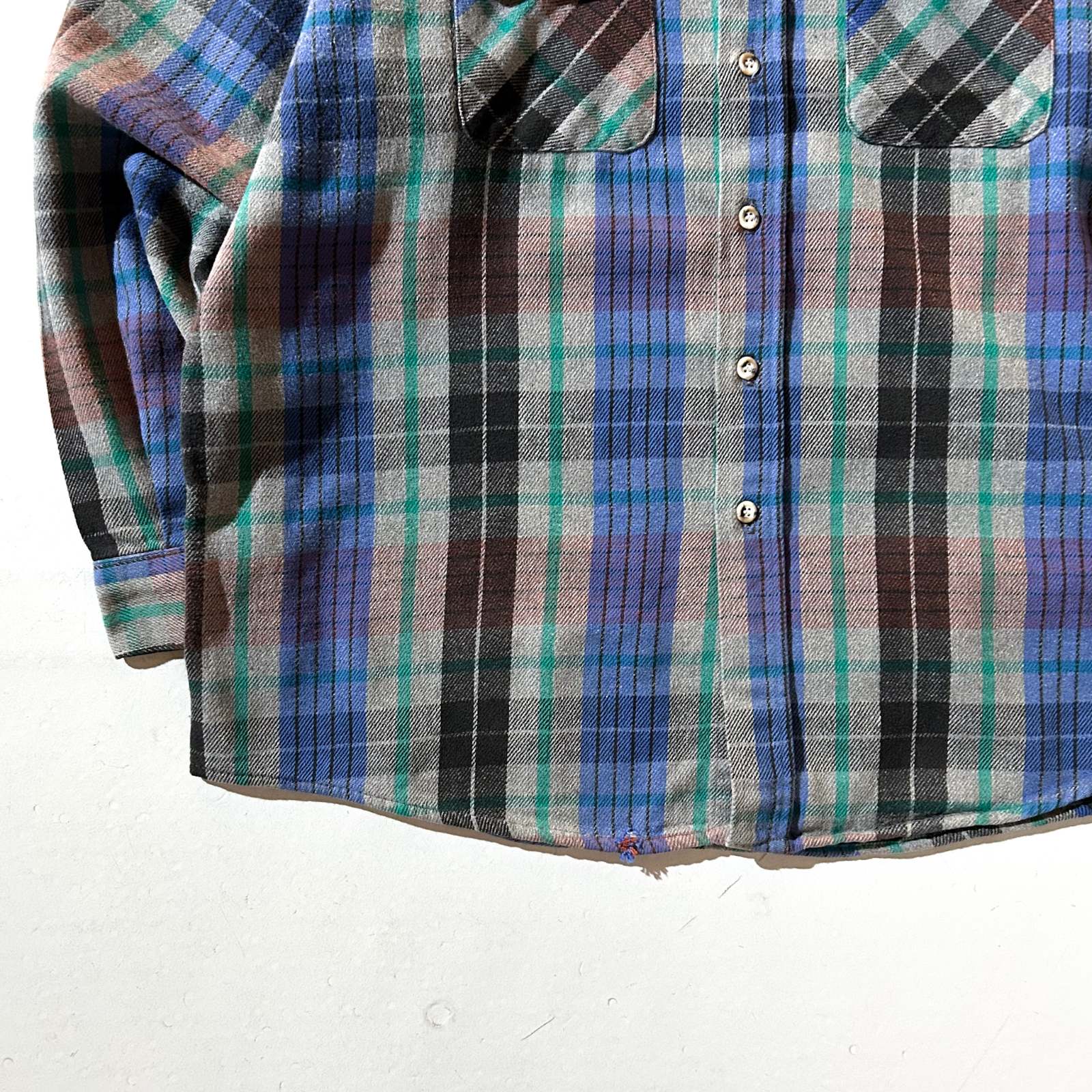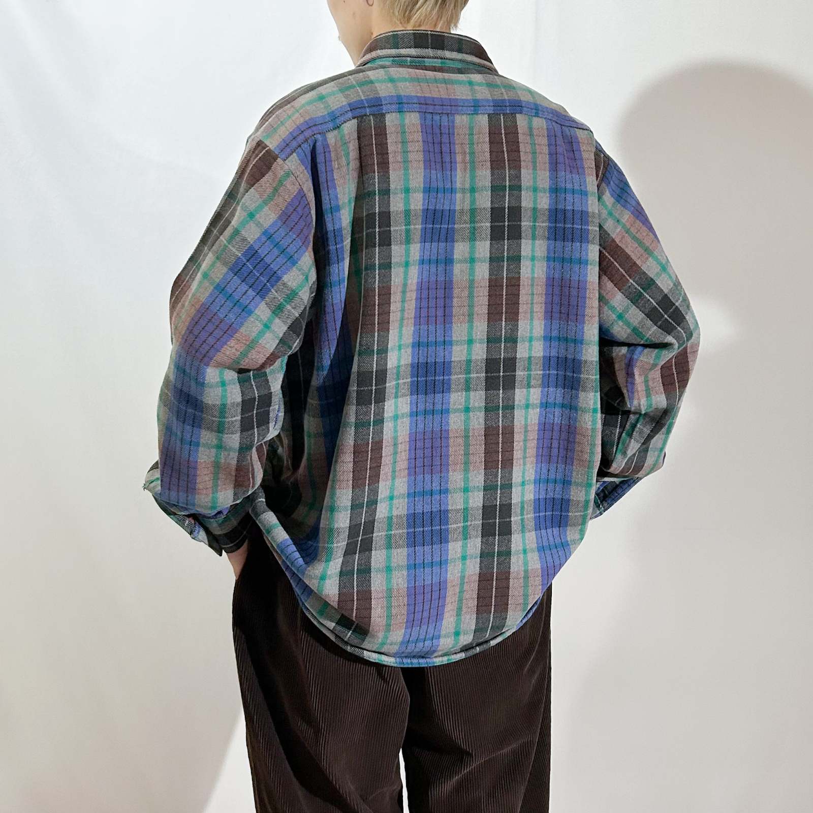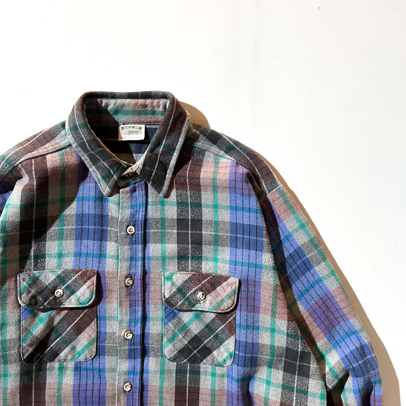 90's FIVE BROTHER チェック L/S ネルシャツ(ブルー×グレー)