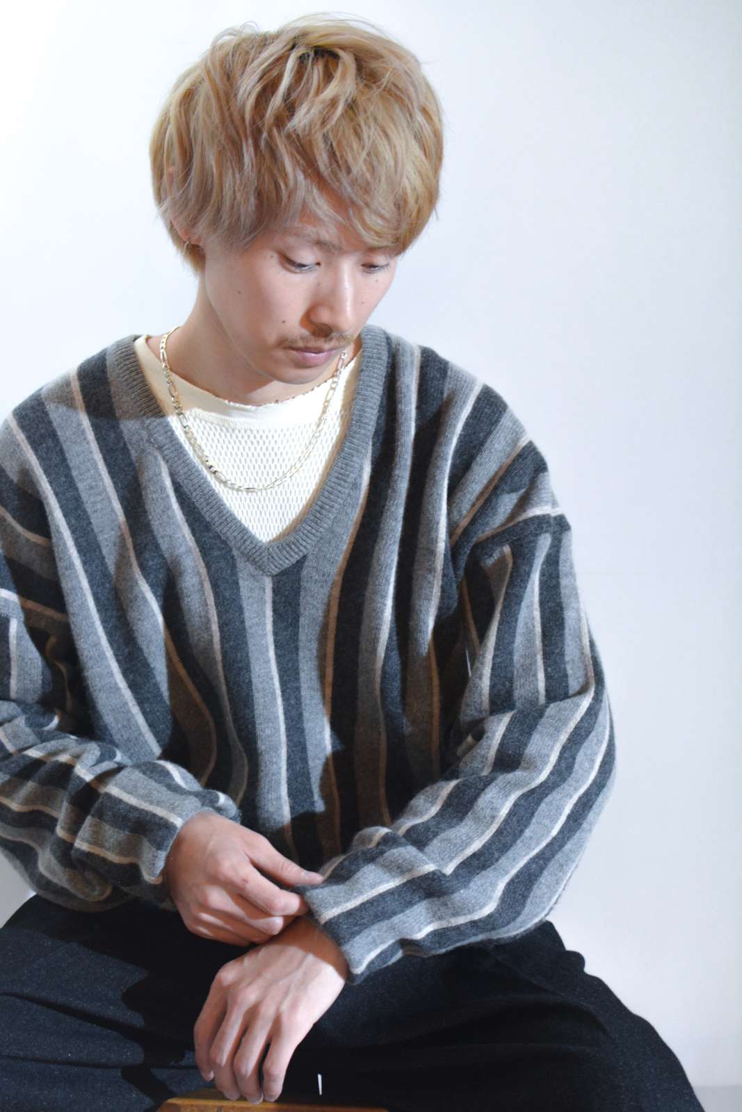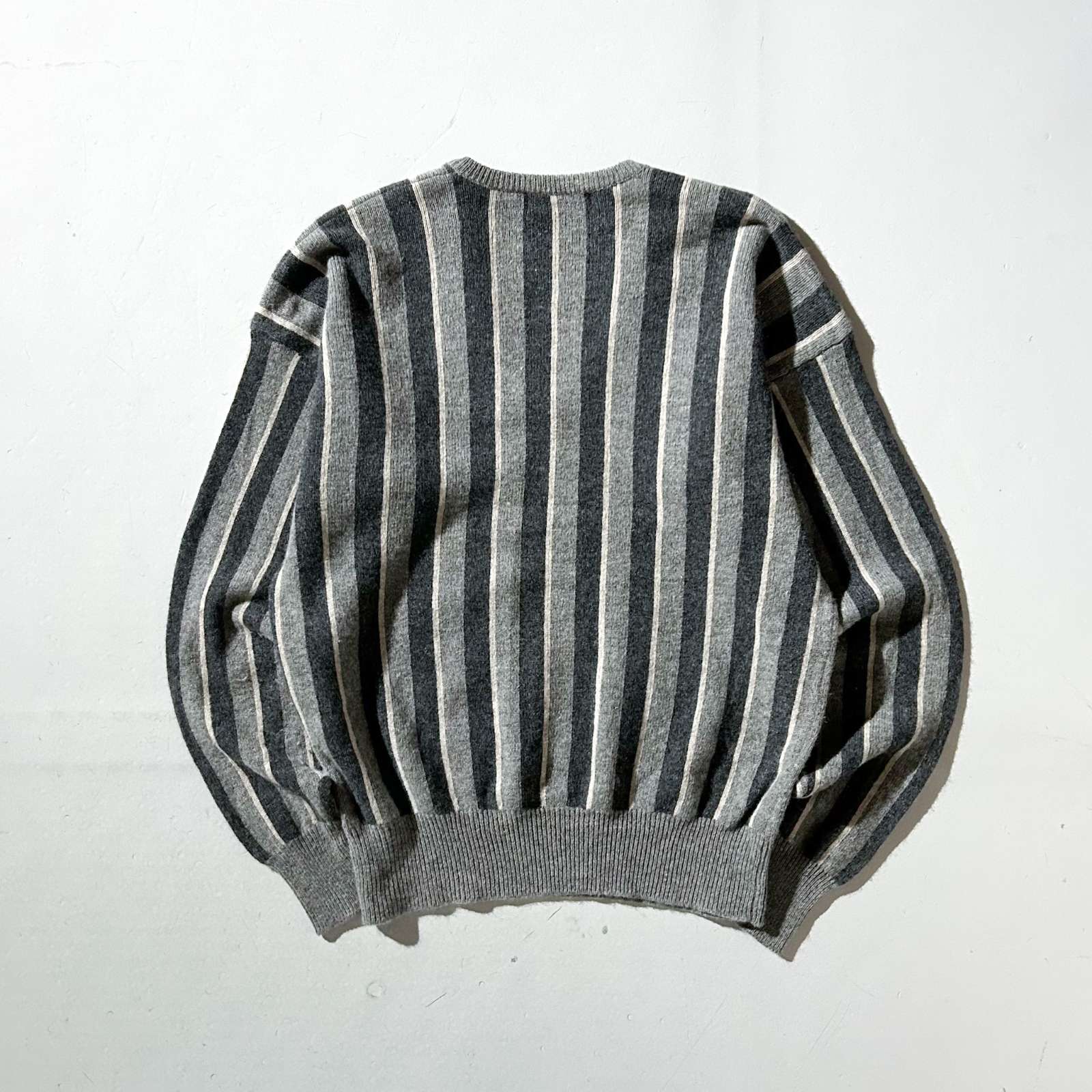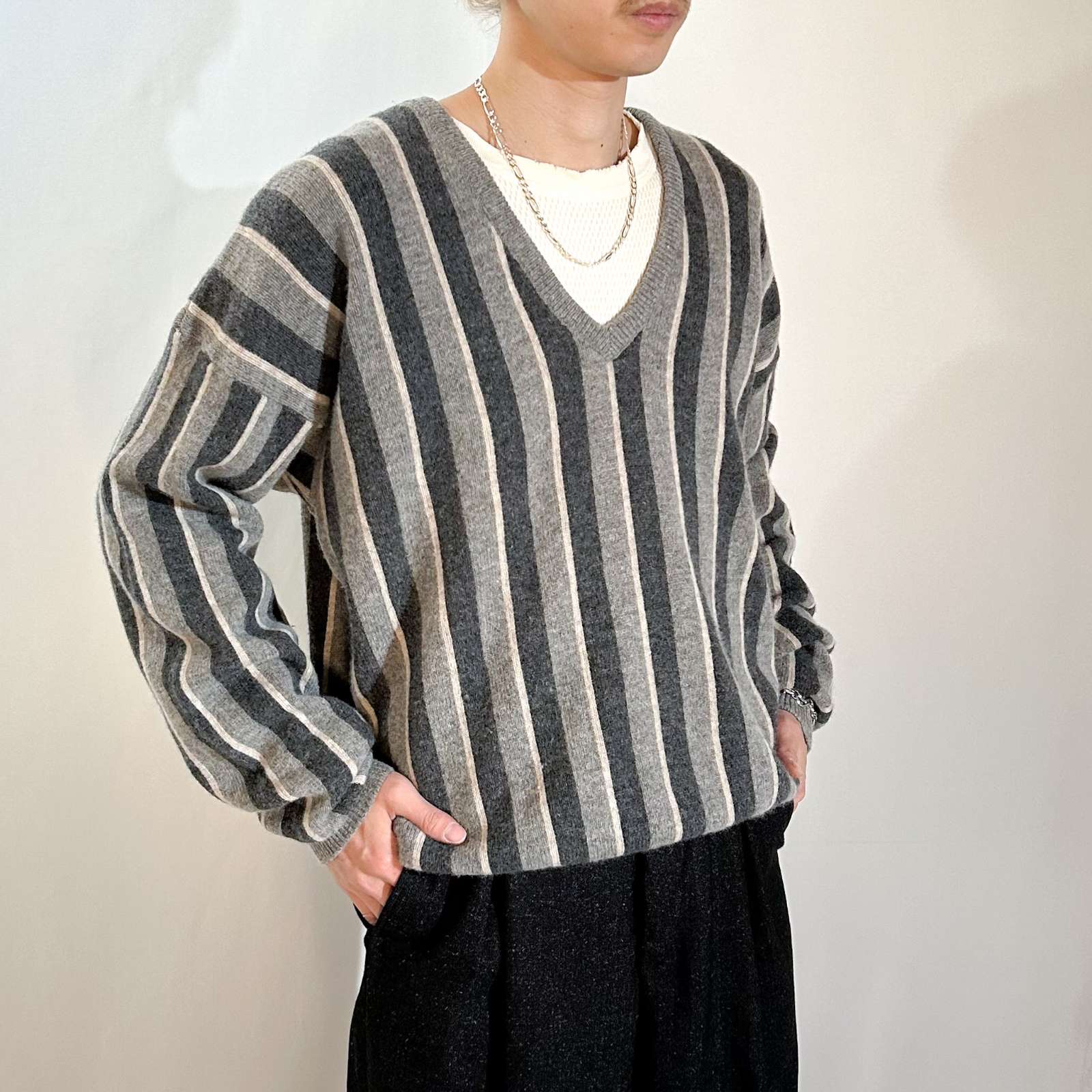 グレーと黒と白の3トーンストライプニットセーター。モノクロの中でもかなりいいストライプかと思います。まだ柔らかさの残るラムウールでフワッとした着心地がとてもいいです。
