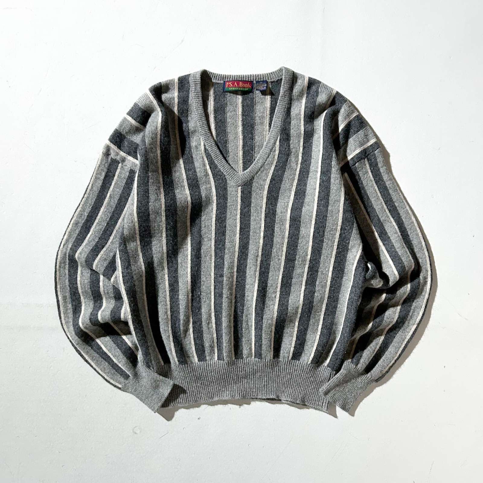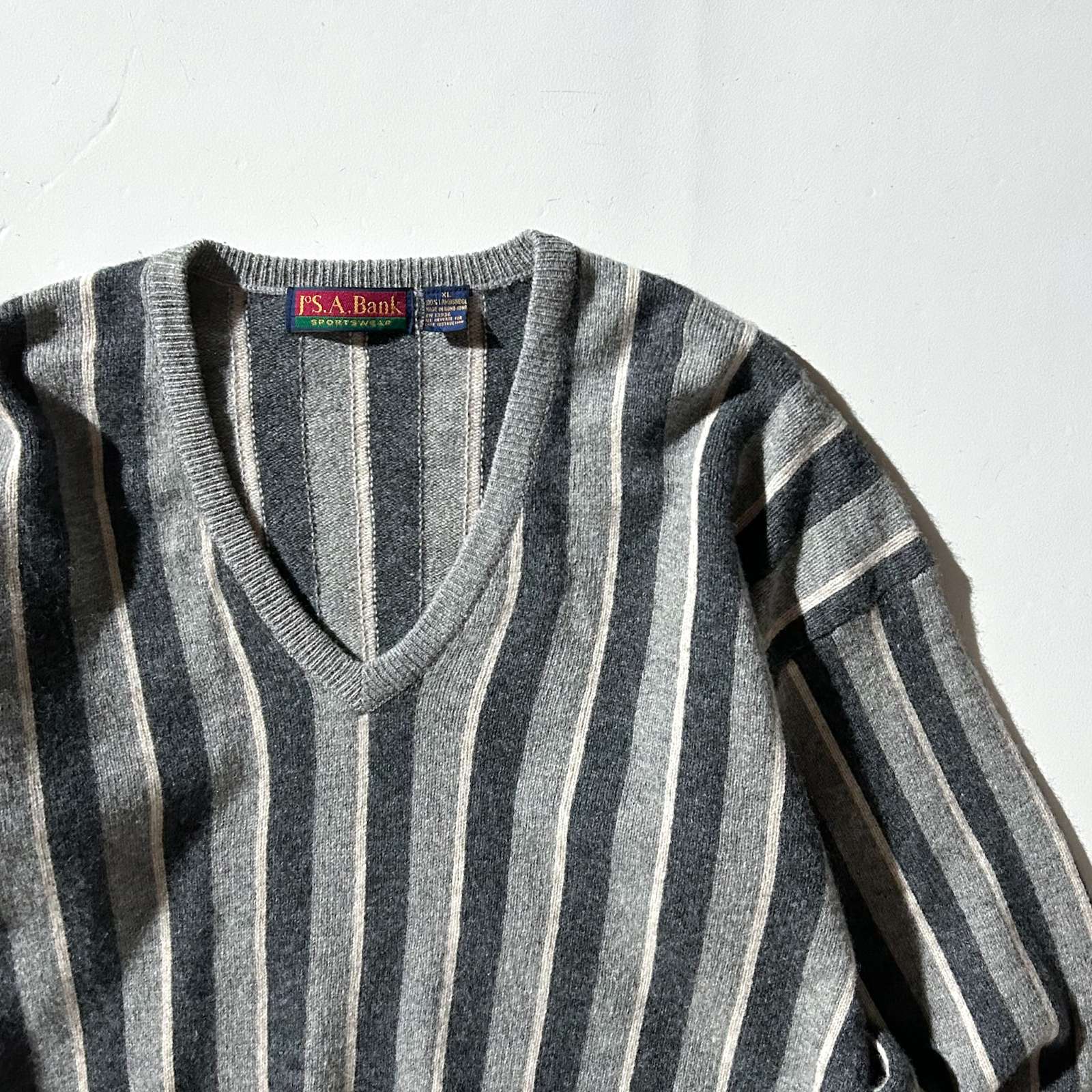 90's JOS.A.BANK ラムウール マルチストライプ Vネック ニット セーター