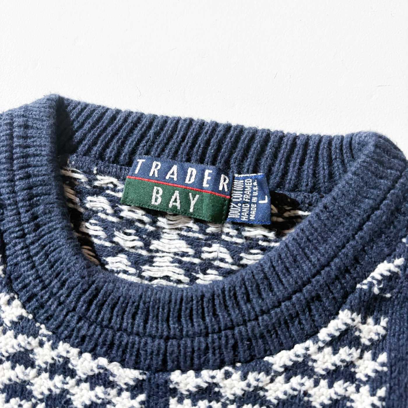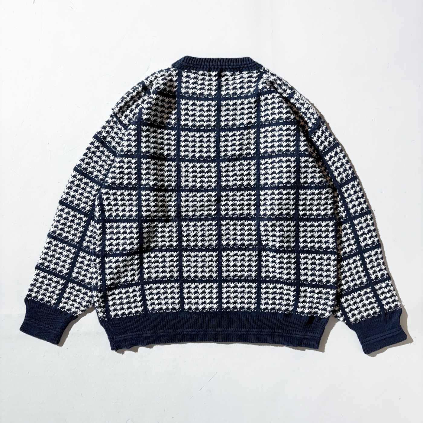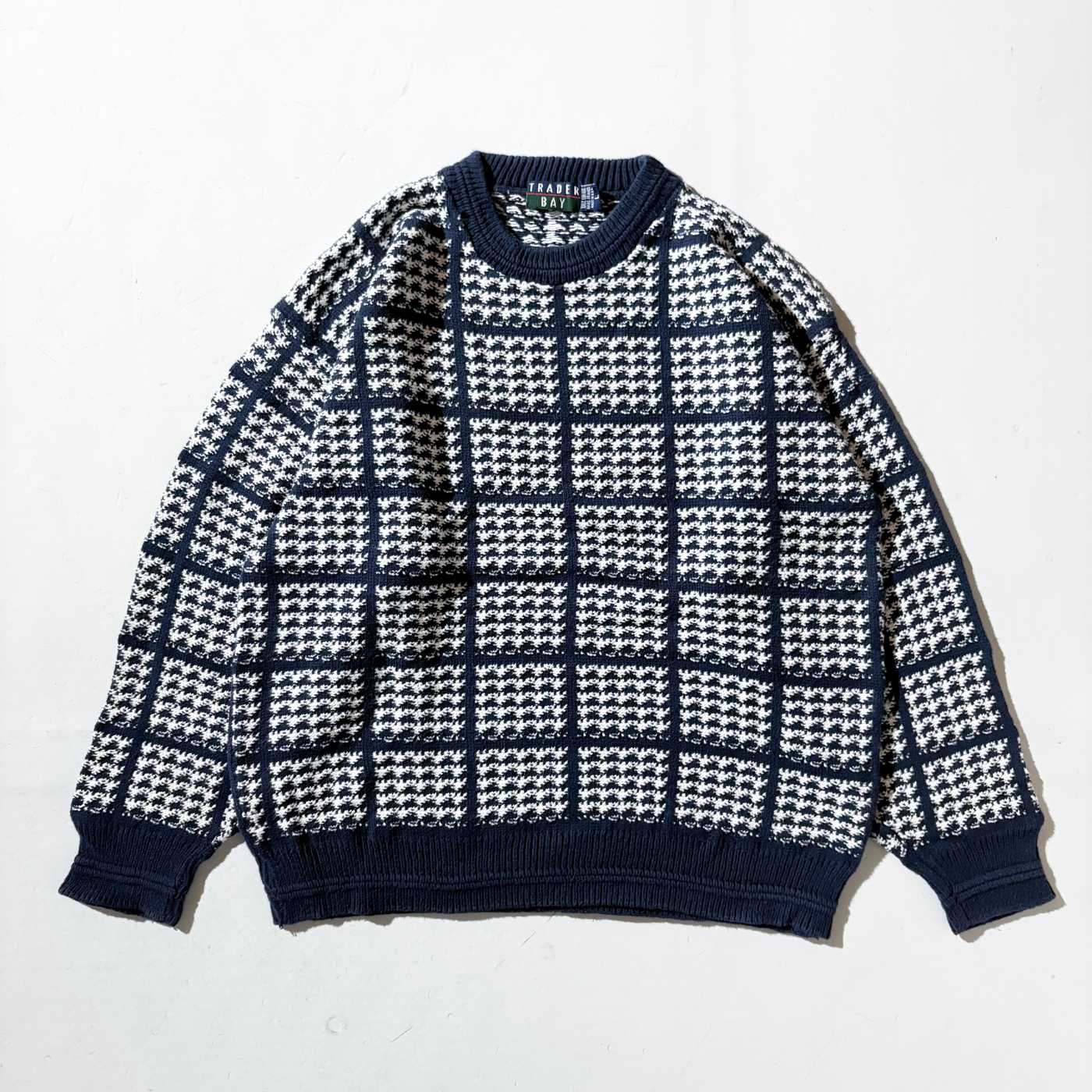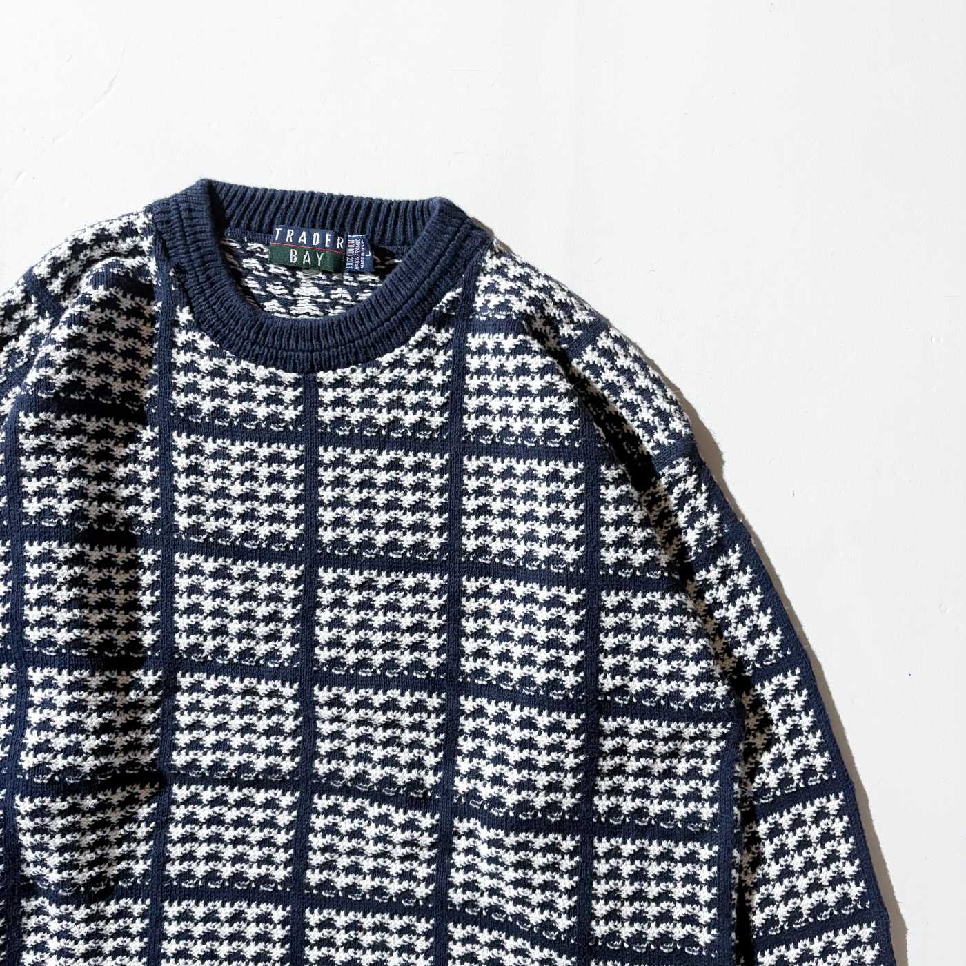 90's "MADE IN USA" TRADER BAY ハウンドトゥース コットン ニット セーター